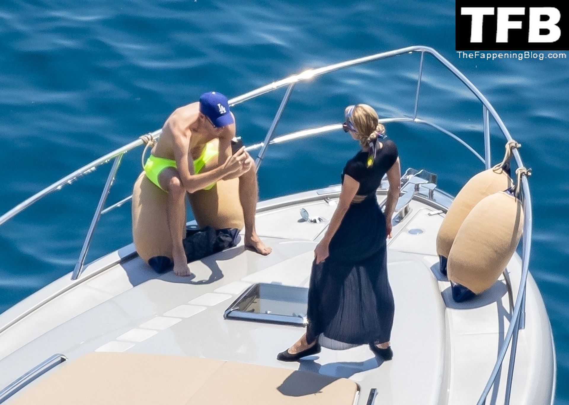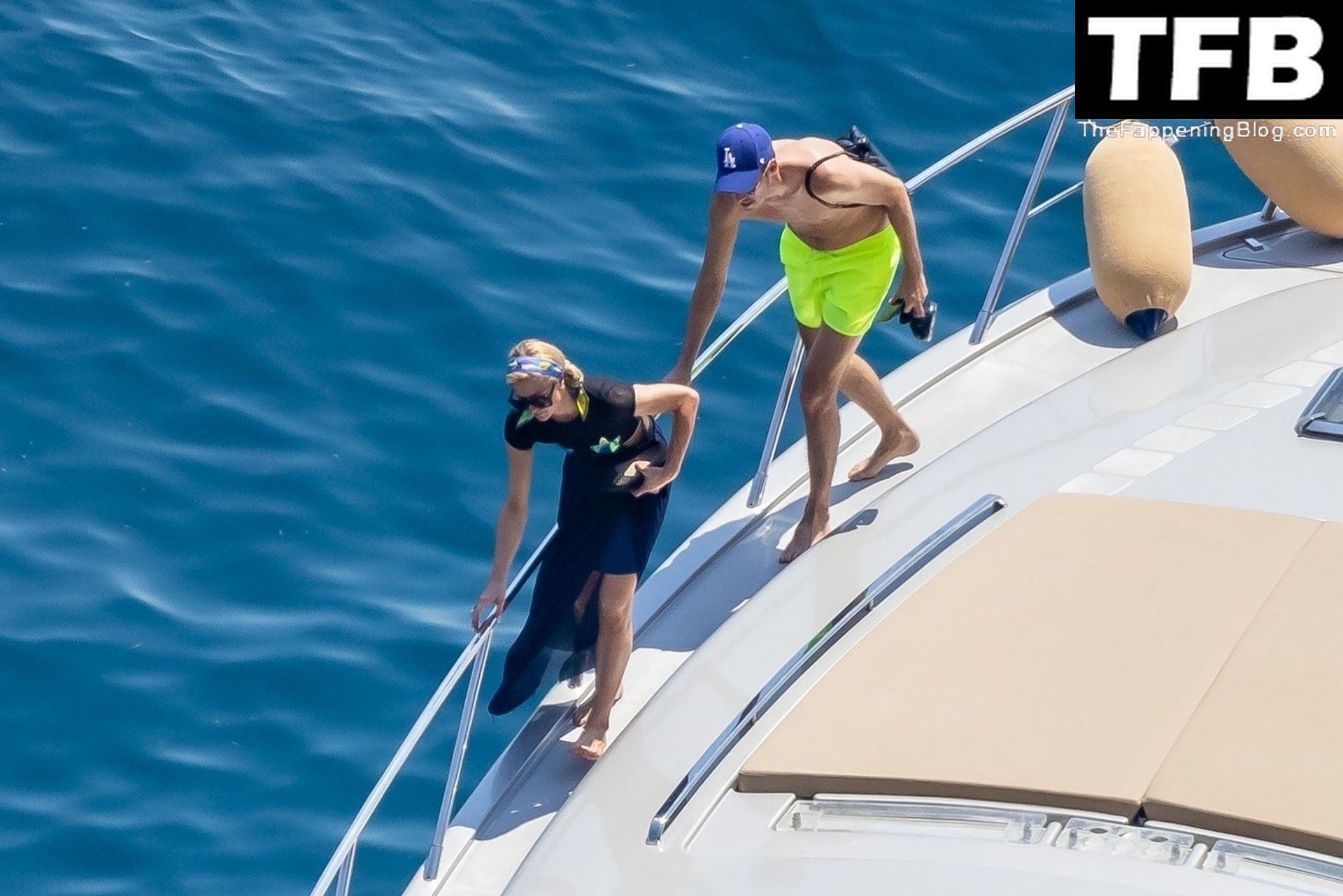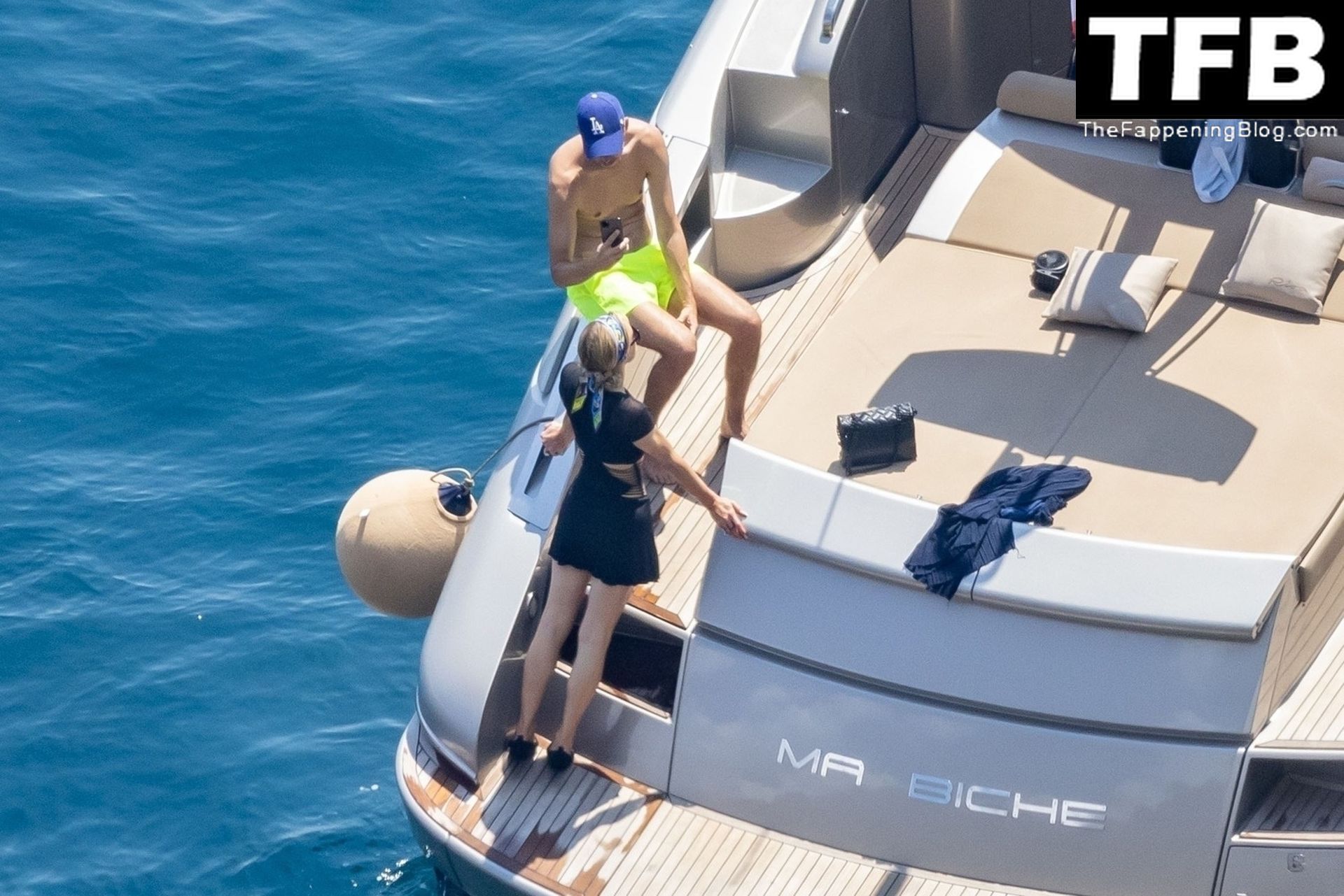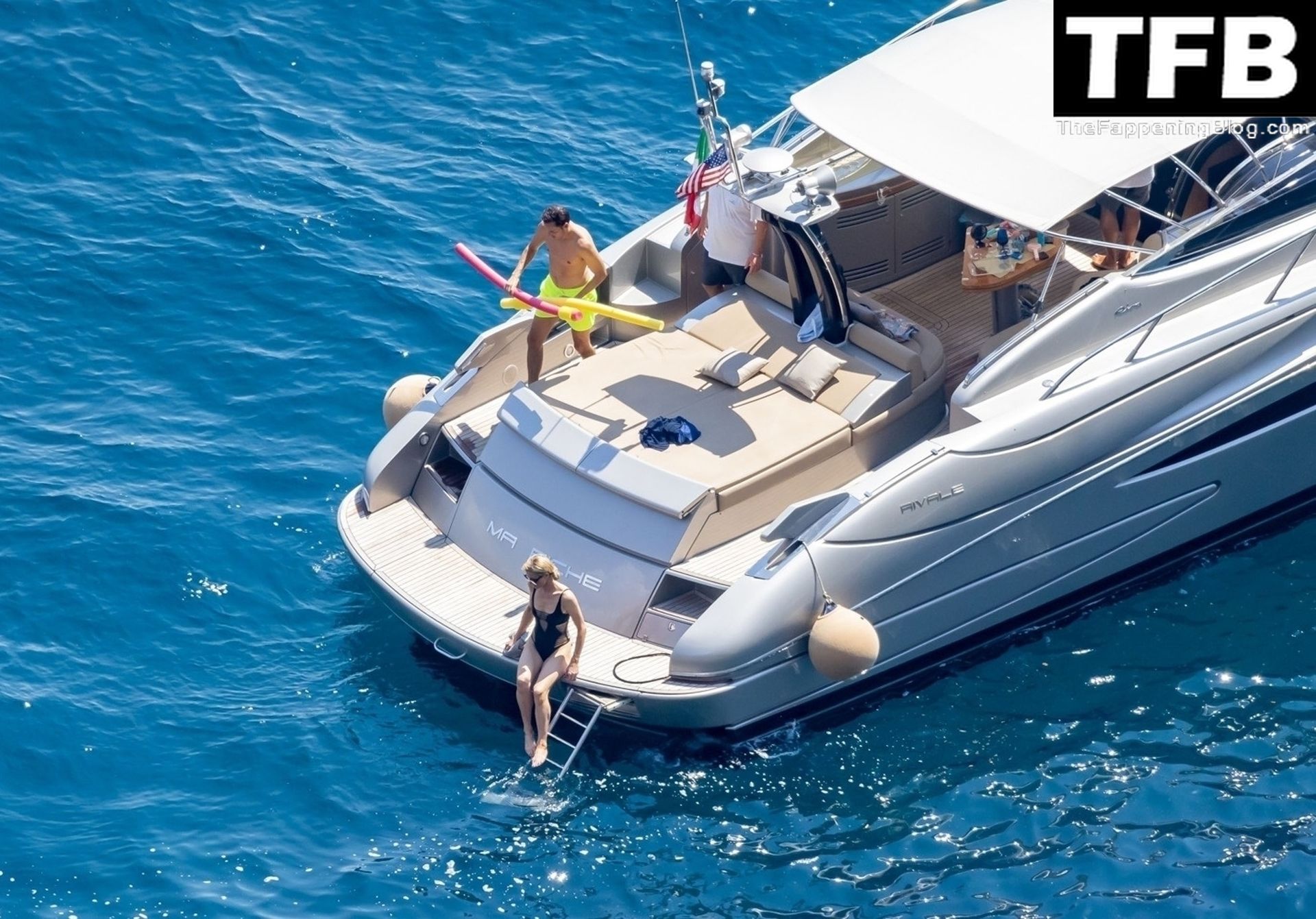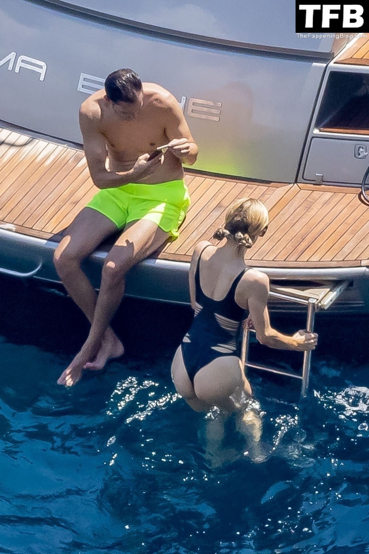 La coppia ha goduto del caldo italiano sulla loro barca mentre Carter, con i suoi pantaloncini verde lime, cercava di impressionare Paris con un salto da temerario dalla barca.