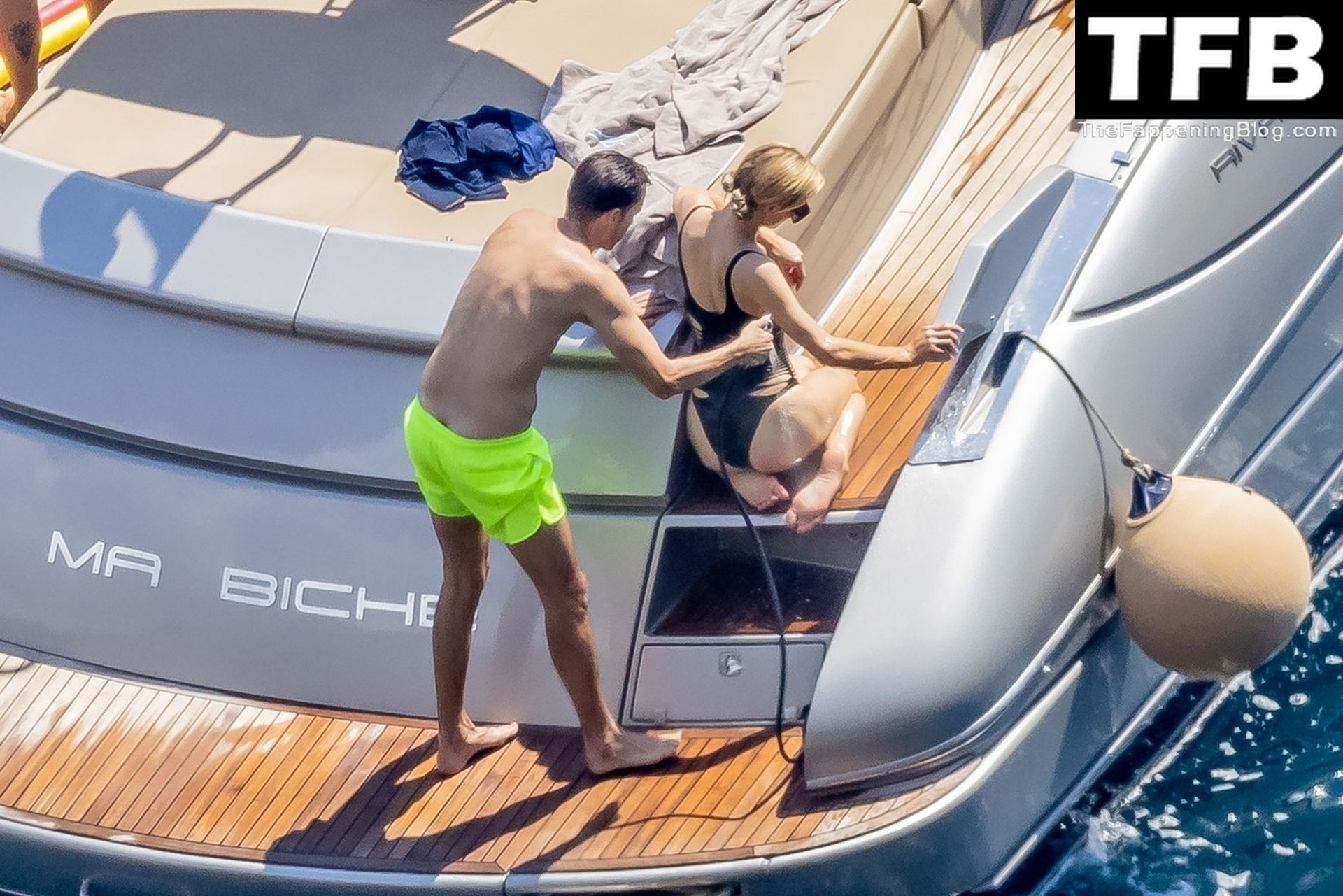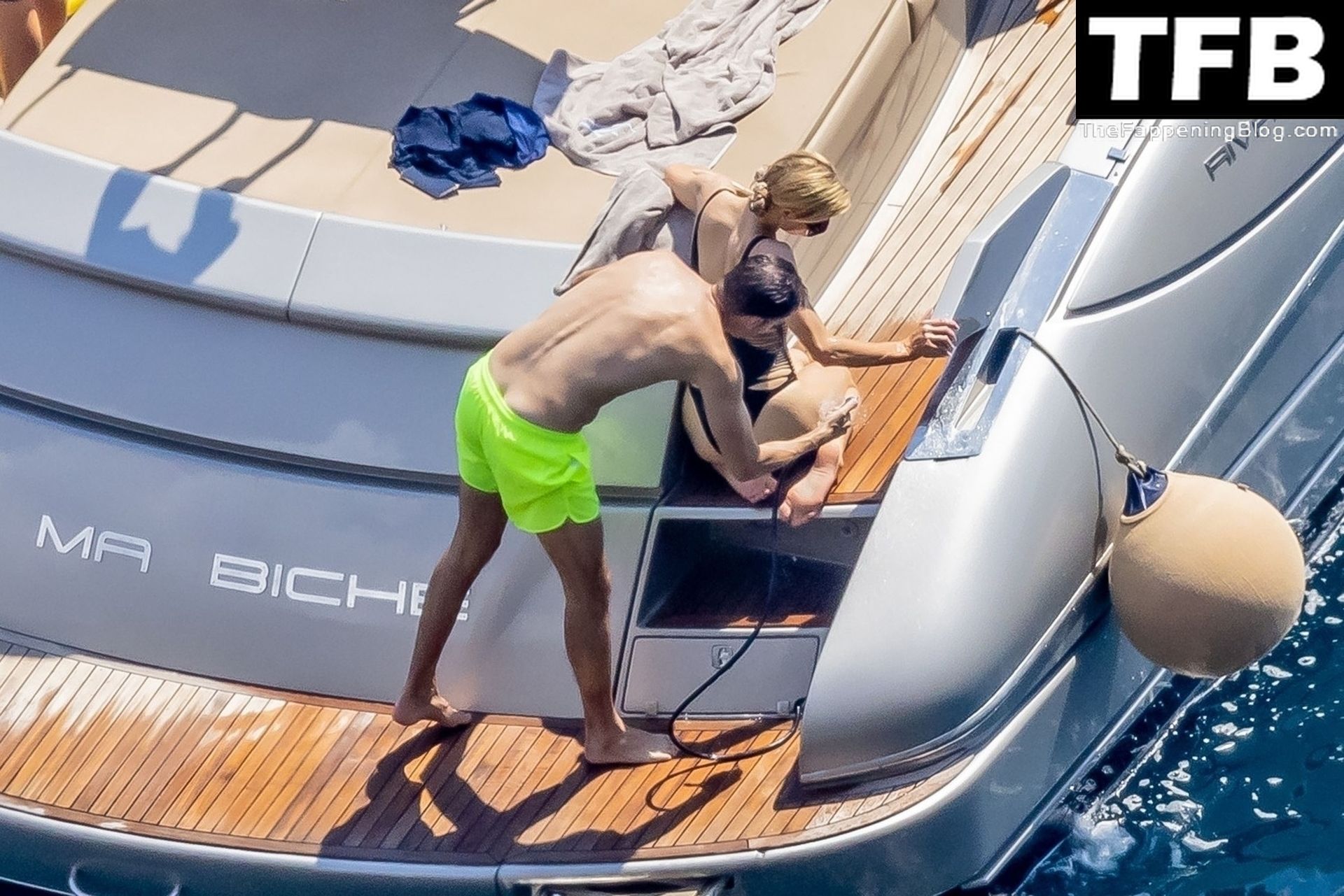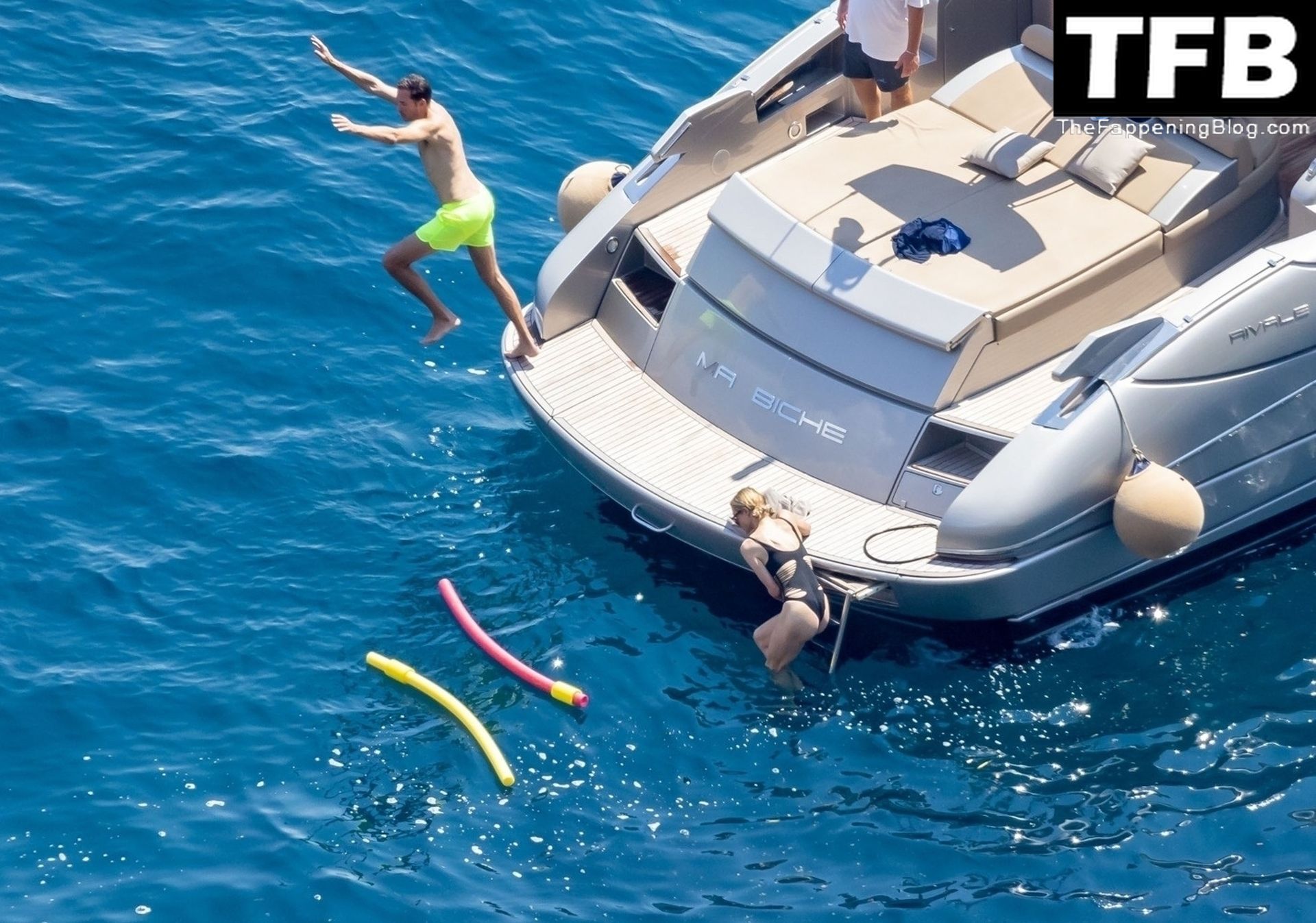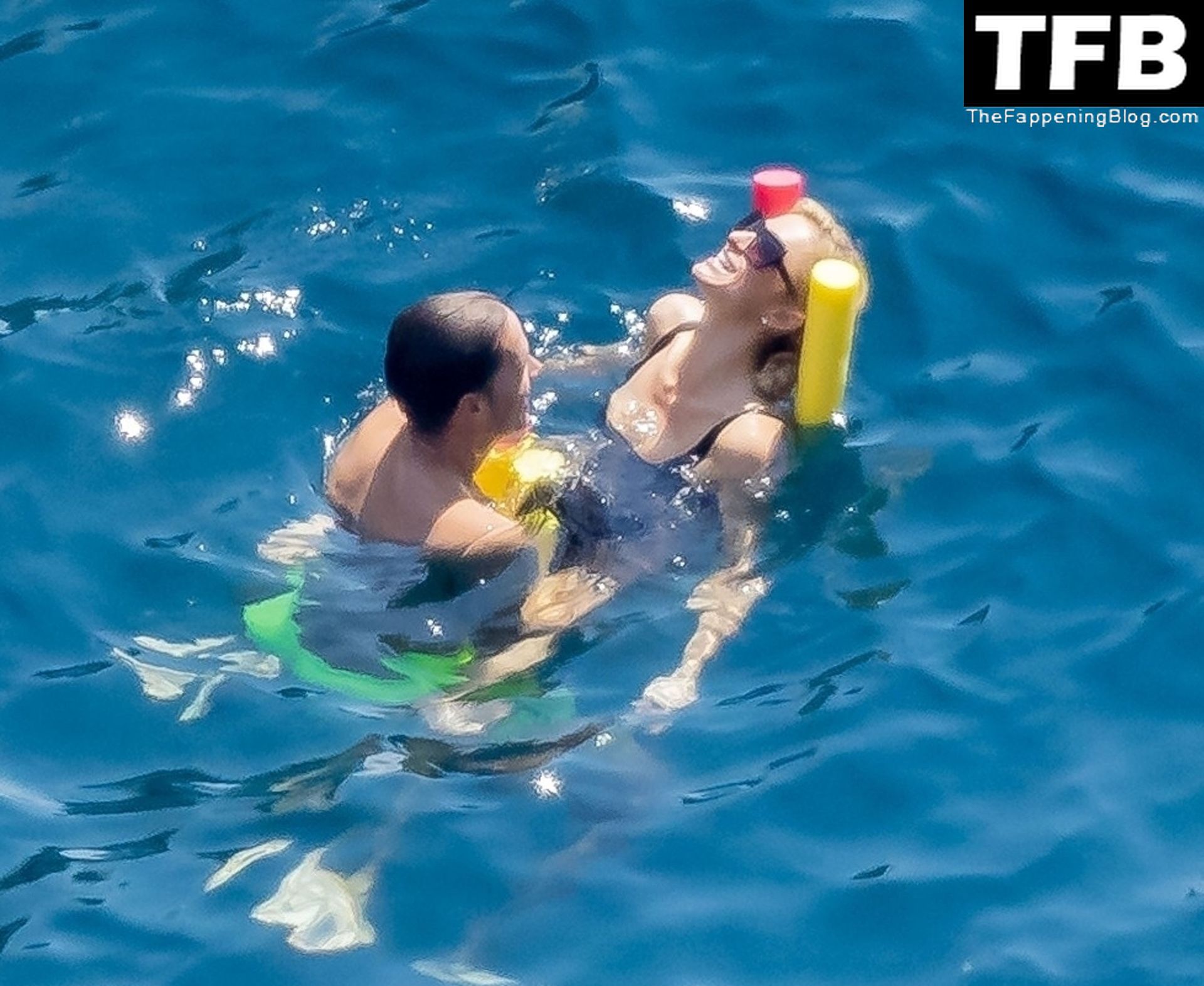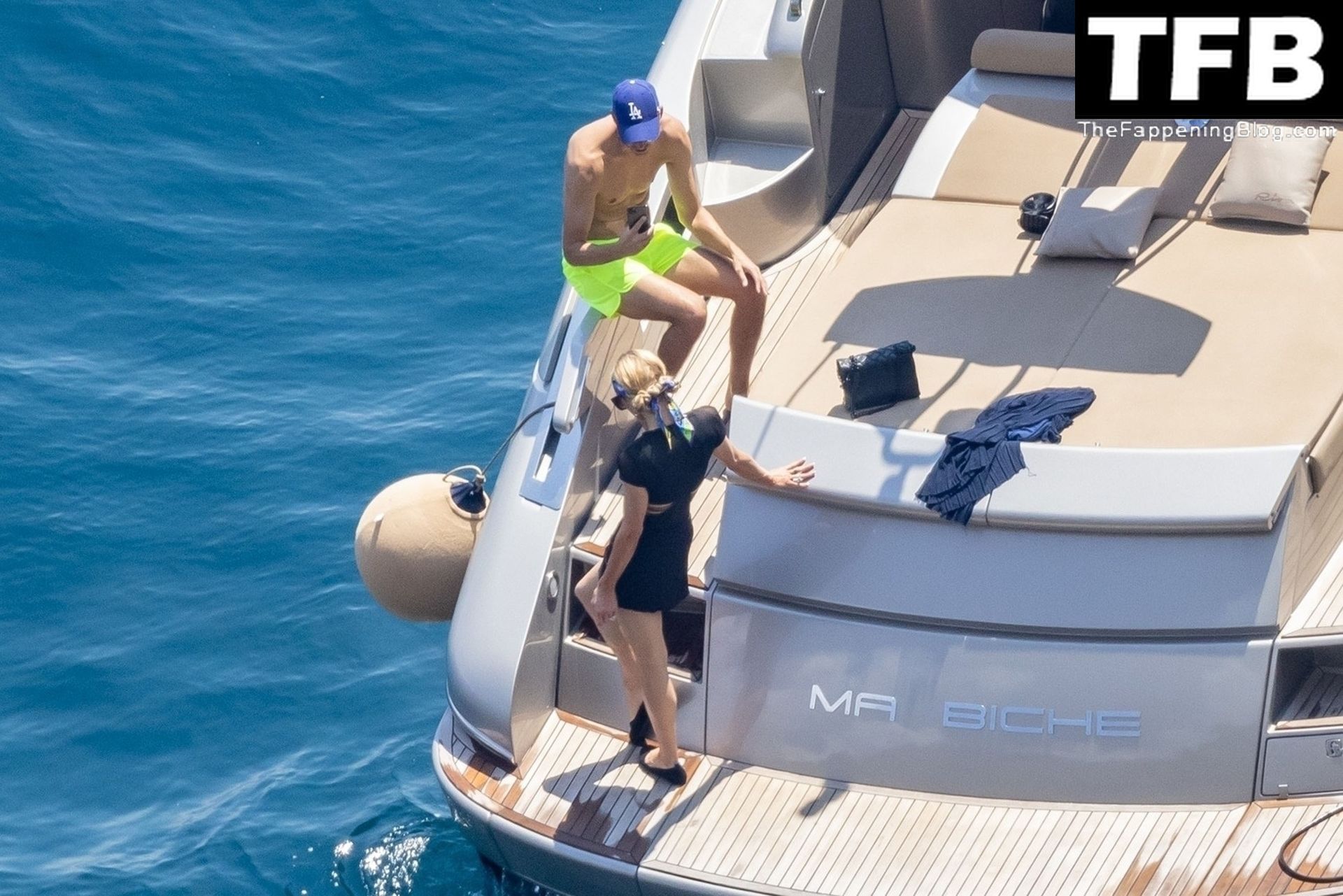 La coppia ha goduto del caldo italiano sulla loro barca mentre Carter, con i suoi pantaloncini verde lime, cercava di impressionare Paris con un salto da temerario dalla barca.