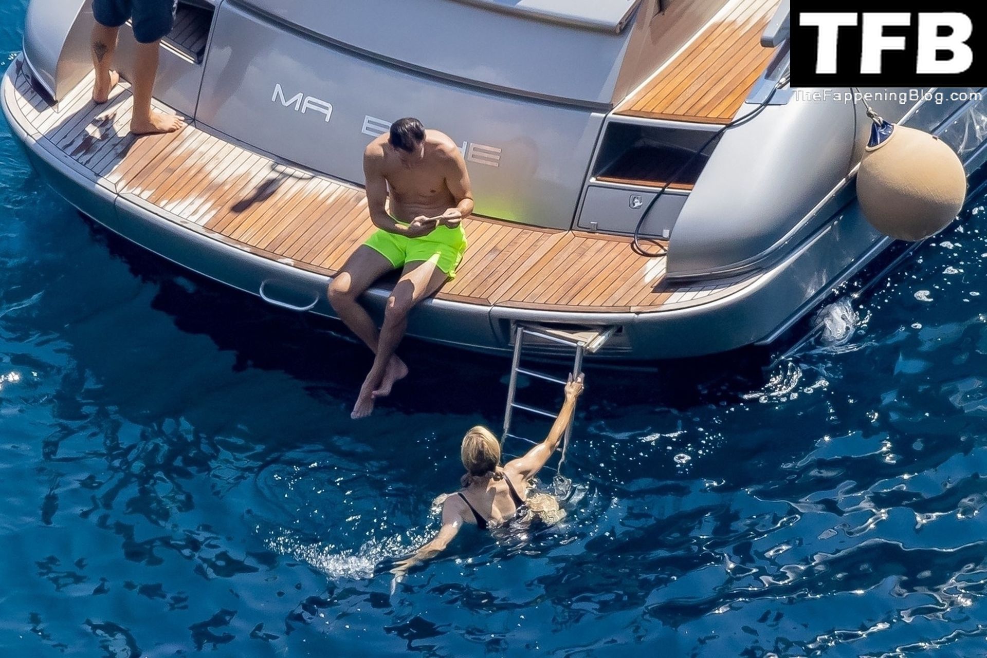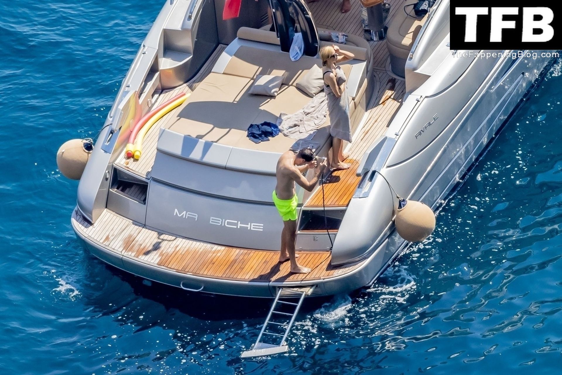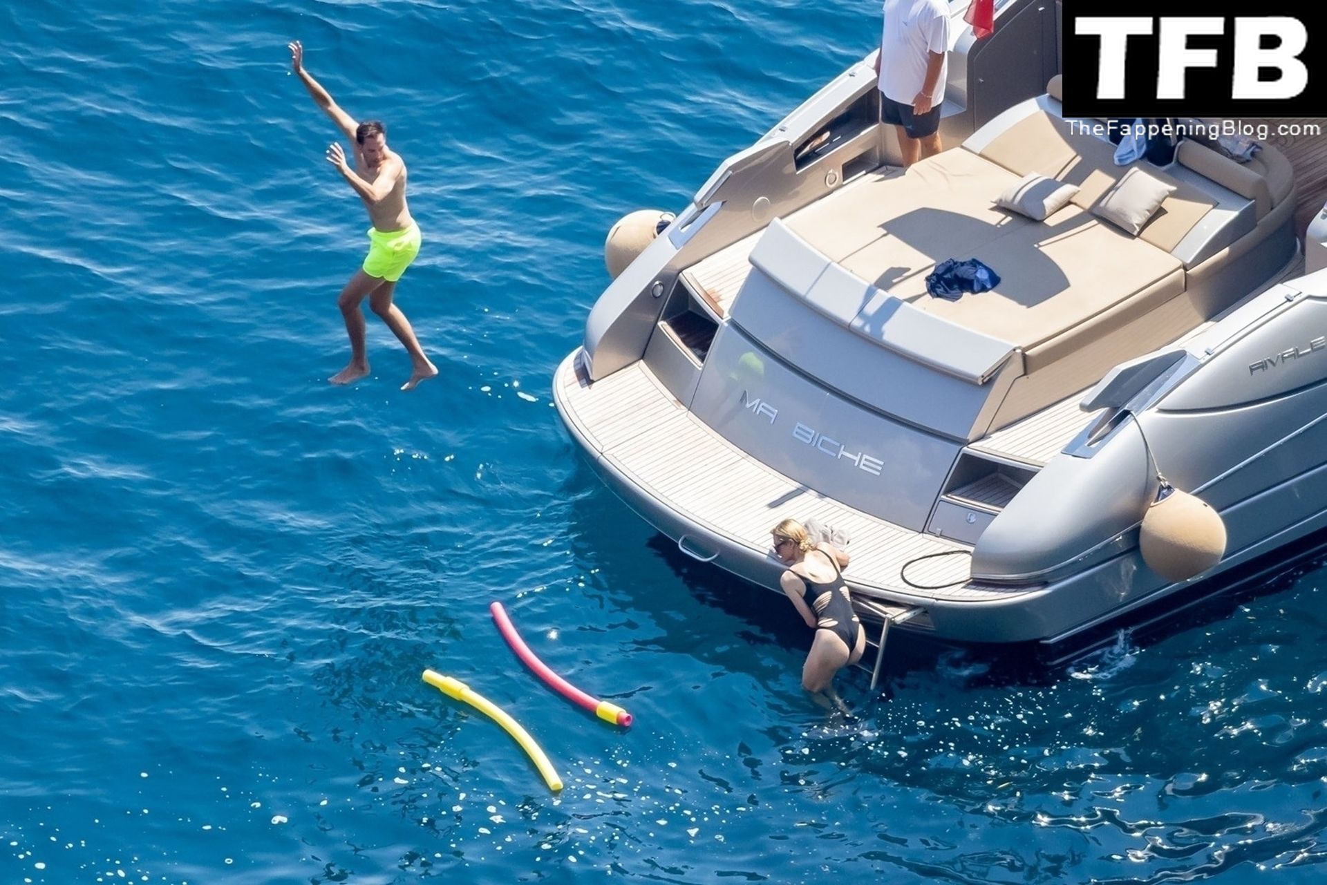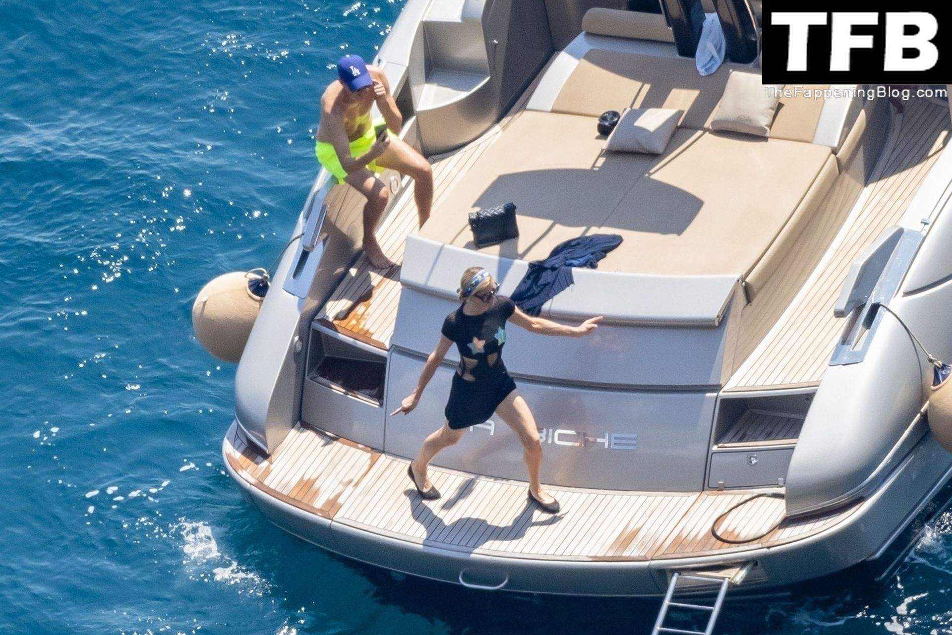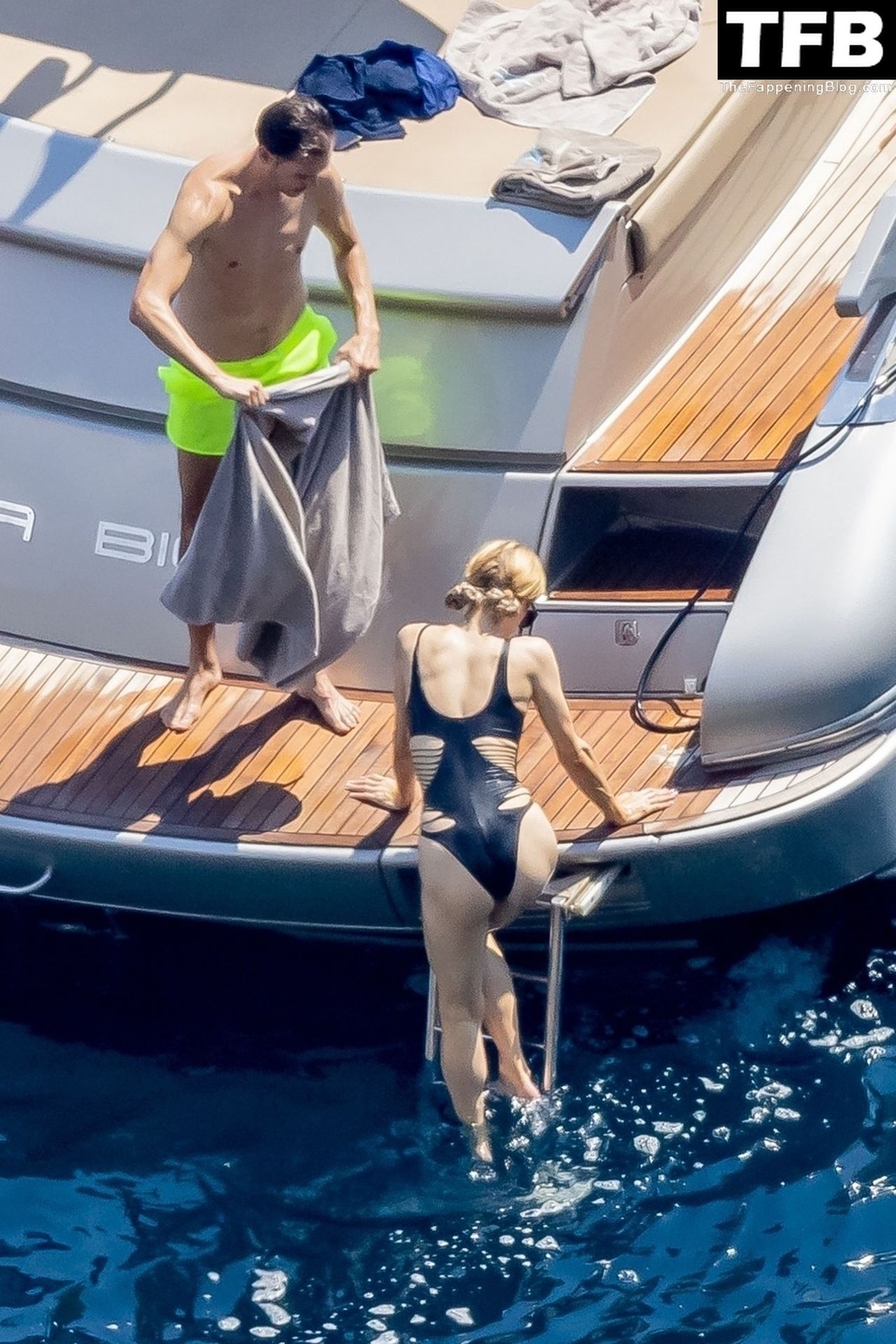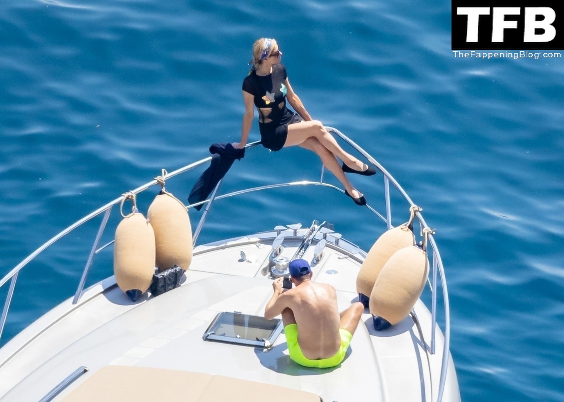 La coppia ha goduto del caldo italiano sulla loro barca mentre Carter, con i suoi pantaloncini verde lime, cercava di impressionare Paris con un salto da temerario dalla barca.