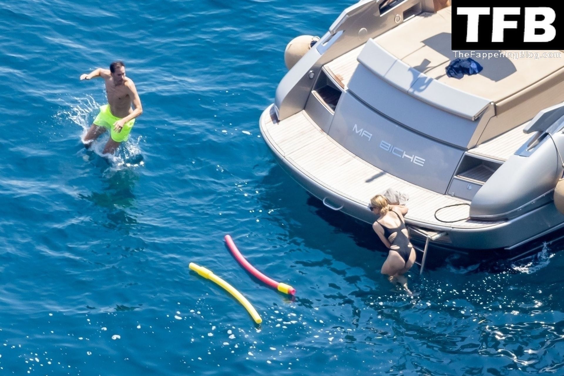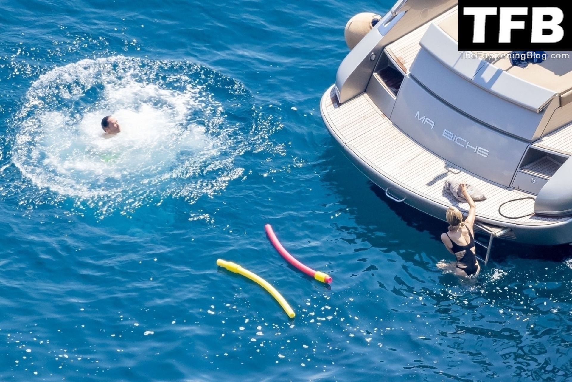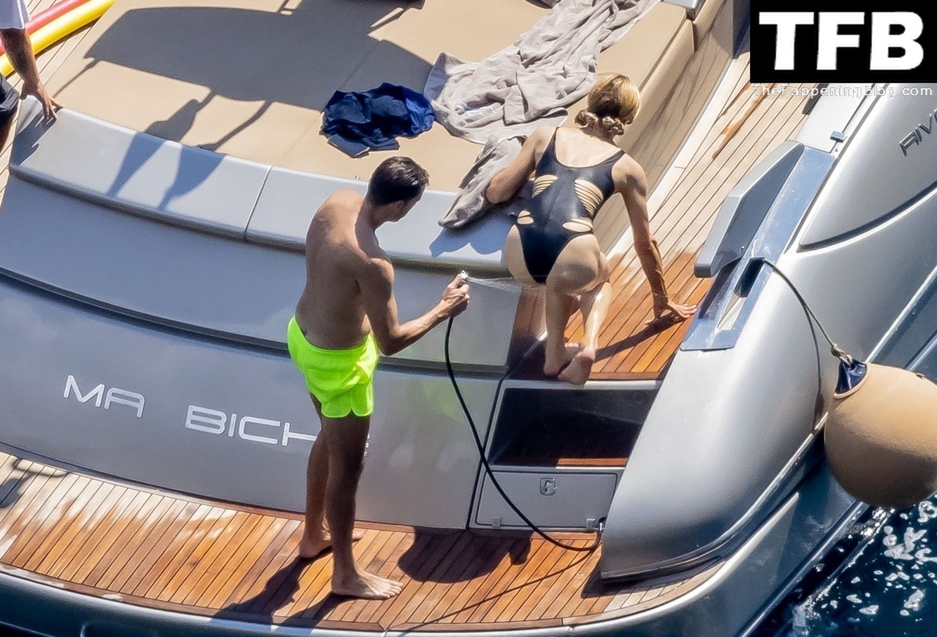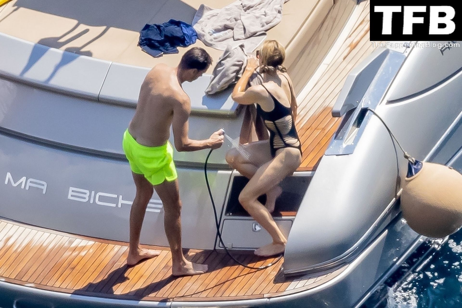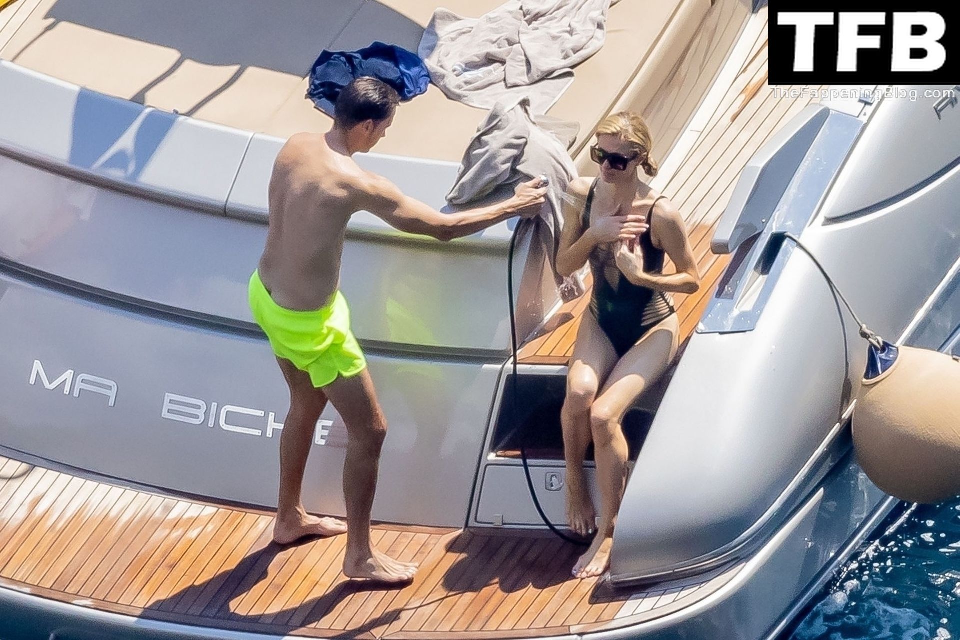 La coppia ha goduto del caldo italiano sulla loro barca mentre Carter, con i suoi pantaloncini verde lime, cercava di impressionare Paris con un salto da temerario dalla barca.