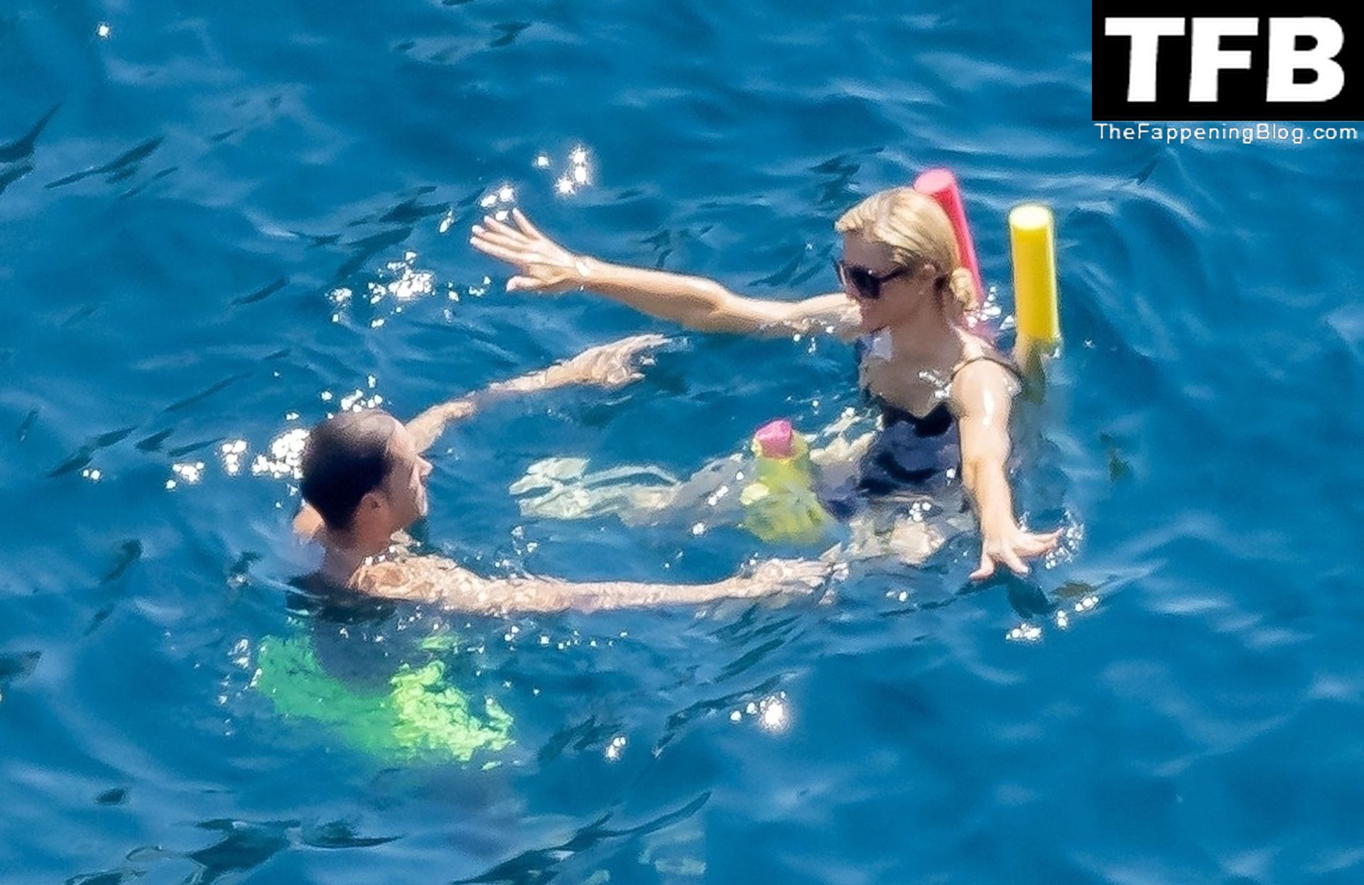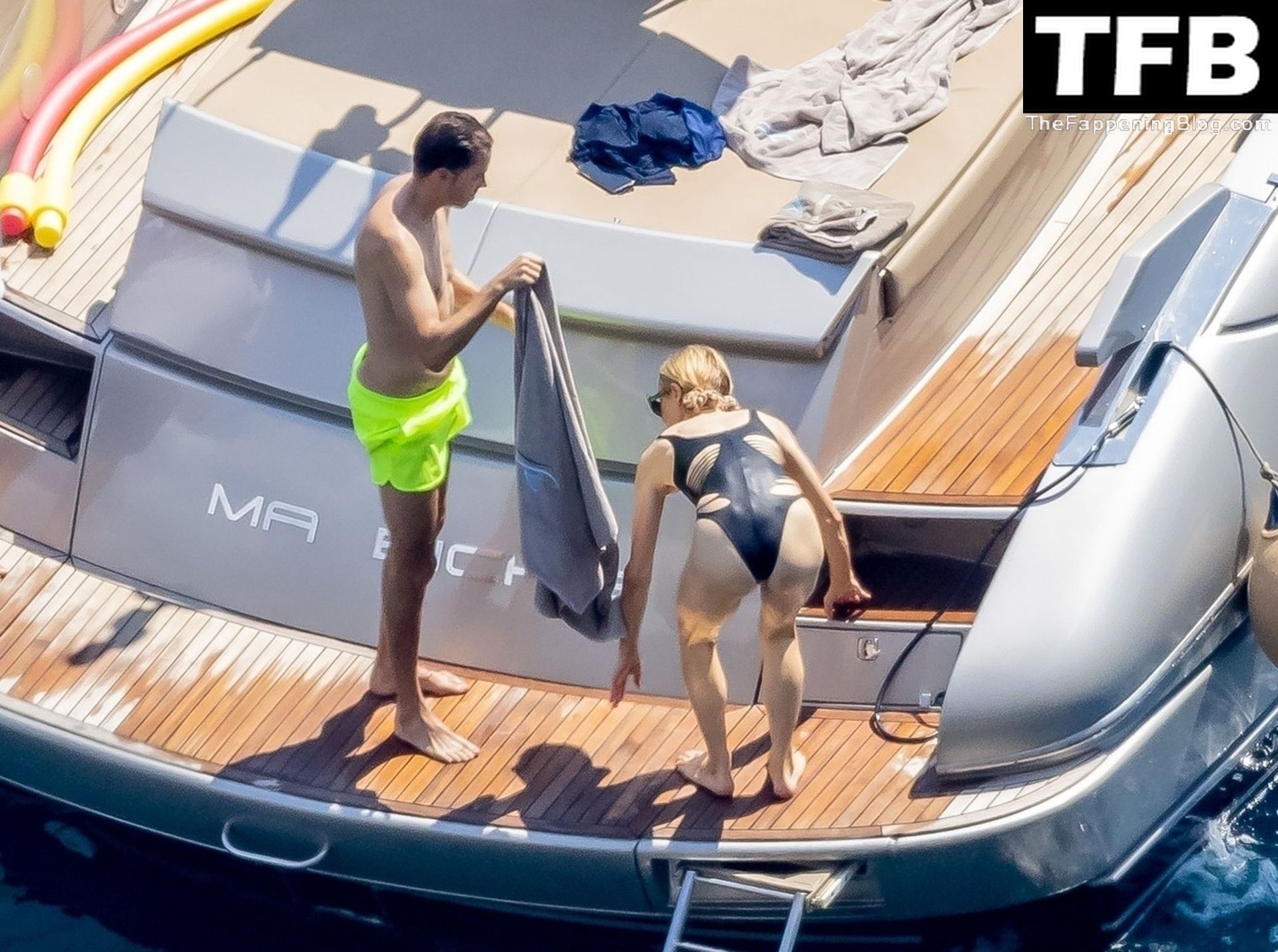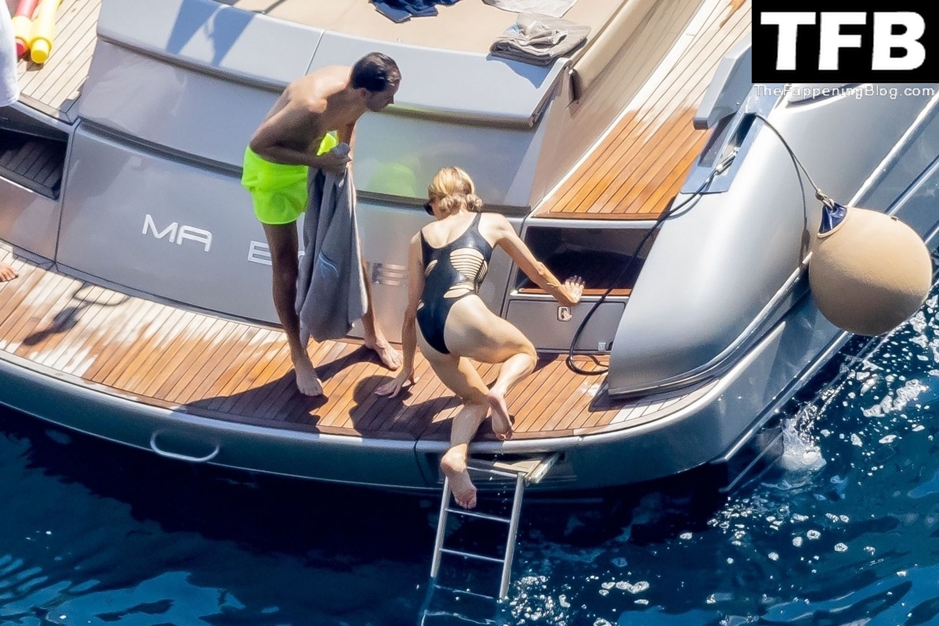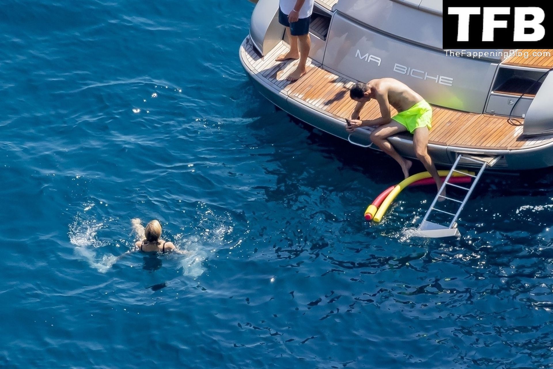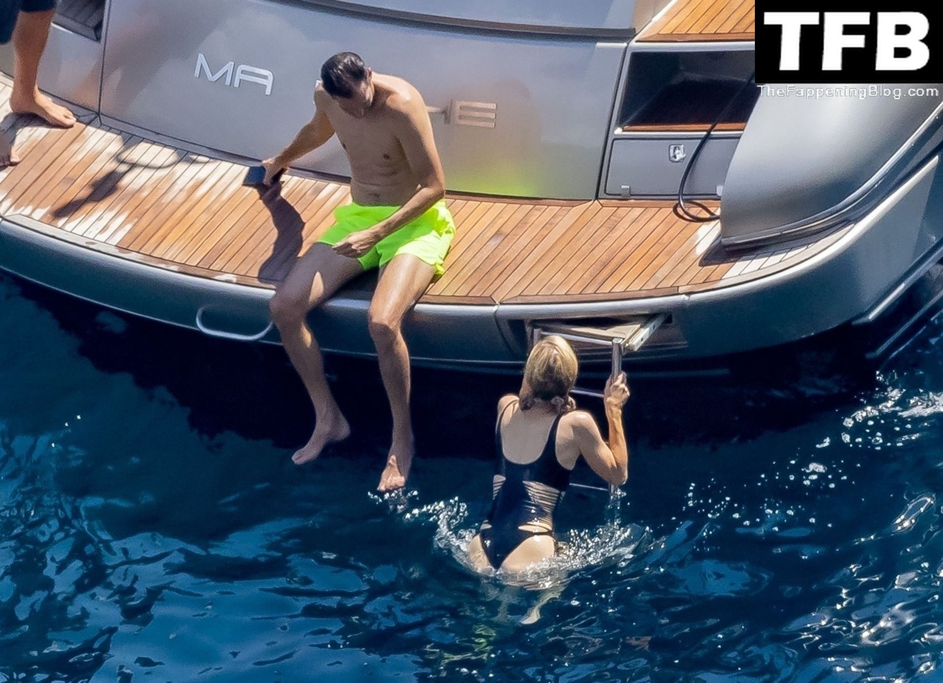 La coppia ha goduto del caldo italiano sulla loro barca mentre Carter, con i suoi pantaloncini verde lime, cercava di impressionare Paris con un salto da temerario dalla barca.