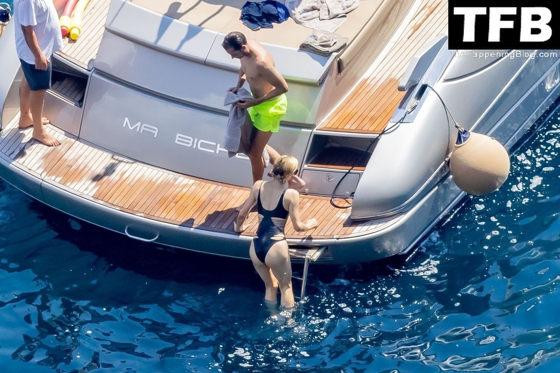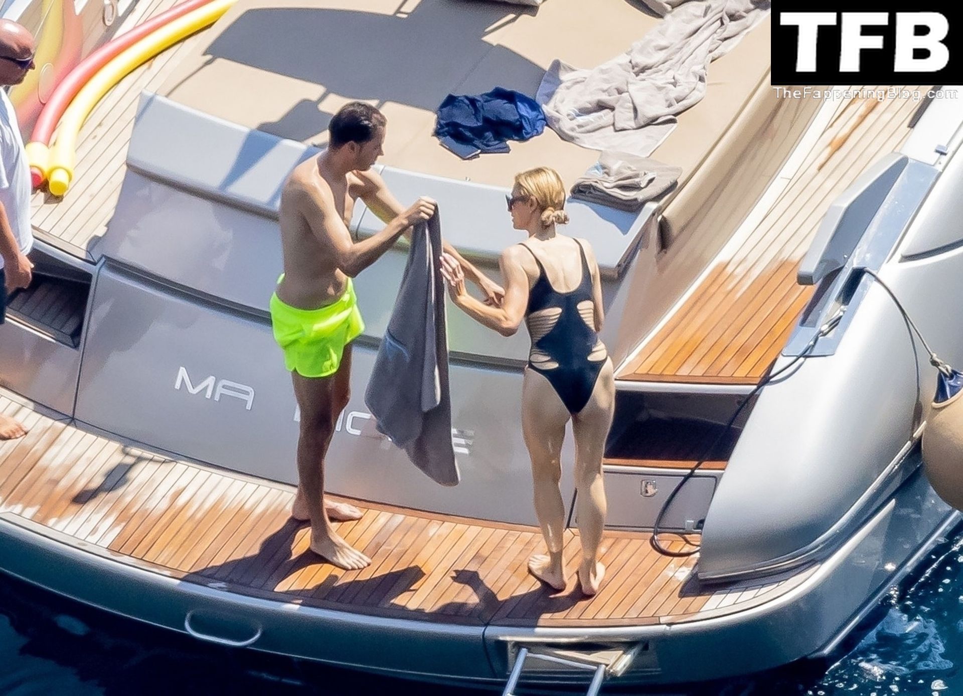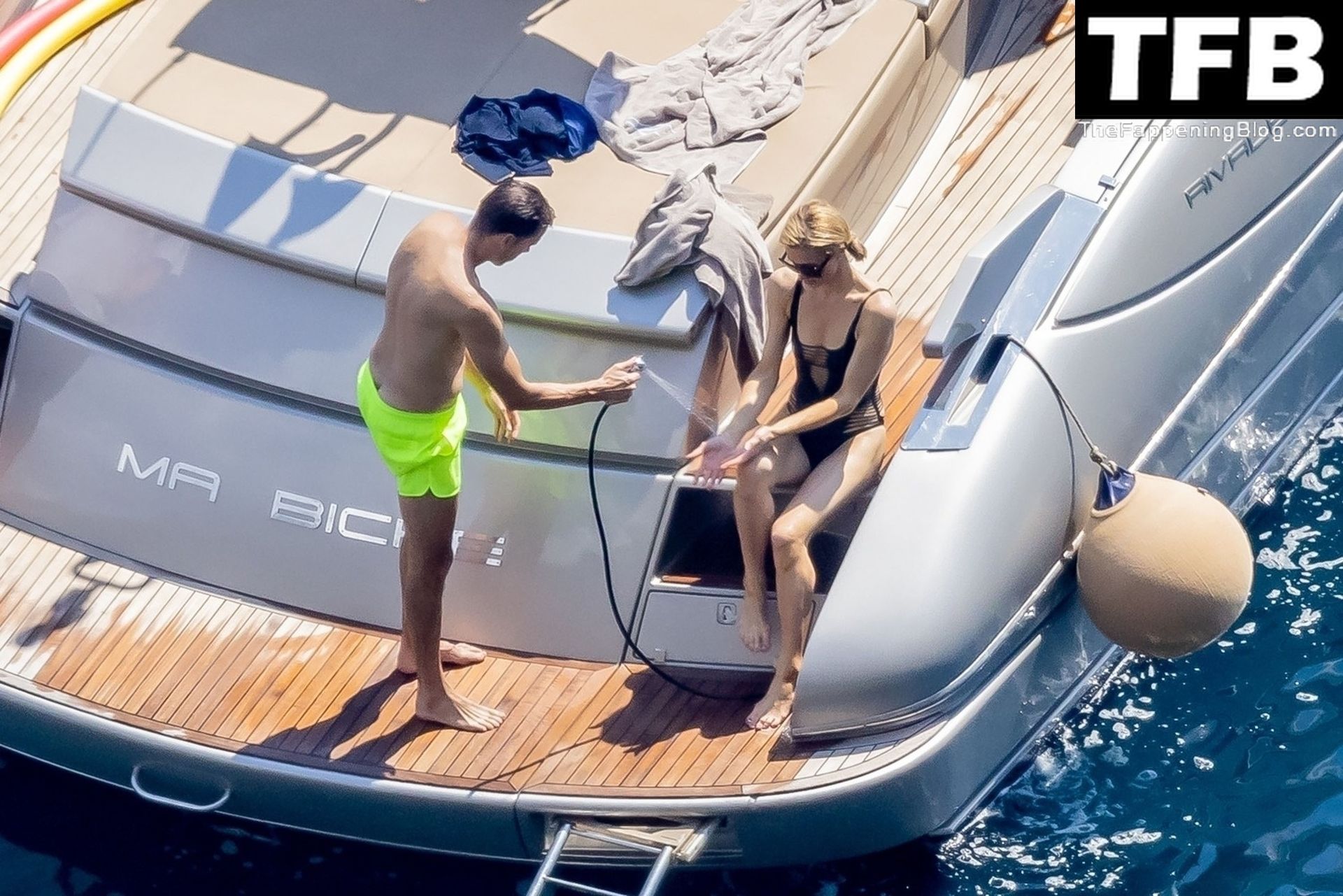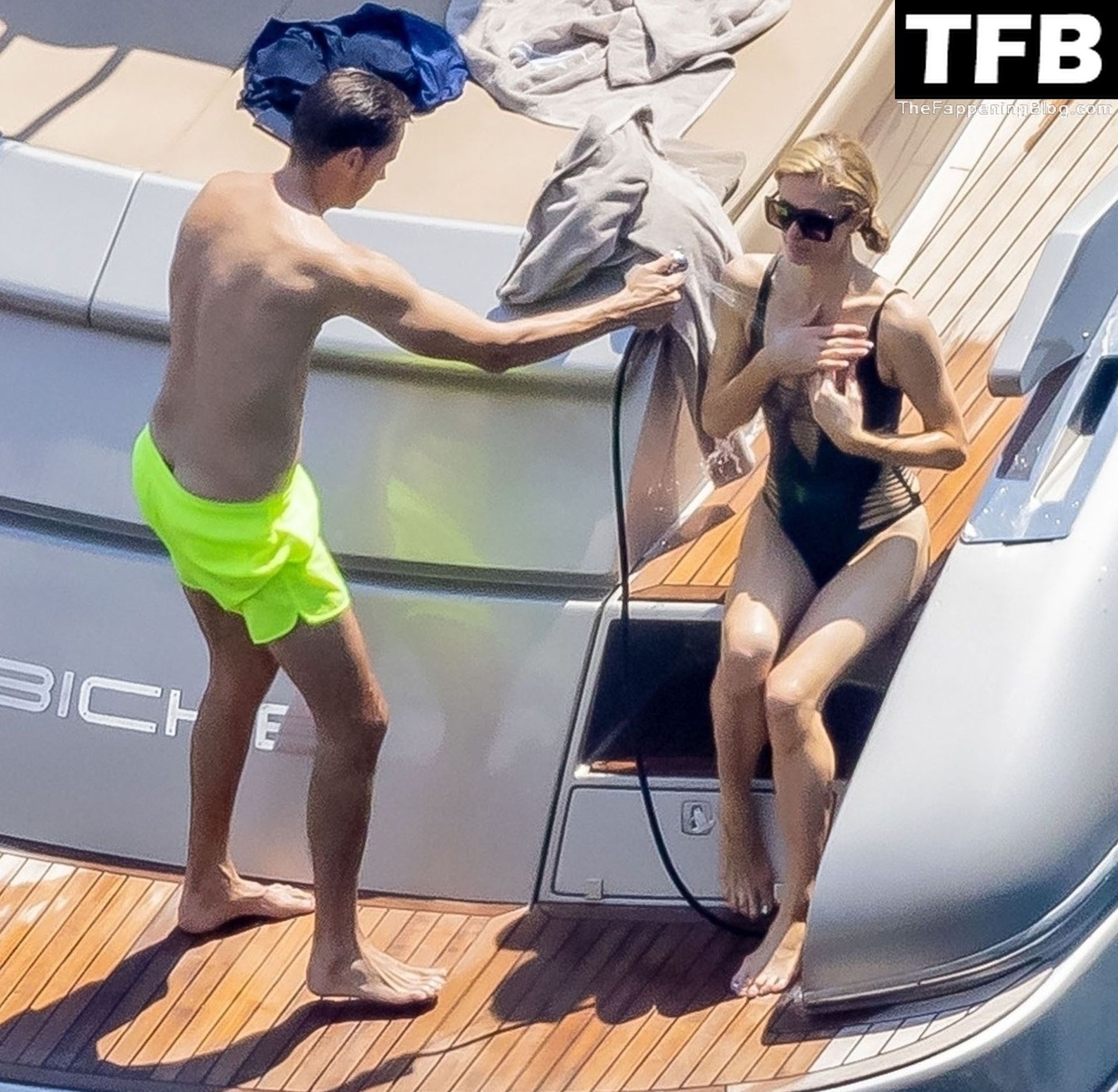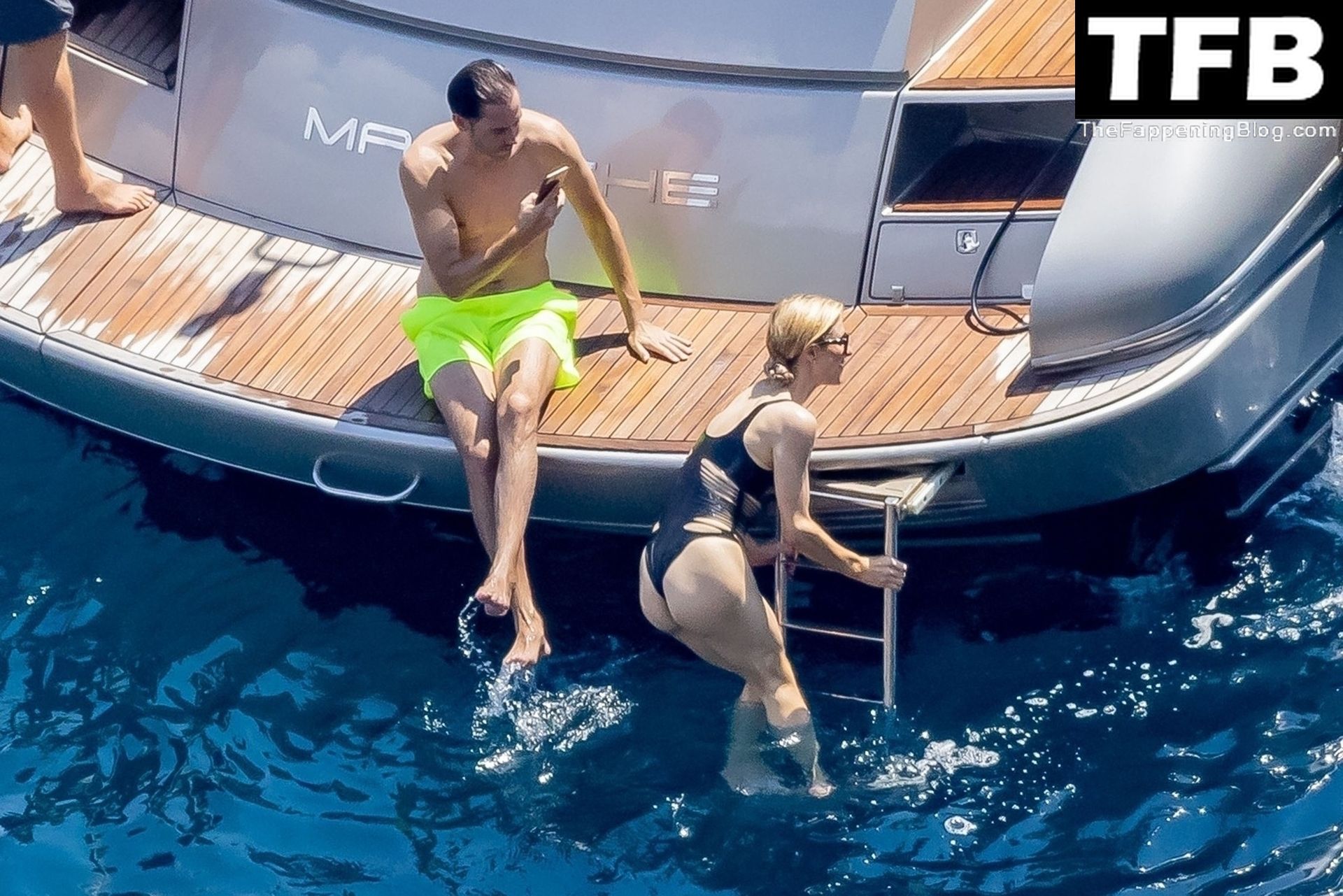 La coppia ha goduto del caldo italiano sulla loro barca mentre Carter, con i suoi pantaloncini verde lime, cercava di impressionare Paris con un salto da temerario dalla barca.