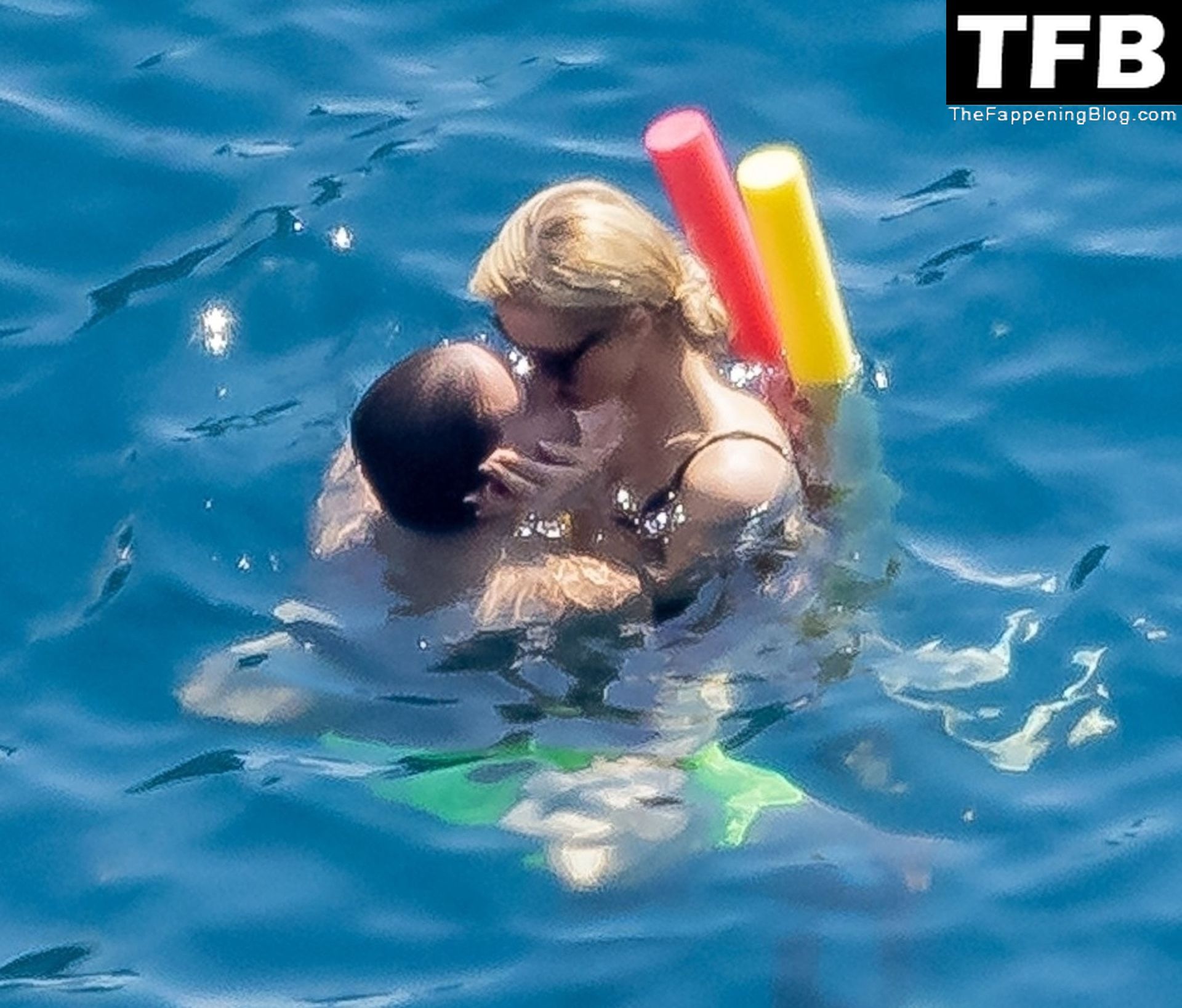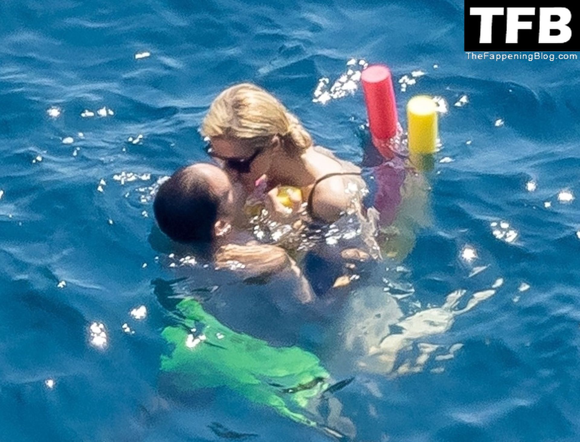 Paris indossava il suo costume da bagno nero mentre la coppia faceva un tuffo nel mare e mostrava un’enorme dimostrazione d’affetto con un bacio appassionato in mare durante la loro romantica vacanza europea.