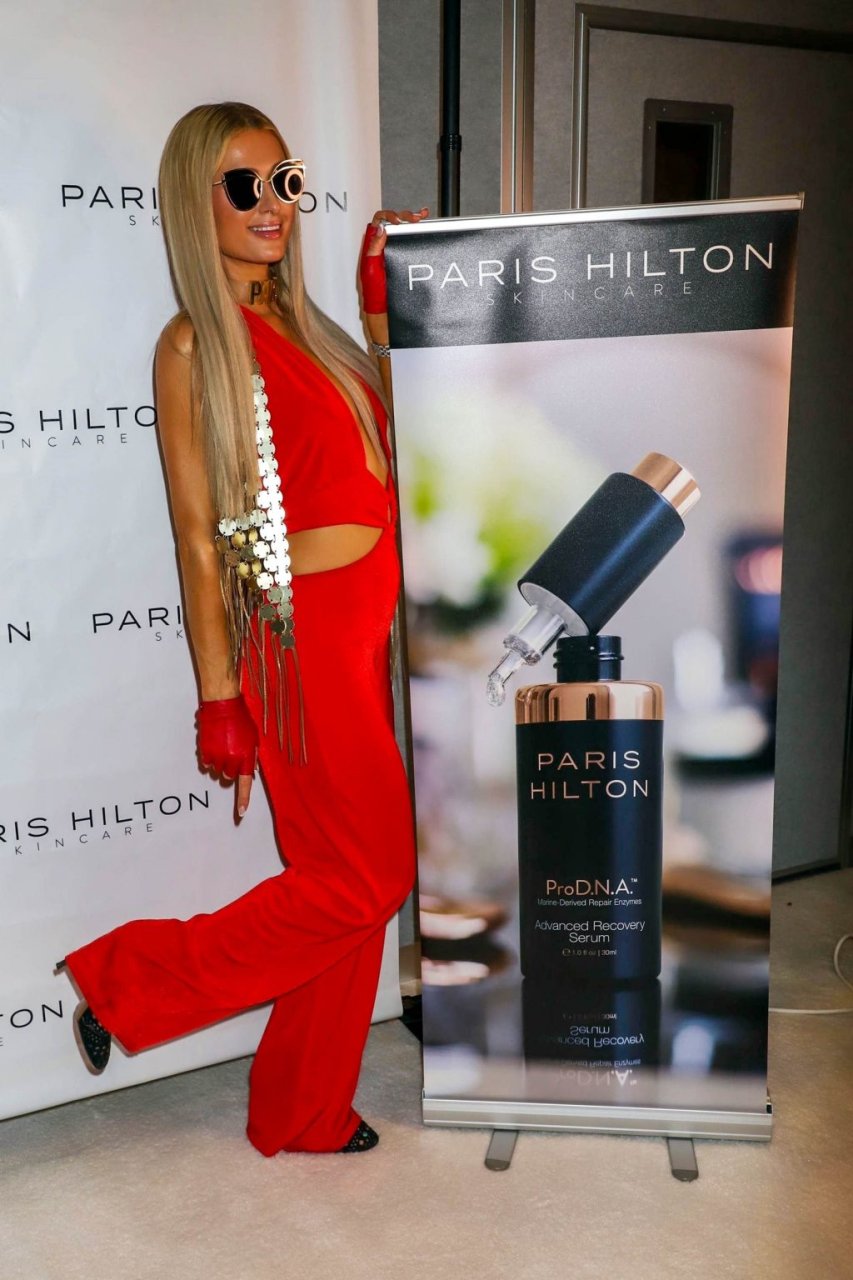 Paris Hilton bionda dorata (37) promuove la sua linea di skincare a Las Vegas, 29/07/2018.