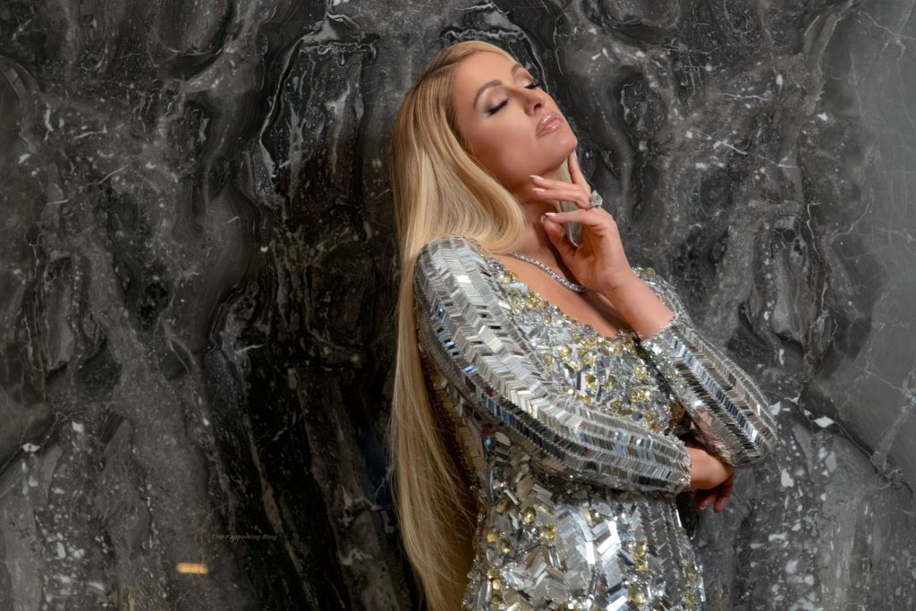 La star di The Fappening Paris Hilton sfoggia le sue famose gambe scegliendo un vestito per l’evento.