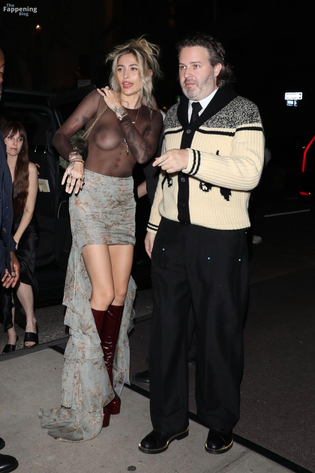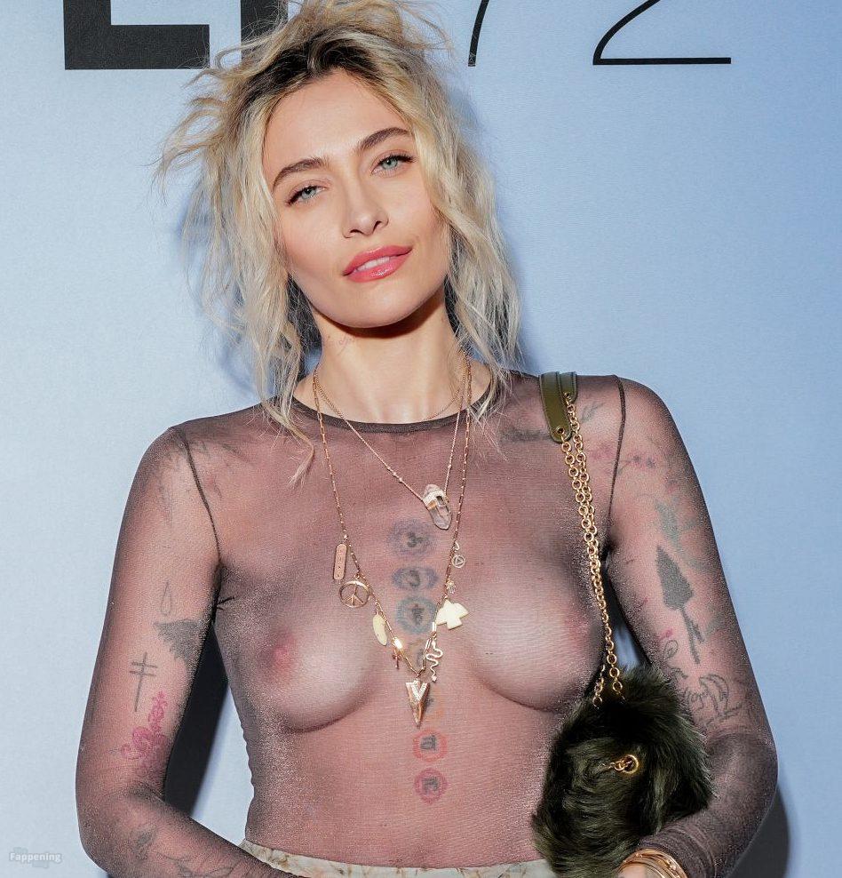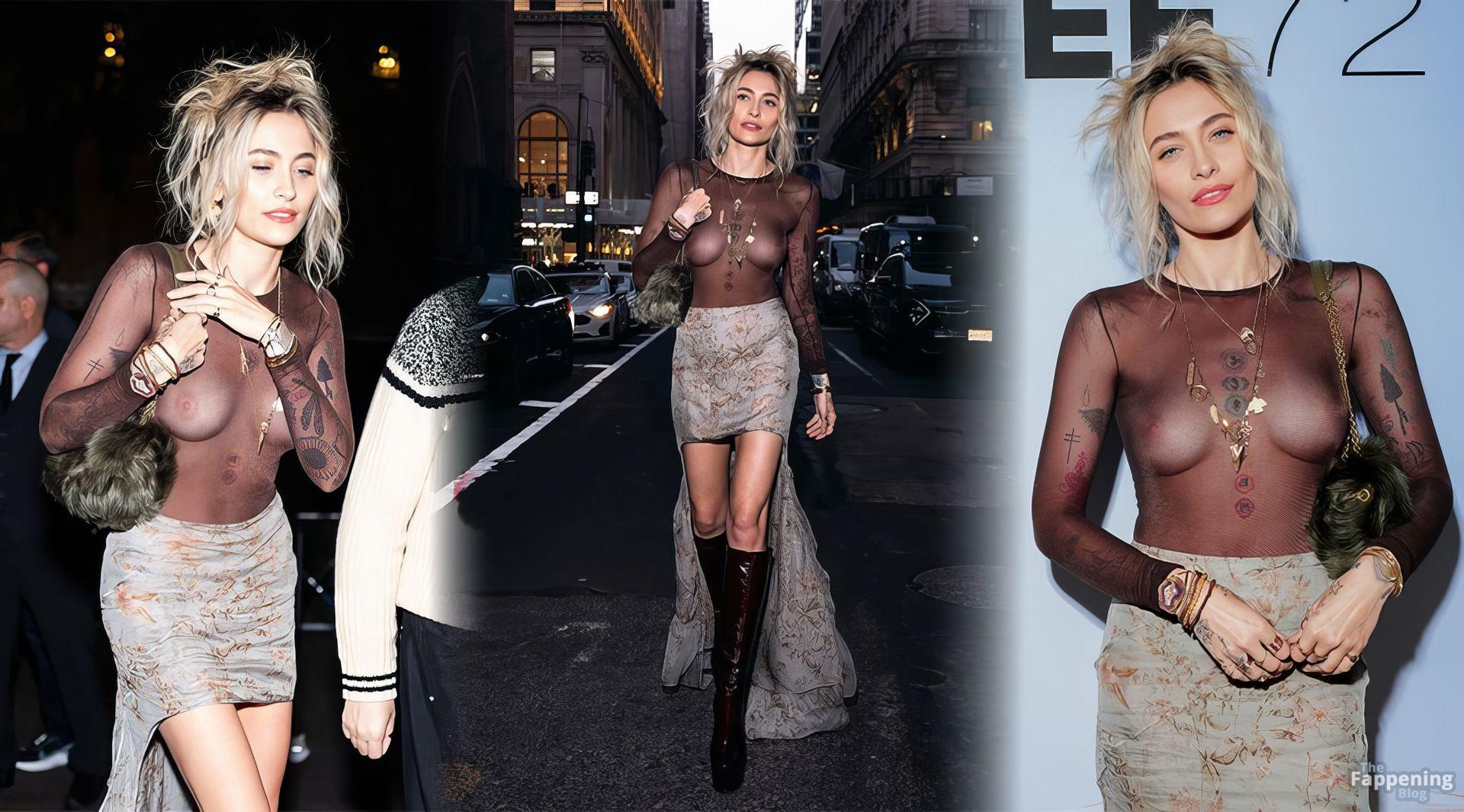 Paris Jackson sfoggia i suoi seni nudi in un top di rete trasparente al lancio di EE72 a New York. Arriva alla festa della rivista 72 organizzata da Edward Enninful durante la New York Fashion Week.