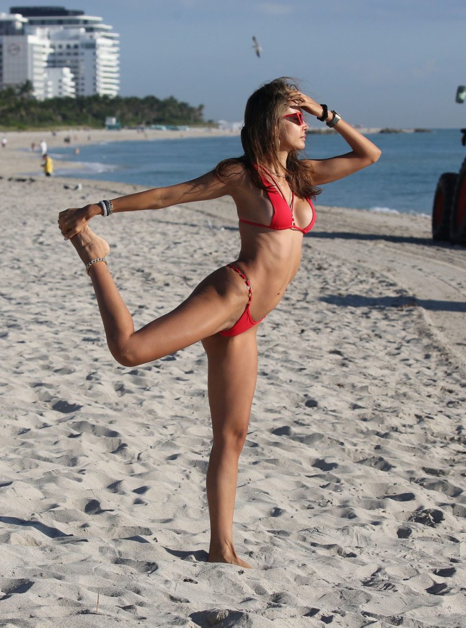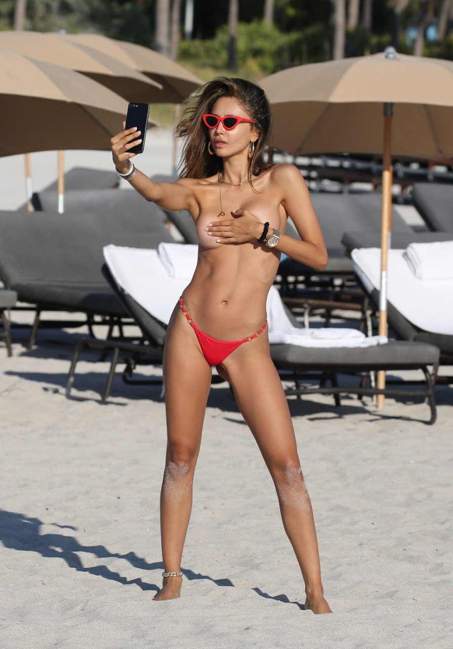 La modella e attrice messicana Patricia Contreras si mostra topless per selfie sulla spiaggia di Miami, 01/11/2018.