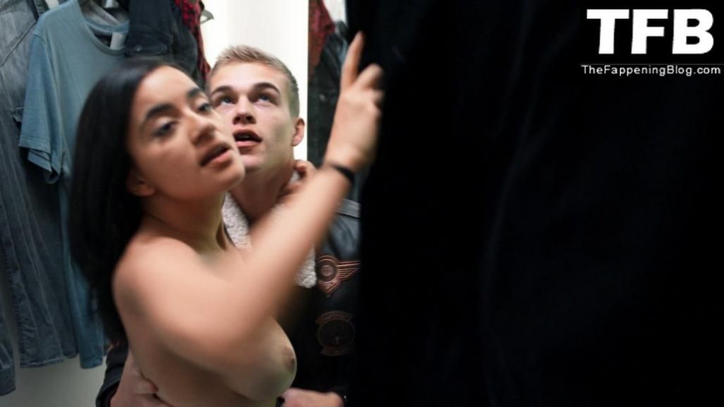 Paulina Gaitan è a cavalcioni su un ragazzo in uno spogliatoio, si toglie la maglietta sopra la testa per rimanere a seno nudo e mostra il seno destro un paio di volte, soprattutto quando si gira per chiudere la tenda dietro di lei.