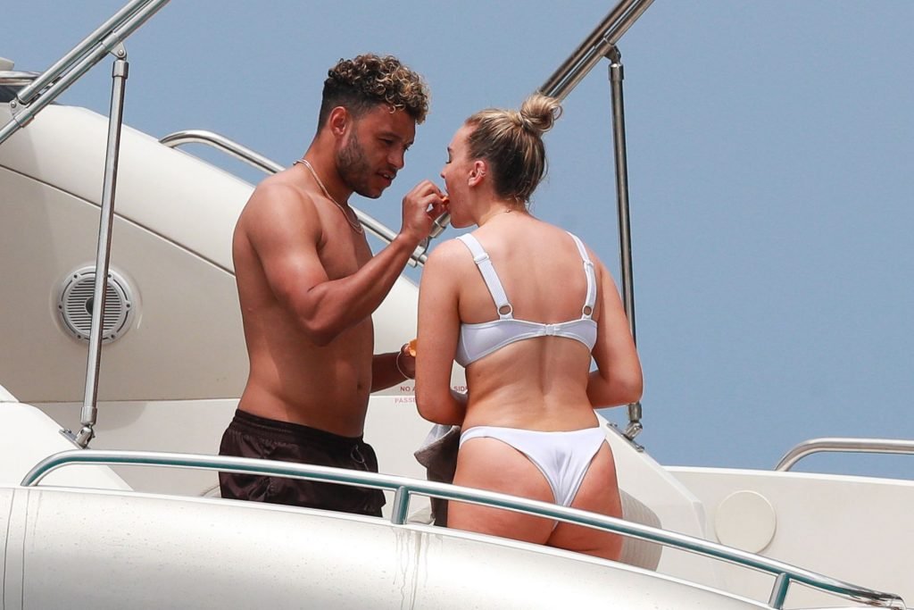 Perrie Edwards e Alex Oxlade-Chamberlain sono stati visti in vacanza a Ibiza, 08/06/2019. Perrie Edwards ha mostrato il suo corpo sexy in un bikini bianco sulla barca.