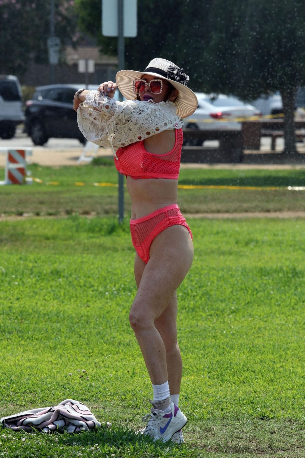 Non può essere un bikini!!!! Sembra roba di seconda mano che nessun altro indosserebbe... Forse l'ha ricevuto da un hater come regalo falso ed è troppo stupida per capirlo?