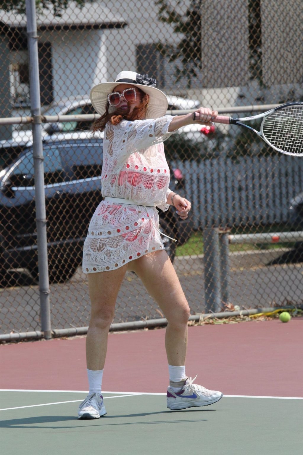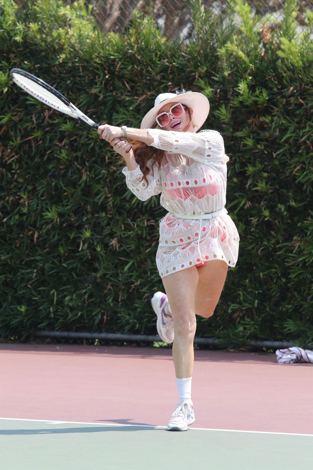 Sembra vent'anni più giovane dalla vita in giù rispetto alla vita in su. Phoebe, indossa sempre una maglia a maniche lunghe e stai lontana dal sole! Non mi piace il viso/trucco ma la farei in posizione doggy style.