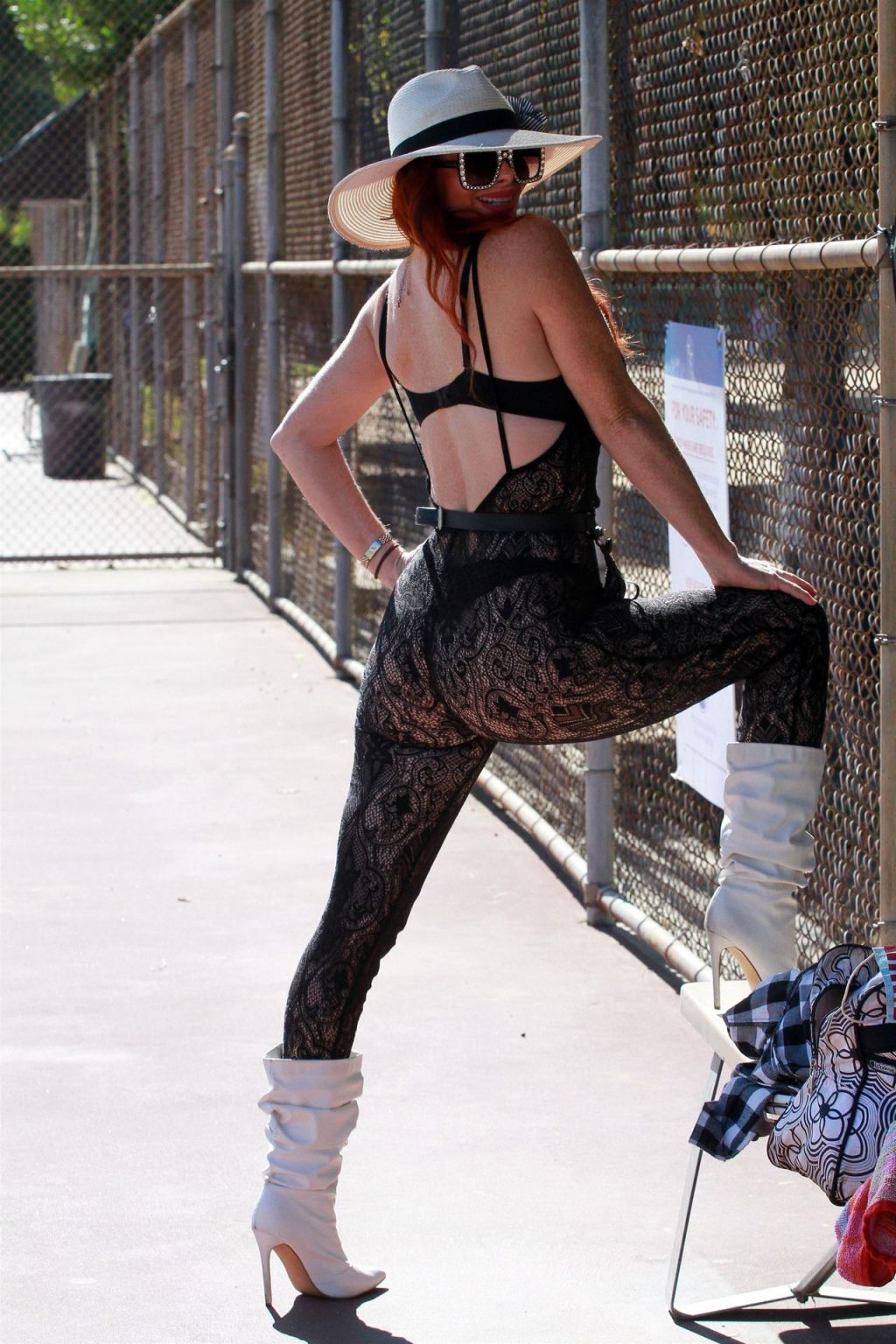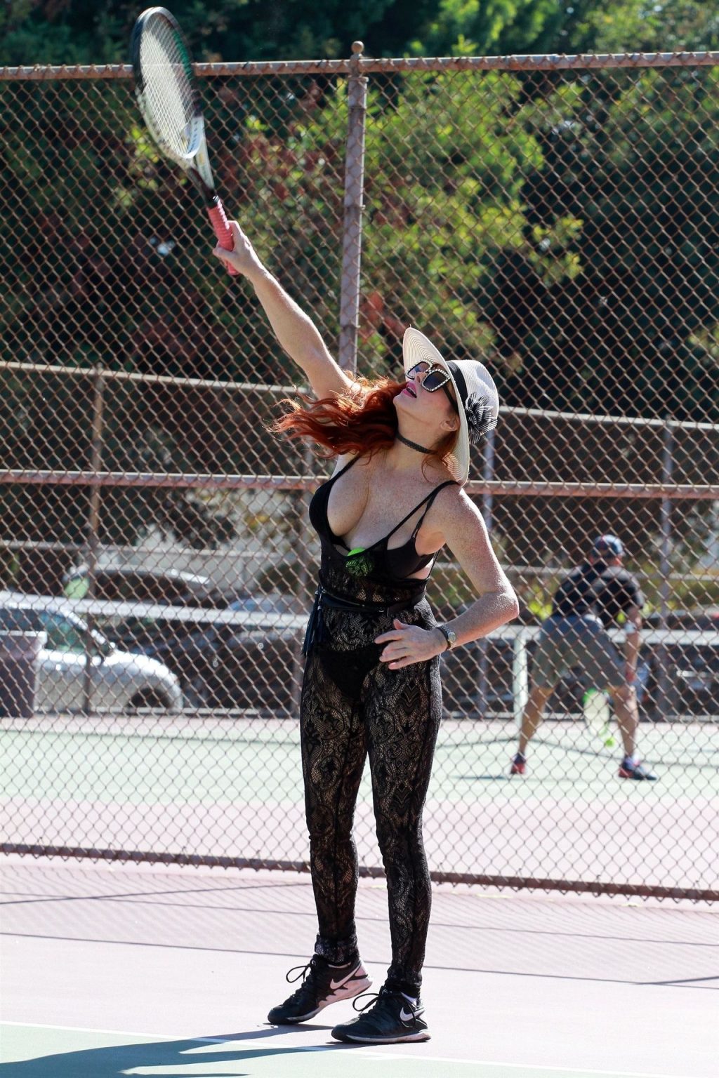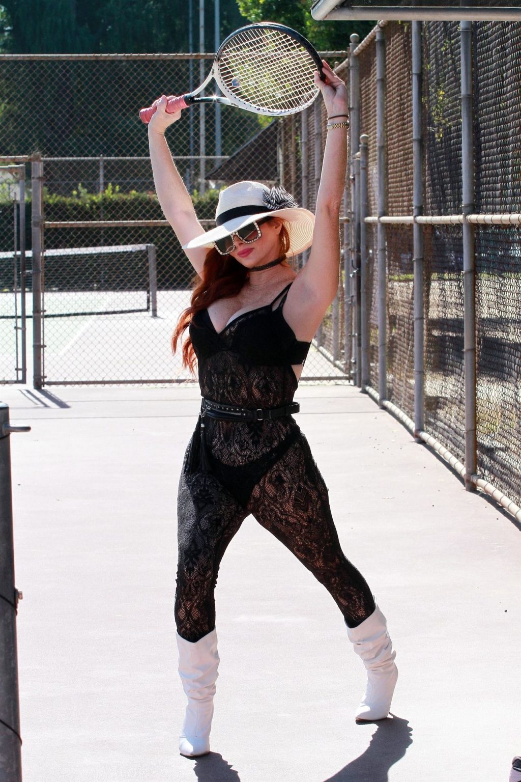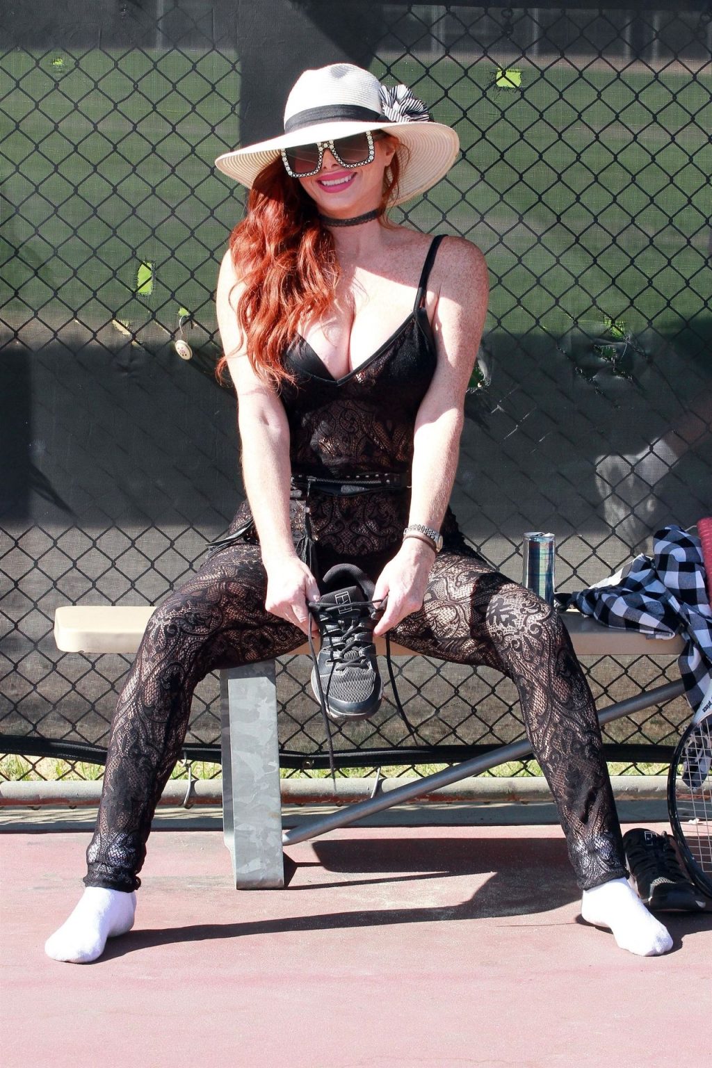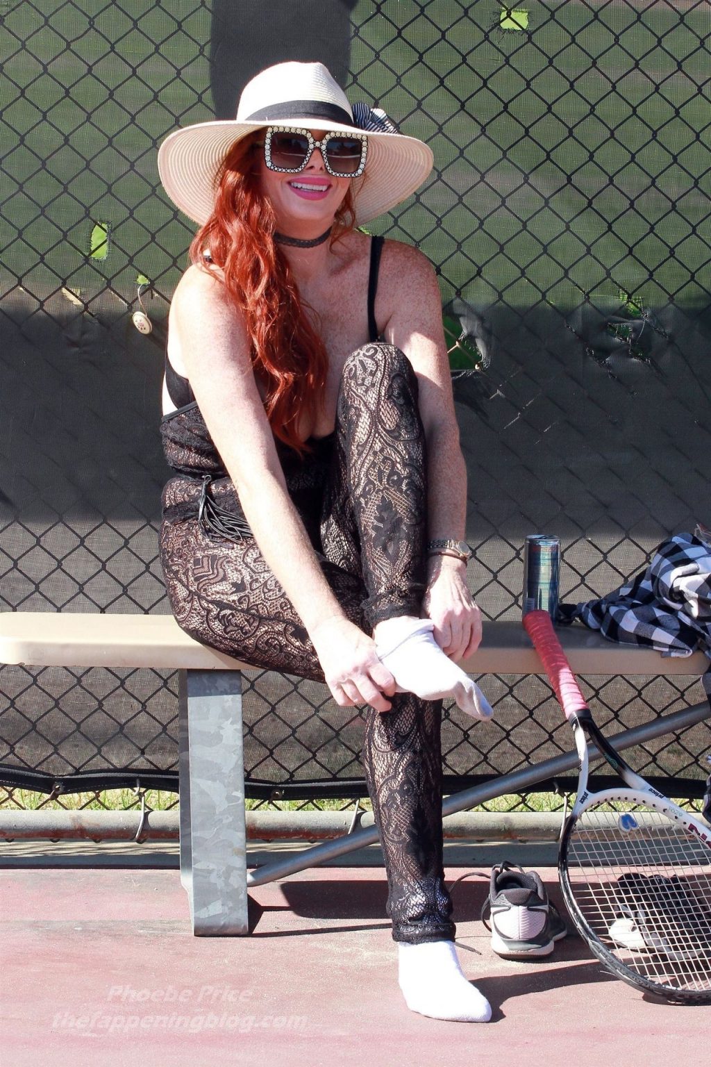 Phoebe Price è stata vista mentre cambiava scarpe e colpiva alcune palline da tennis sul campo indossando un body di pizzo – Los Angeles, 11/05/2020.