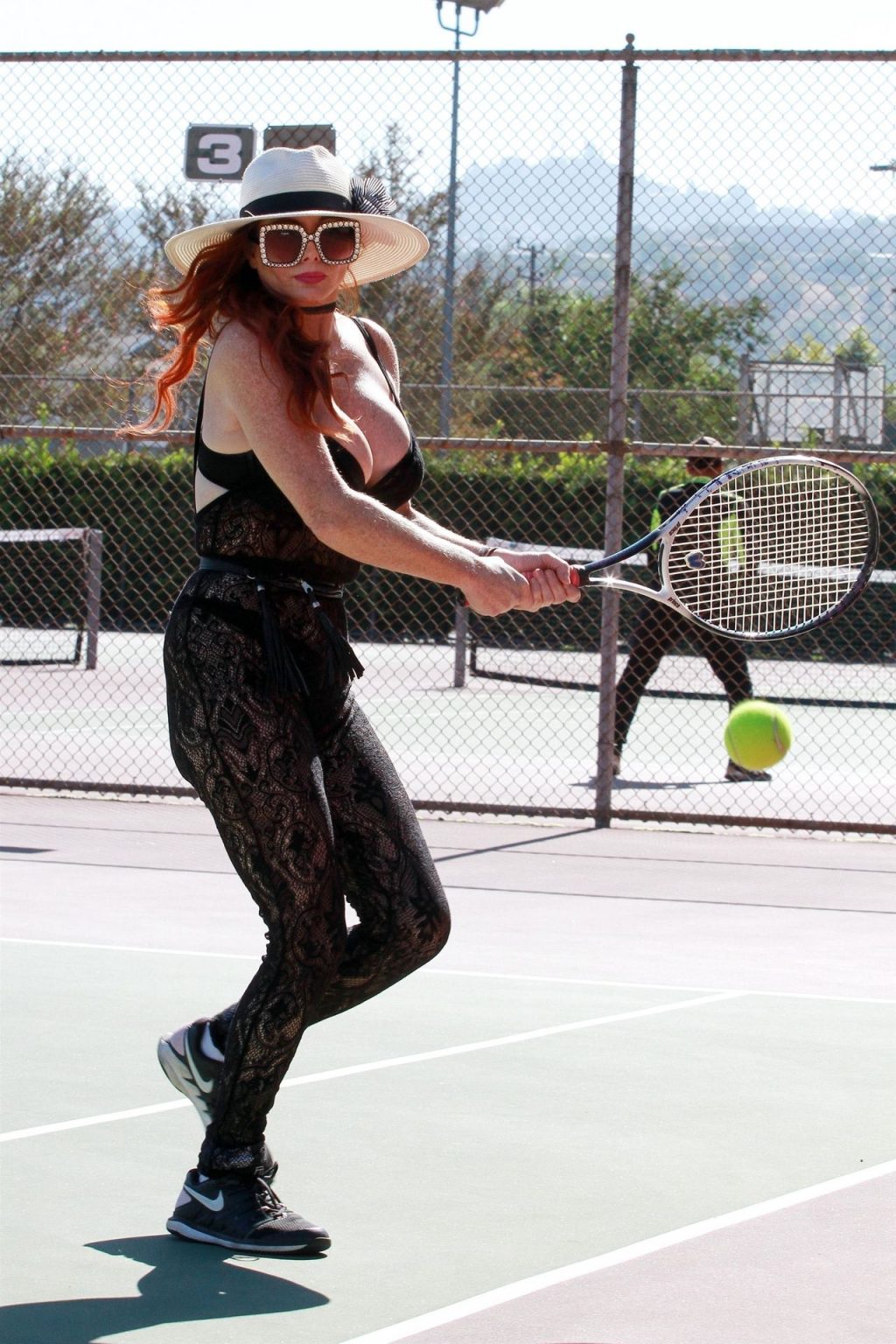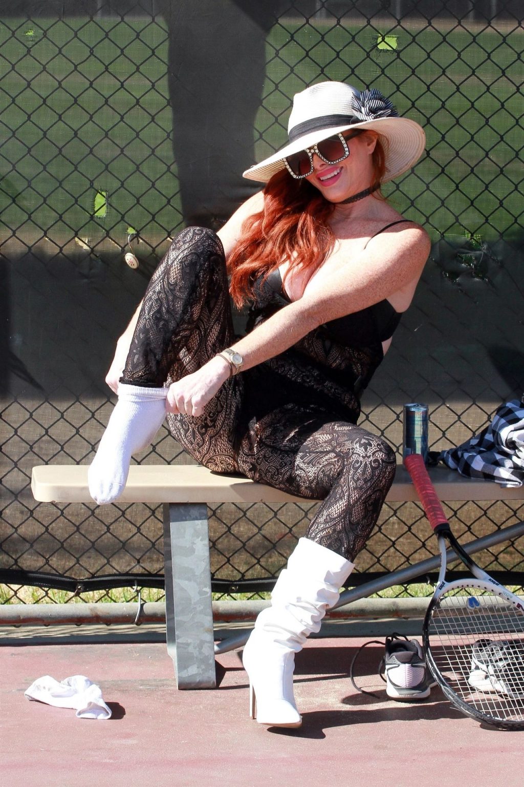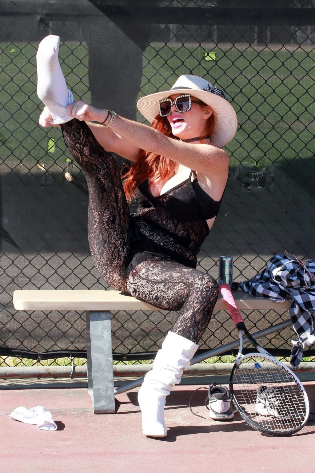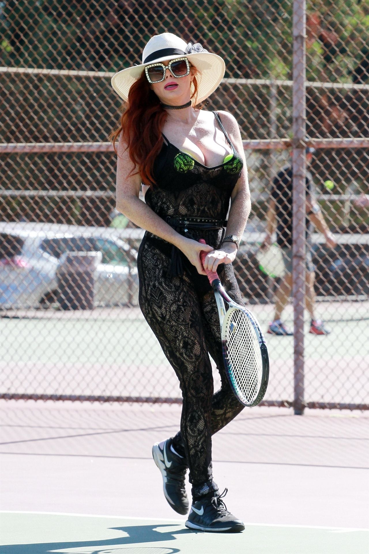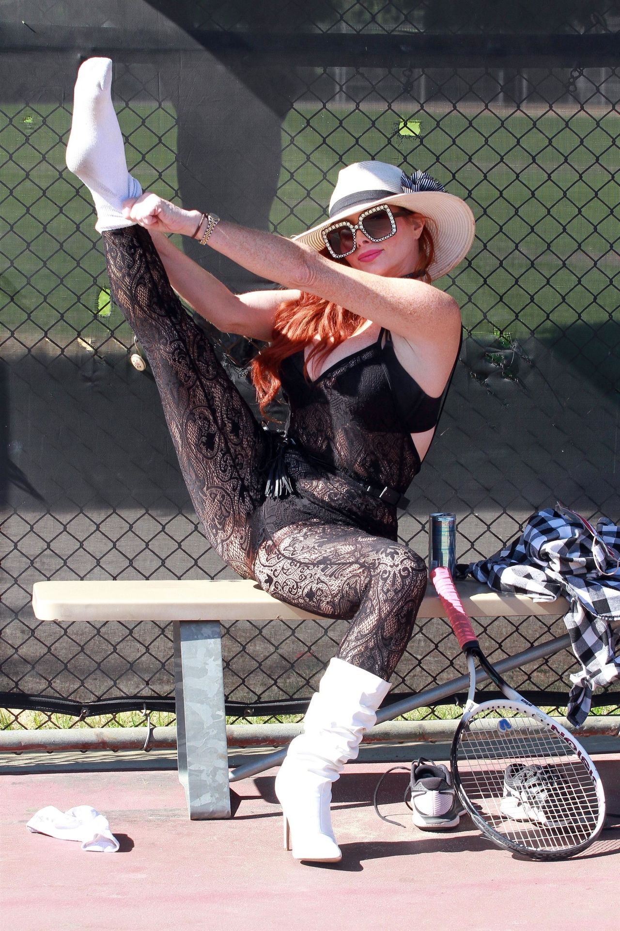 Phoebe Price è stata vista mentre cambiava scarpe e colpiva alcune palline da tennis sul campo indossando un body di pizzo – Los Angeles, 11/05/2020.