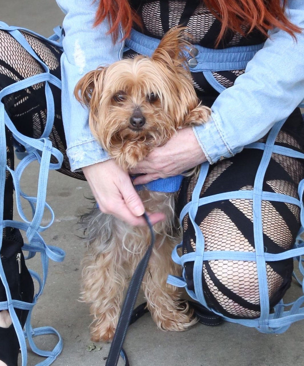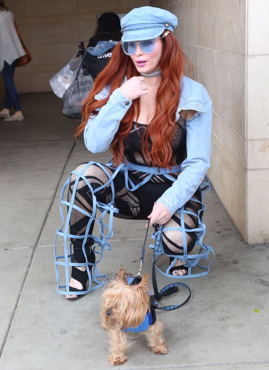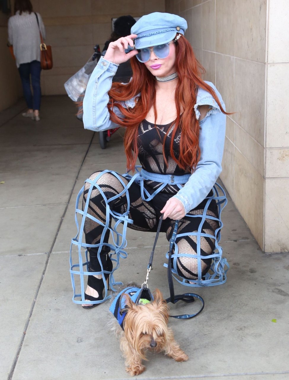 Phoebe Price mostra le sue curve mentre porta a spasso il suo cane a Beverly Hills, 01/03/2019. La modella indossava un outfit interessante – pantaloni blu con tagli a gabbia e lingerie nera a rete sotto, un berretto da giornalaio e occhiali da sole blu. Questa signora sa come posare!