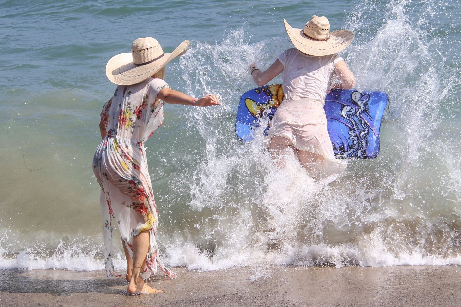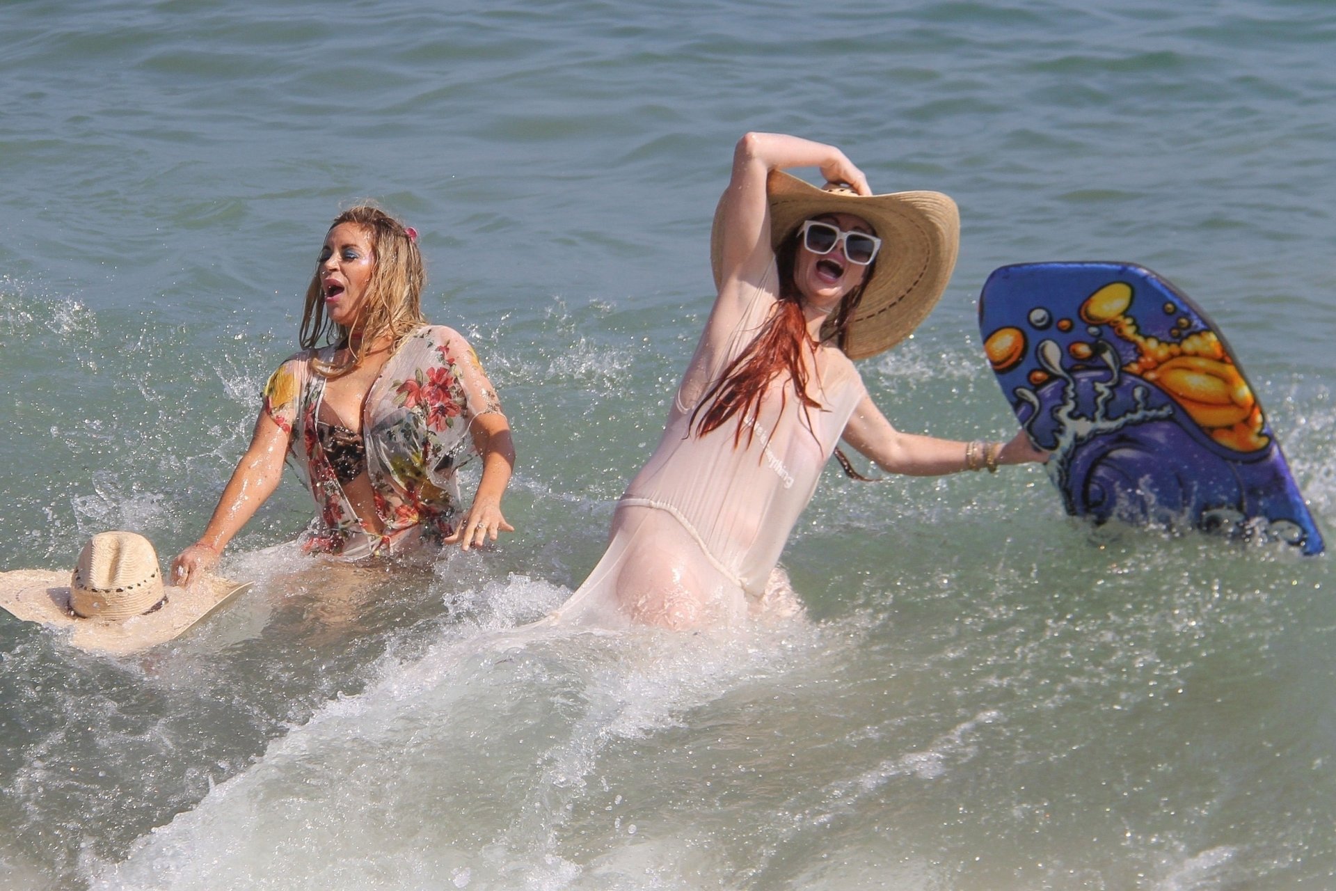 L’attrice Phoebe Price e la sua amica Marcela Iglesias si godono insieme una giornata pazza in spiaggia, 20/08/2018.
