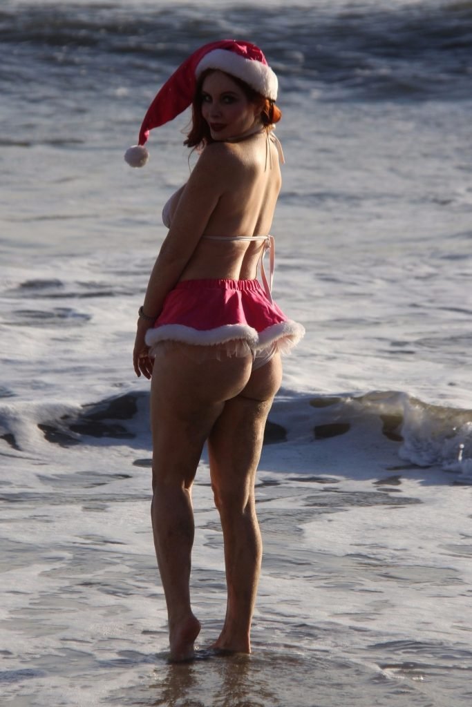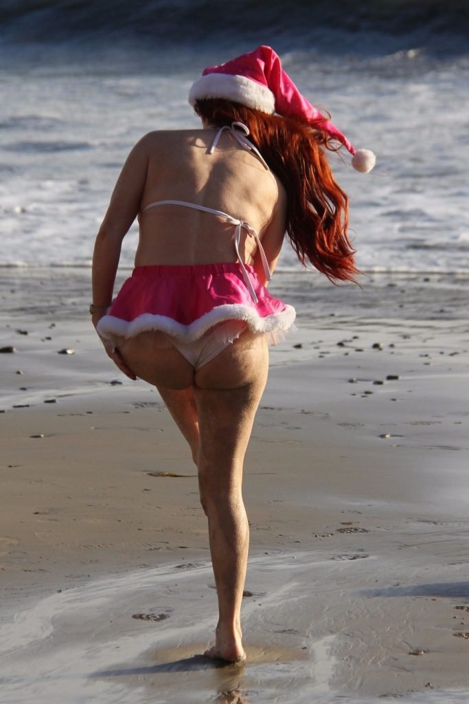 Sandy Clause! Phoebe Price arriva sulla spiaggia di Malibu con un cappello da Babbo Natale, 12/04/2017. Phoebe Price è un’attrice americana (Il Segreto di Botticelli, 2017). Età – 45.