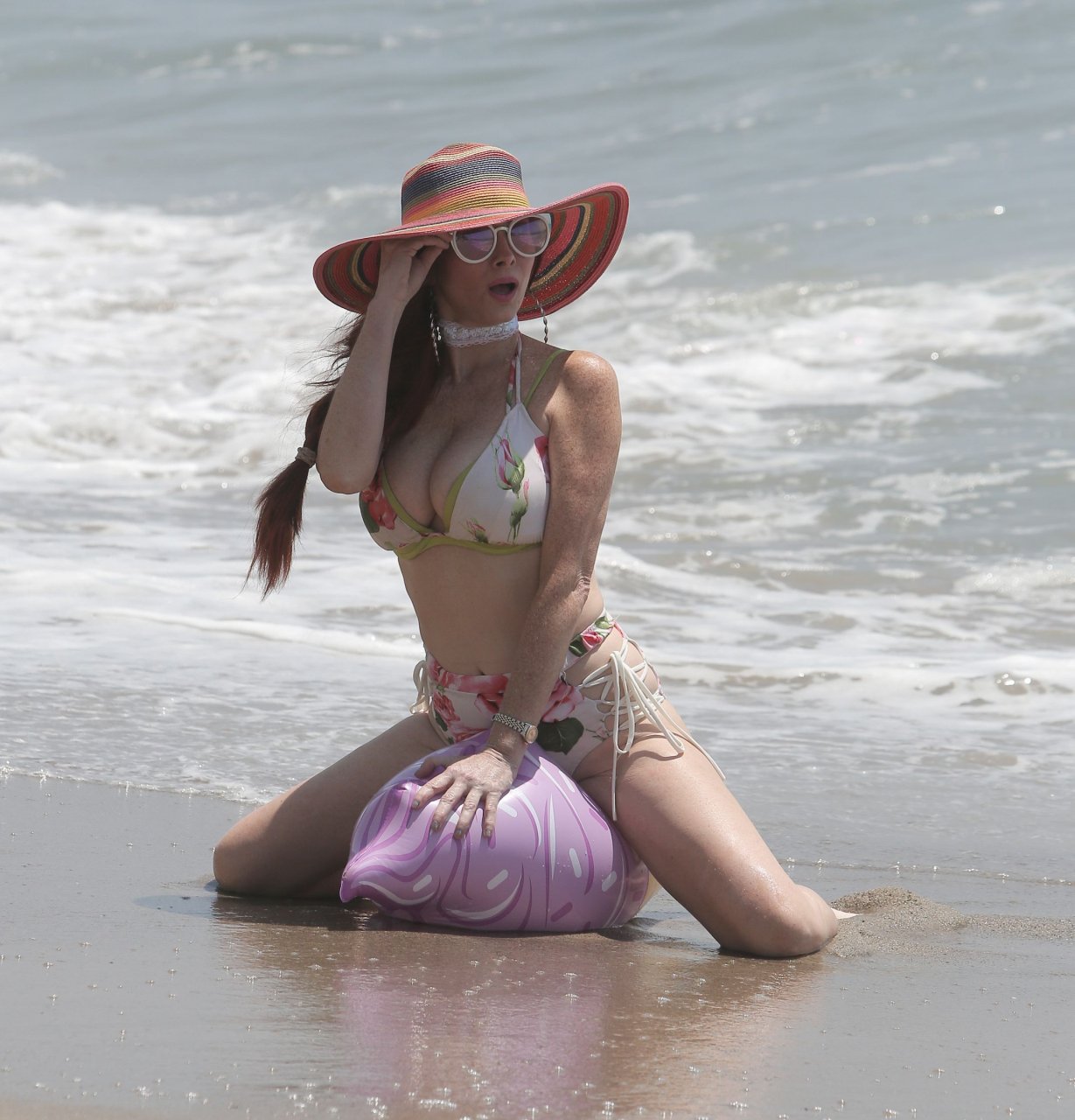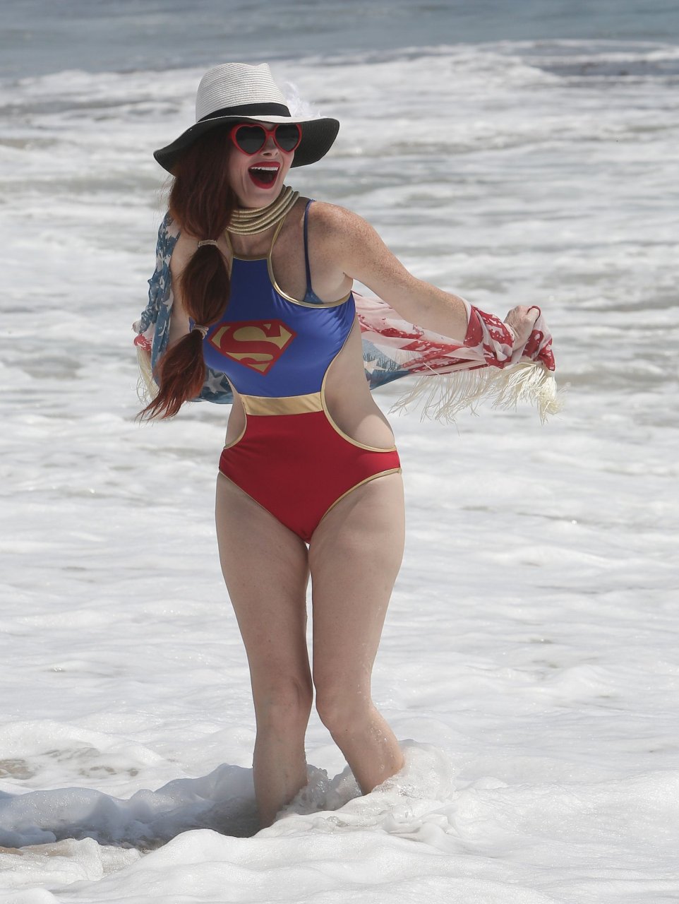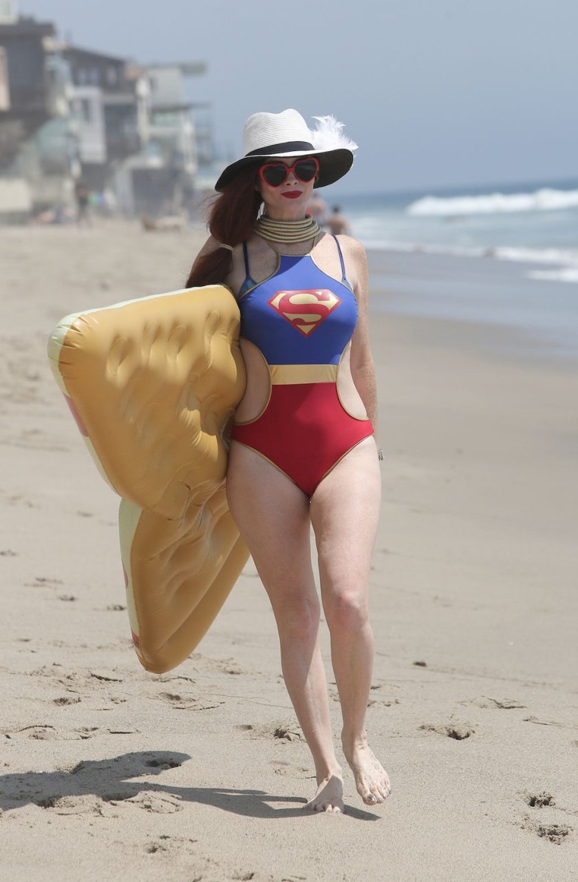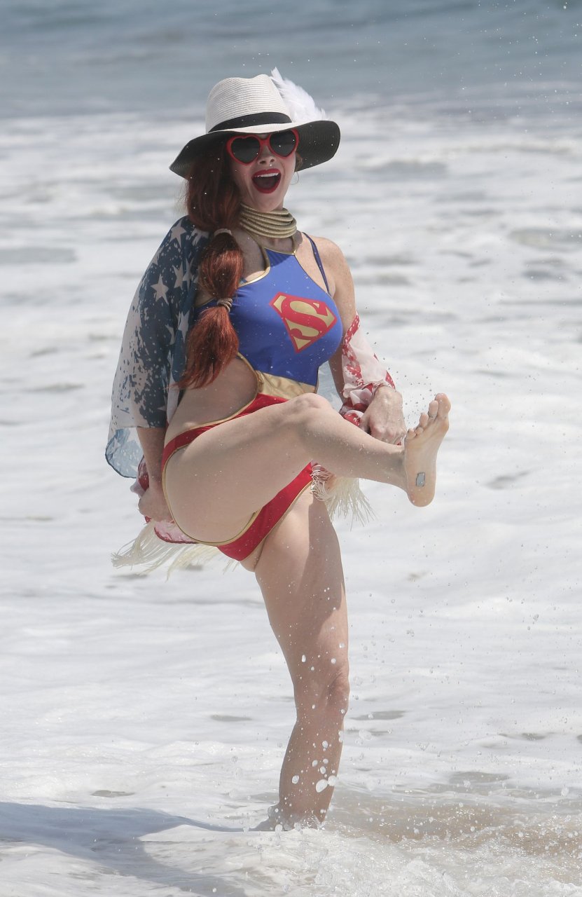 Phoebe Price ha subito un malfunzionamento del guardaroba sulla spiaggia di Malibu, 21/08/2016. Phoebe Price è un’attrice dell’Alabama. Età: 43 (27 settembre 1972).