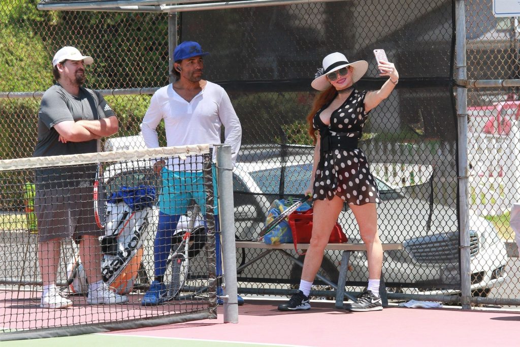 Phoebe Price è vista con un altro allenatore di tennis a Los Angeles, 23/07/2020. La star del reality riceve aiuto dall’allenatore Santiago insieme a un altro studente.
