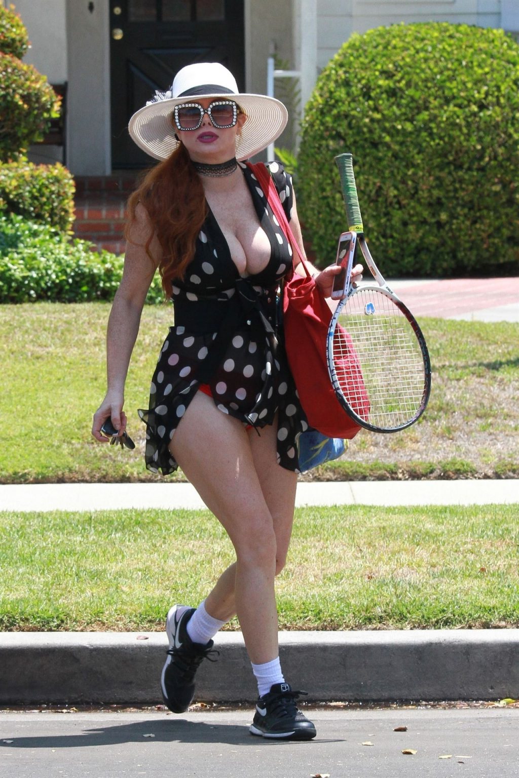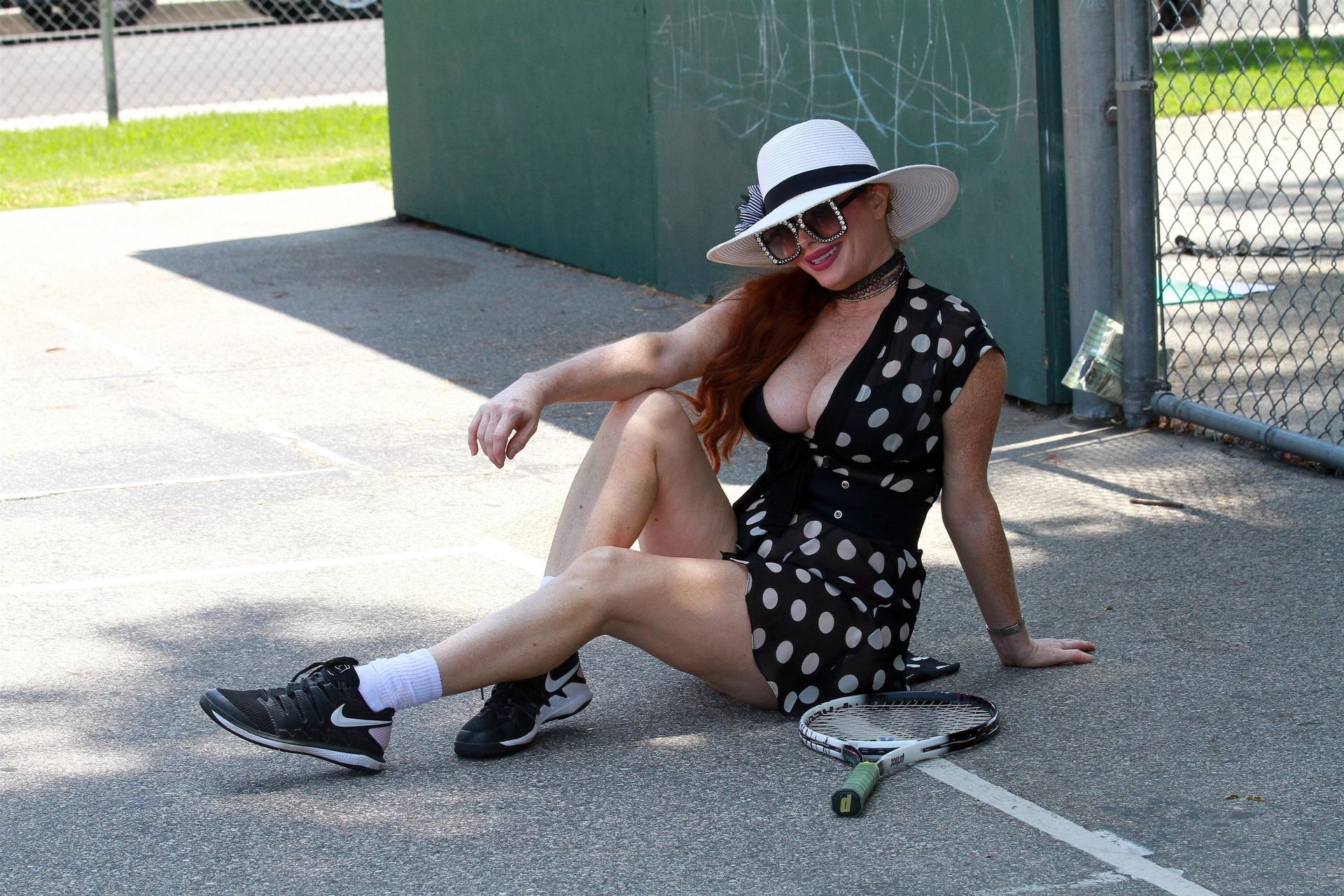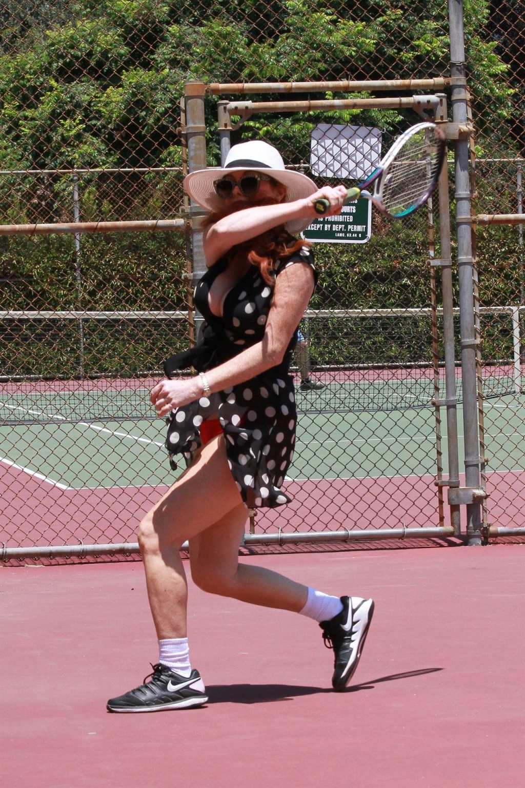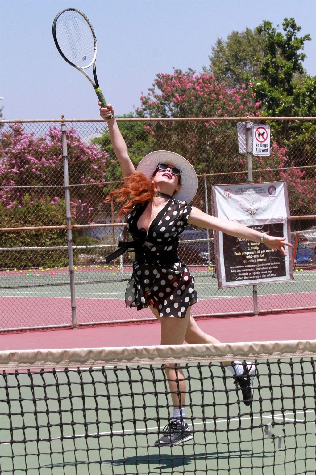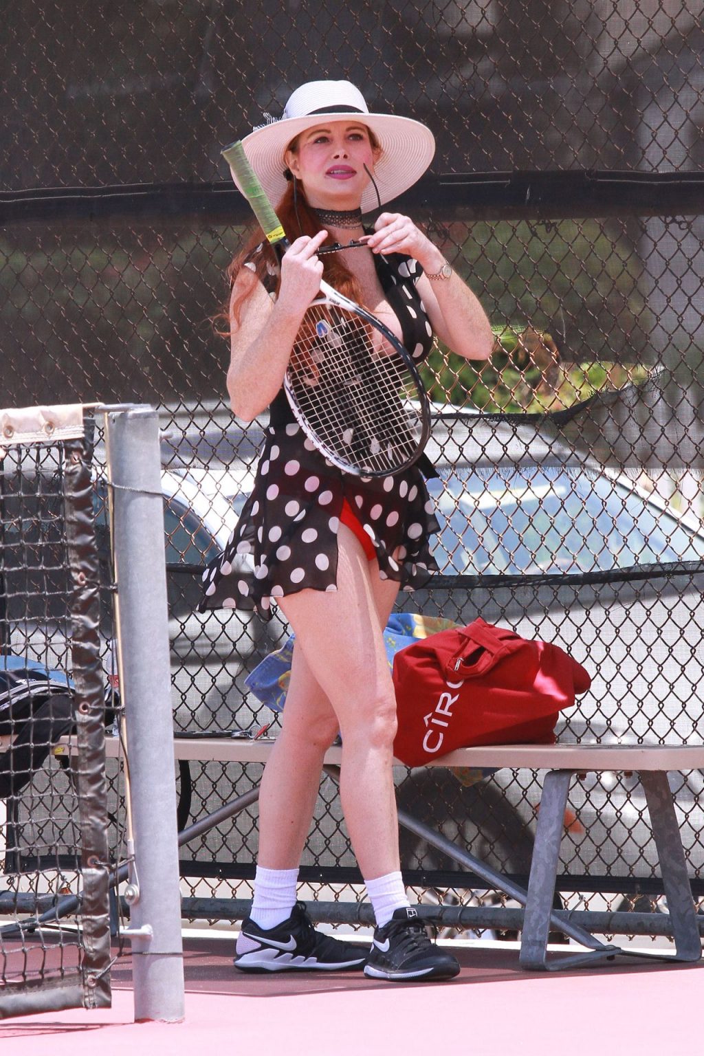 L’attrice sfoggia un nuovo outfit per i campi e un bel décolleté. Si diverte a colpire le palline e si allena.