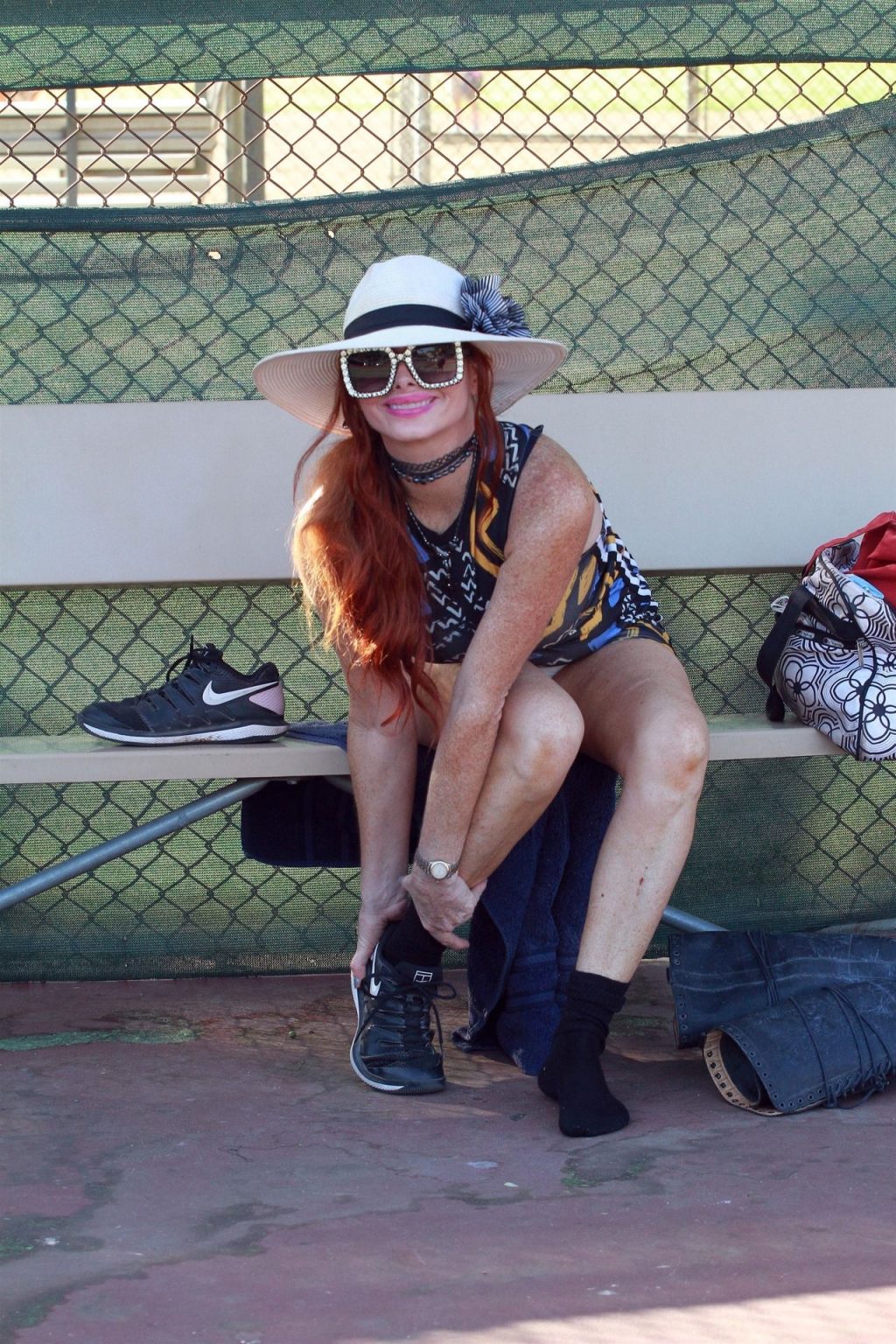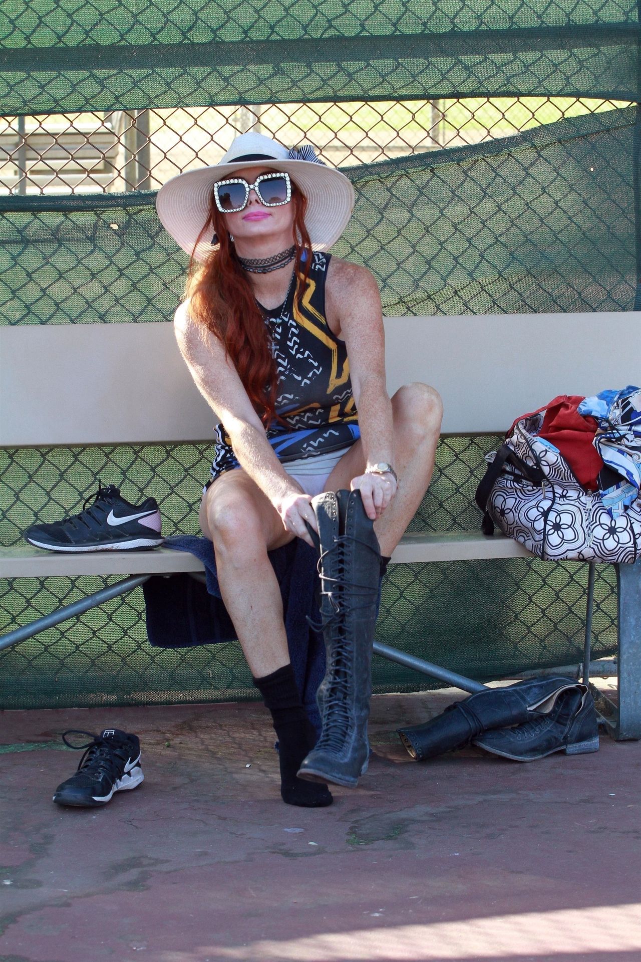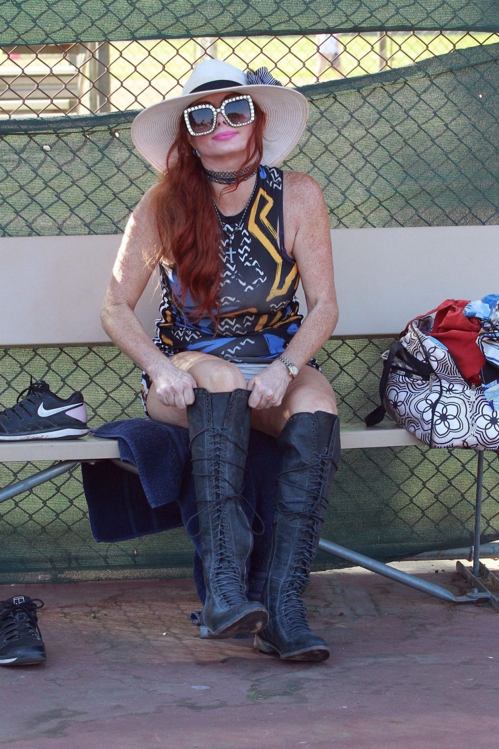 Attrice Phoebe Price è vista sui campi mentre si toglie gli stivali per giocare a tennis – Los Angeles, 14/11/2020.