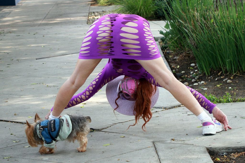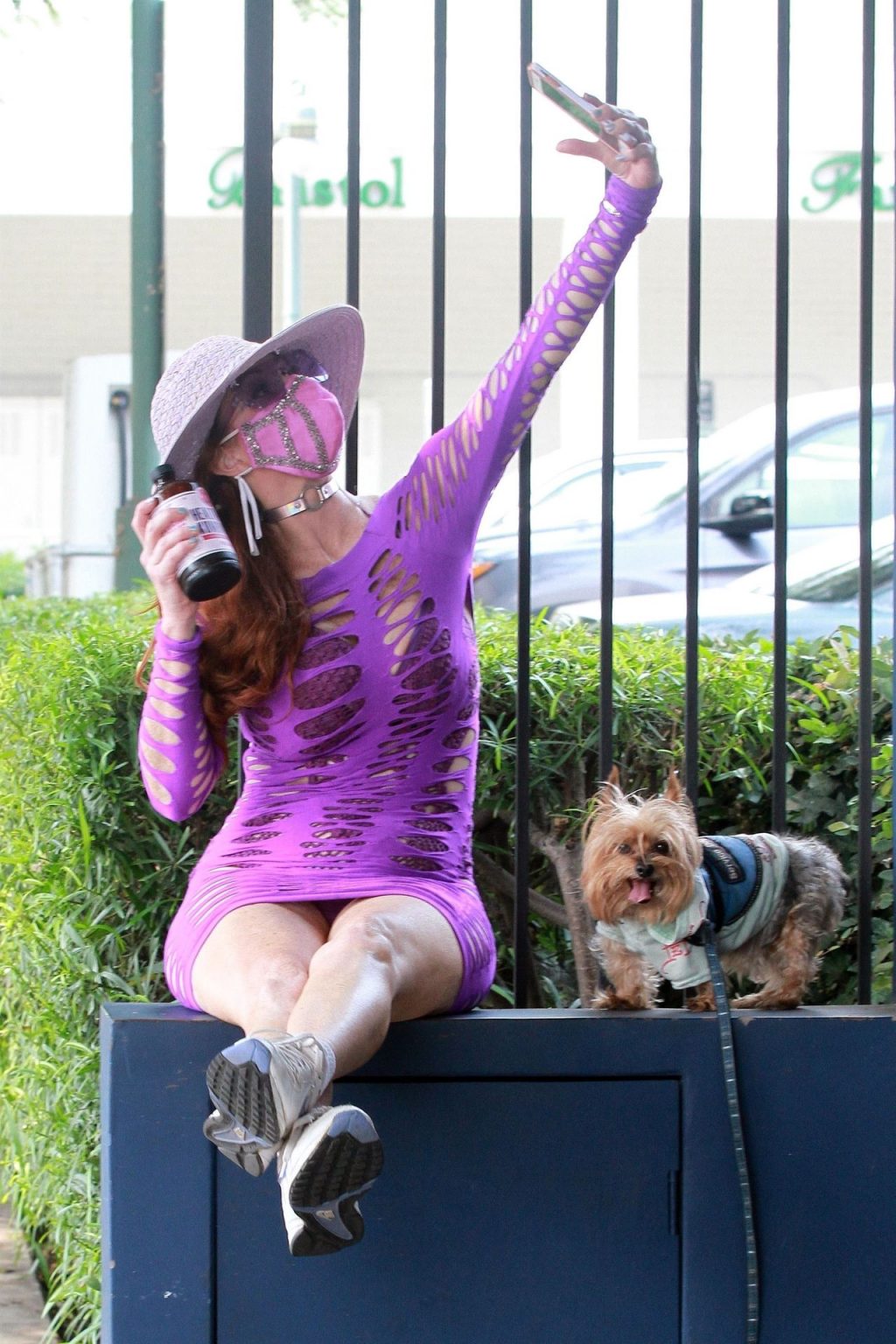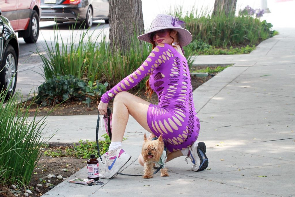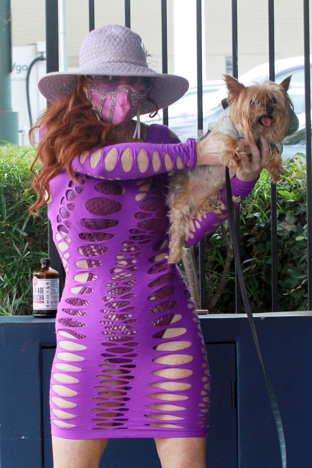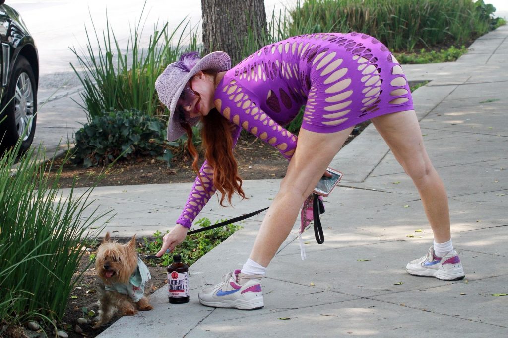 L’attrice Phoebe Price è stata vista mentre porta a spasso il suo cane e beve del Kombucha a Los Angeles, 25/08/2020. Indossa un completo viola che non lascia molto all’immaginazione.
