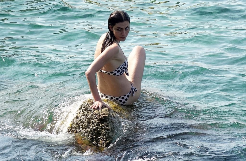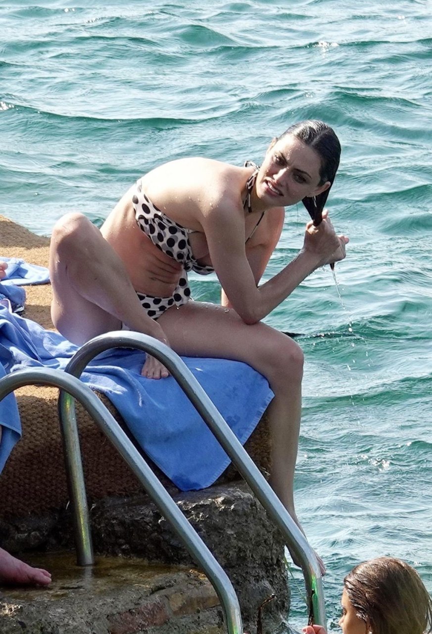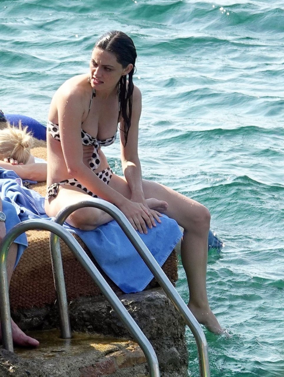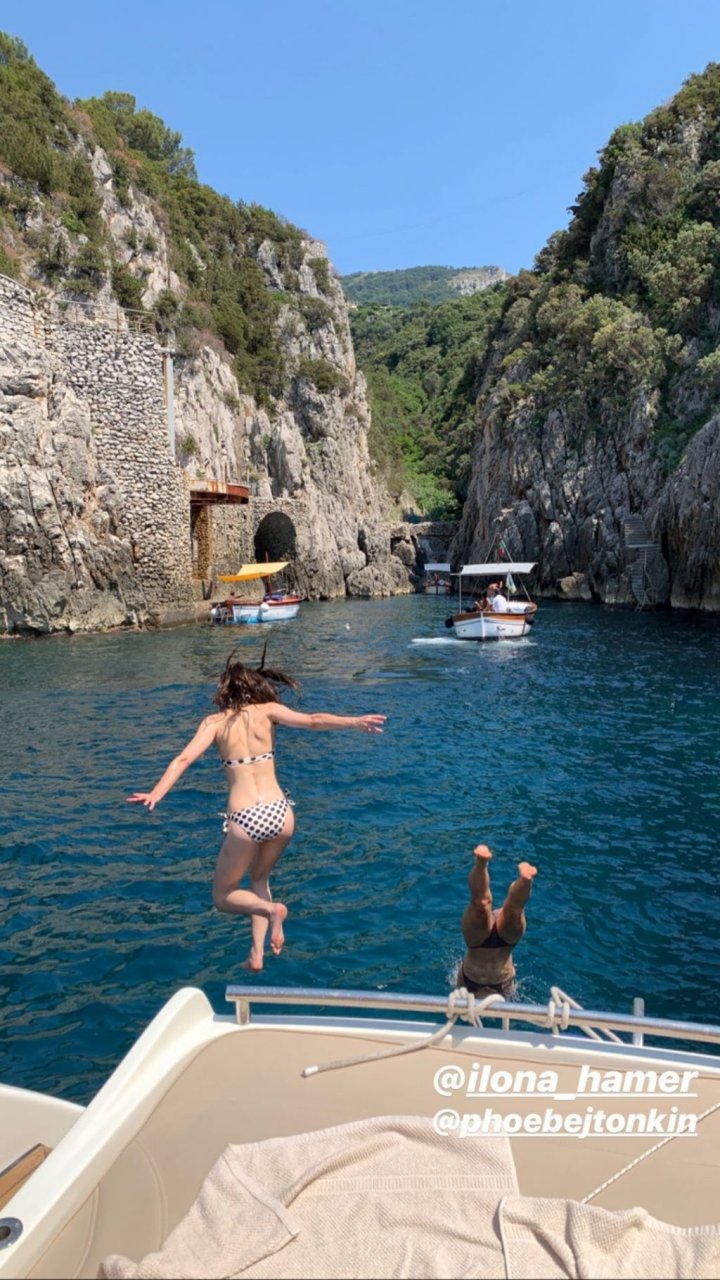 L’attrice e modella australiana di “Vampire Diaries” Phoebe Tonkin si gode un tuffo in mare con amici durante una vacanza a Capri, 29/06/2019.