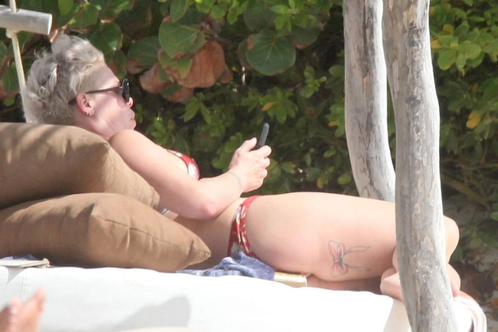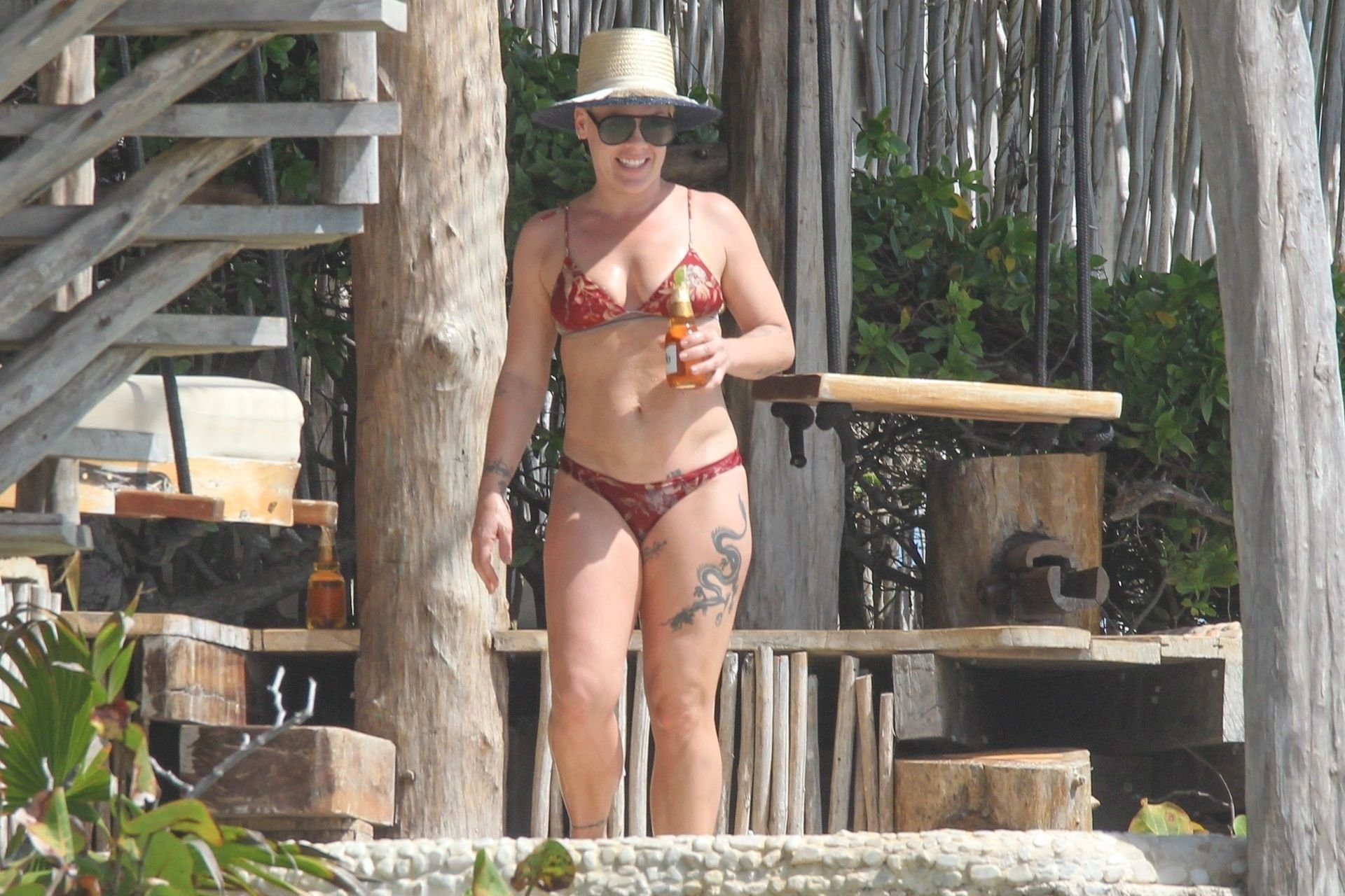 Singer P!nk e Carey Hart si stanno godendo la bella vita bevendo birra e prendendo il sole a Tulum, Messico, 25/02/2019.