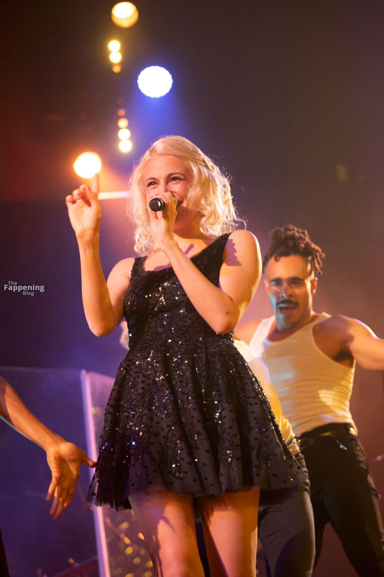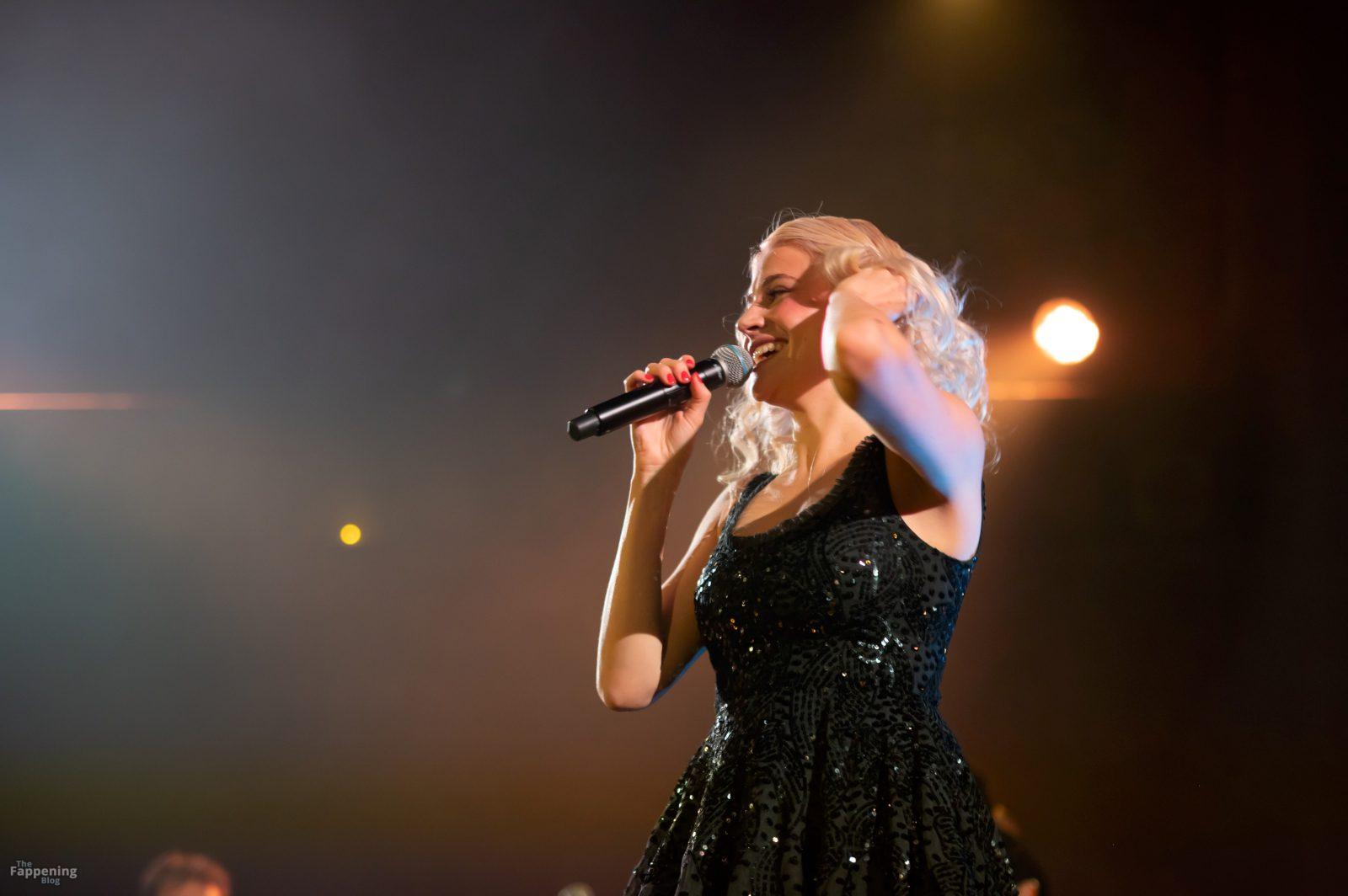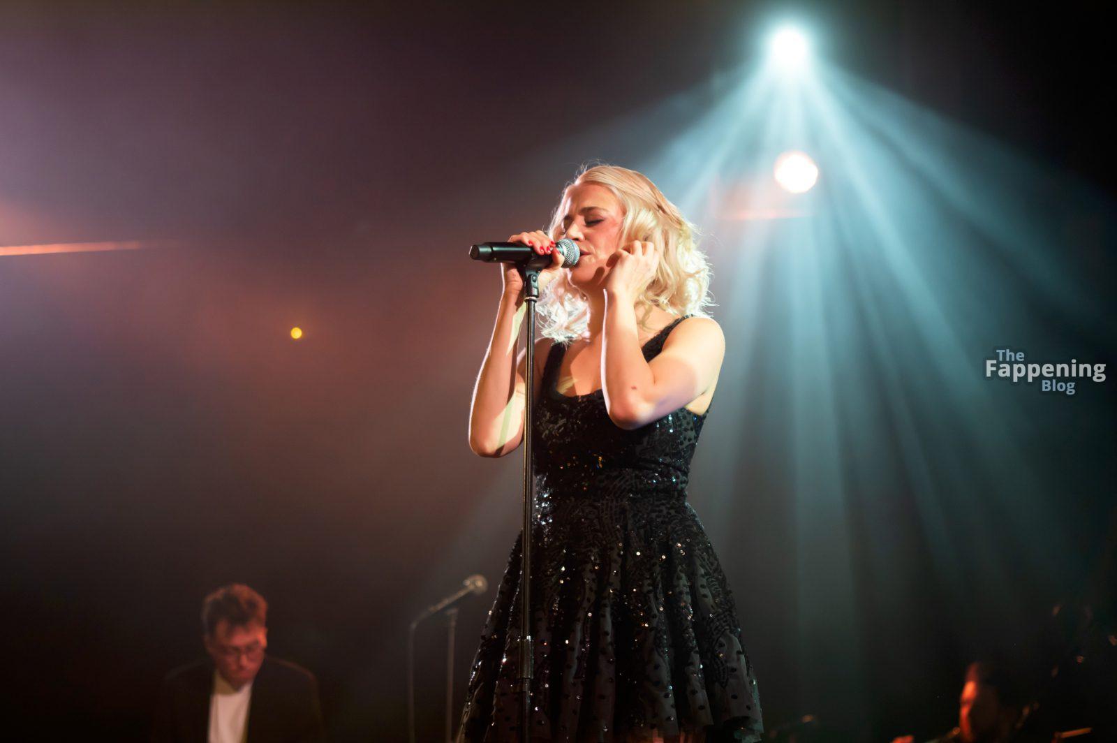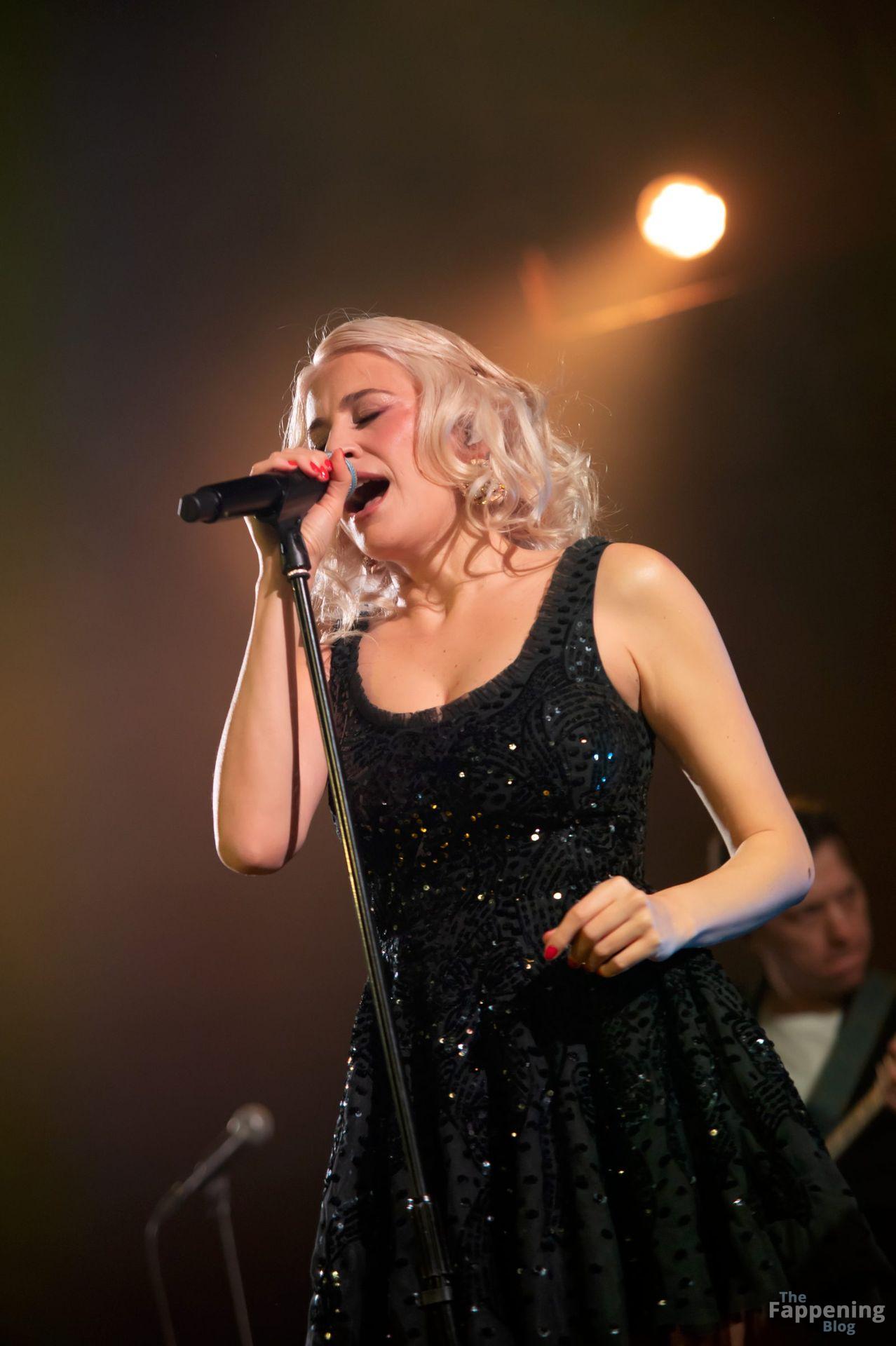Pixie Lott è stata fotografata al concerto di Londra, indossando un mini abito nero di paillettes, mettendo in mostra le gambe e il décolleté.