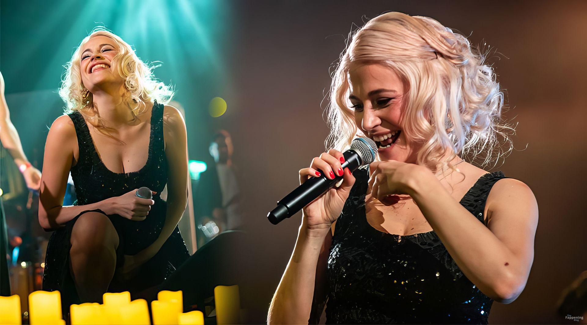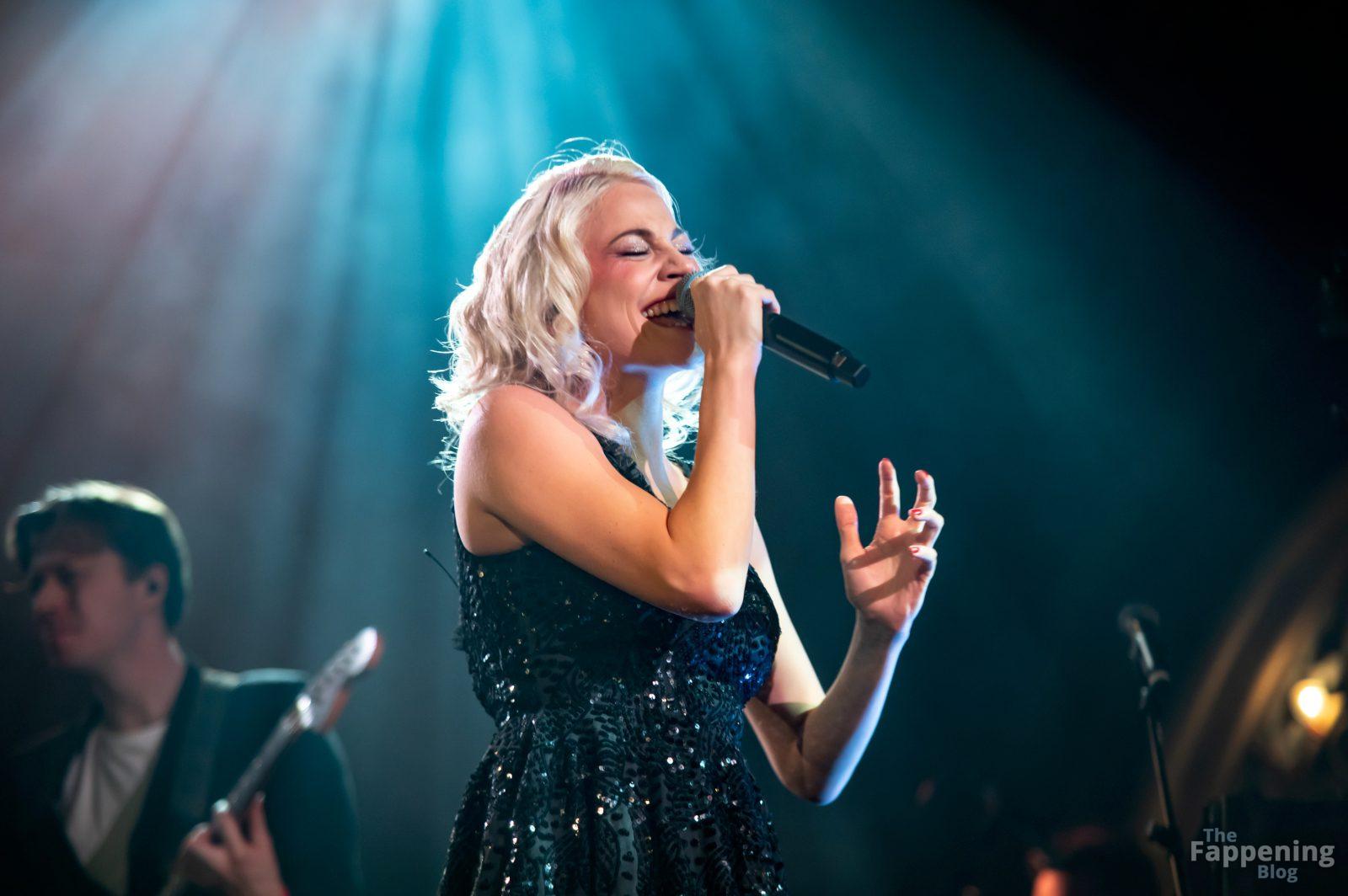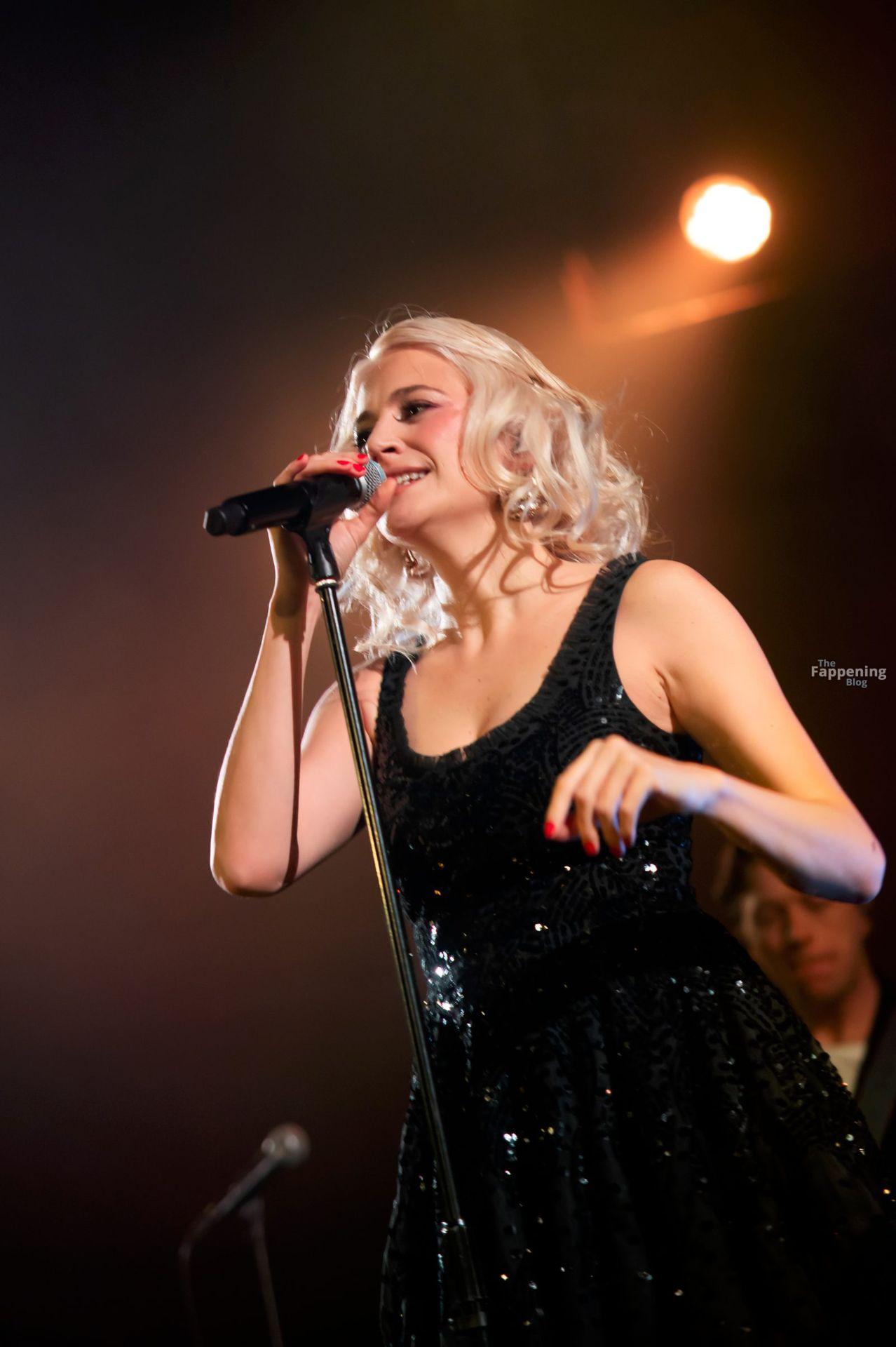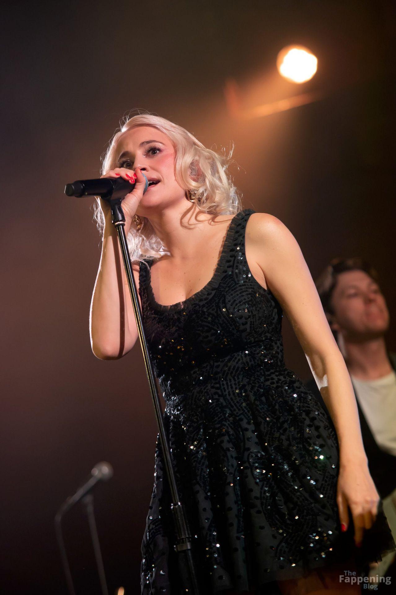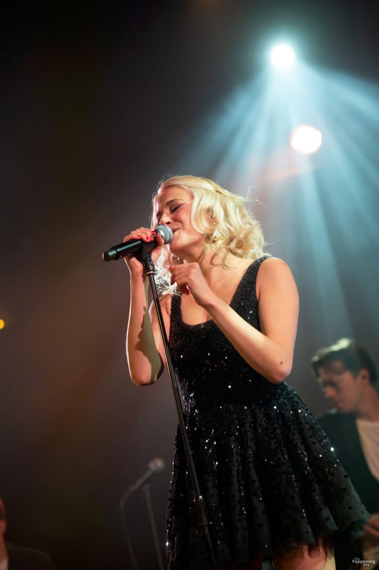 Pixie Lott è stata fotografata al concerto di Londra, indossando un mini abito nero di paillettes, mettendo in mostra le gambe e il décolleté.