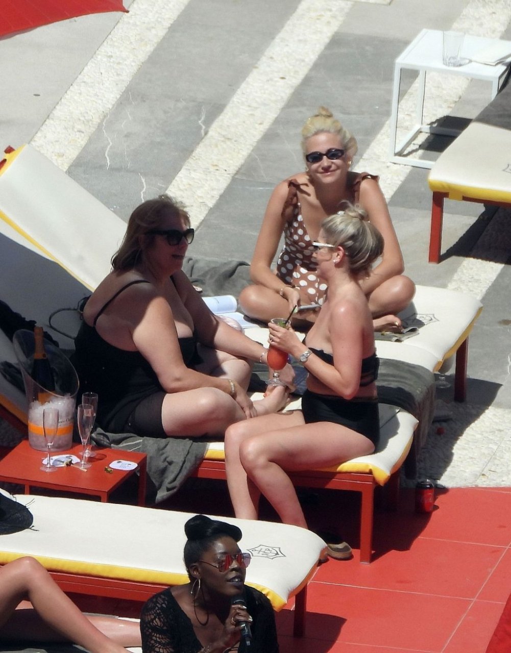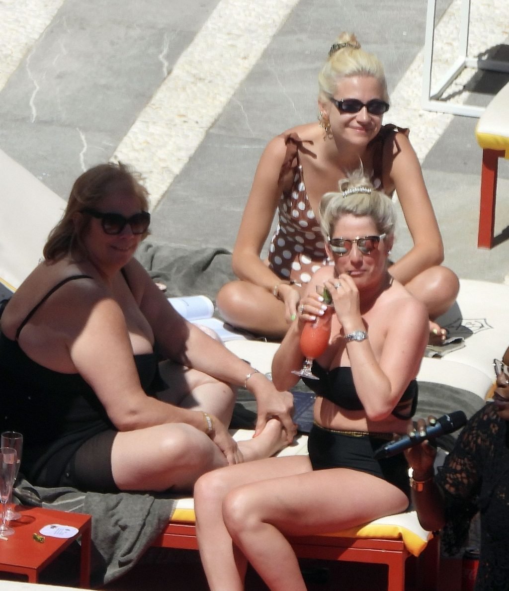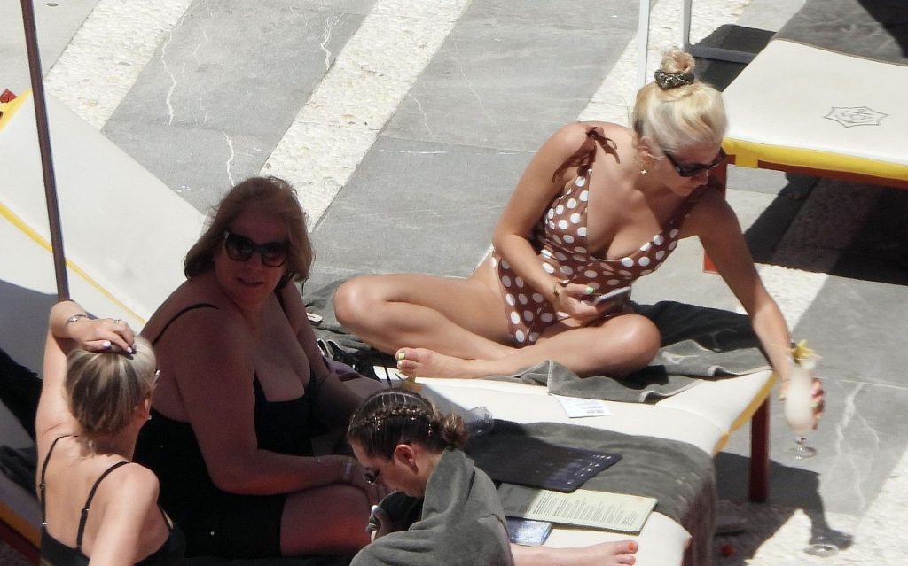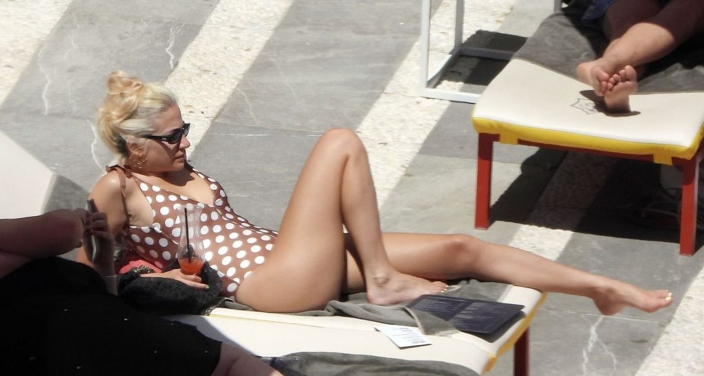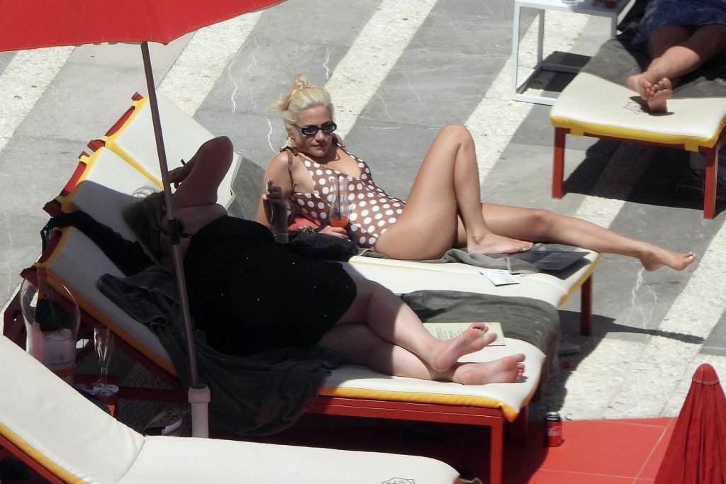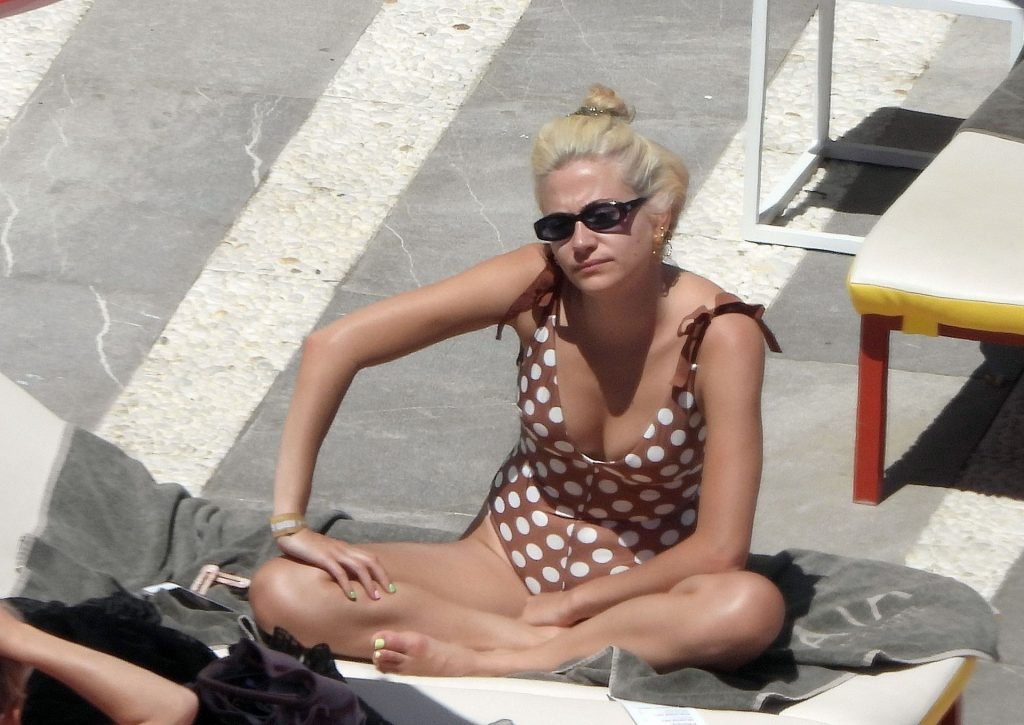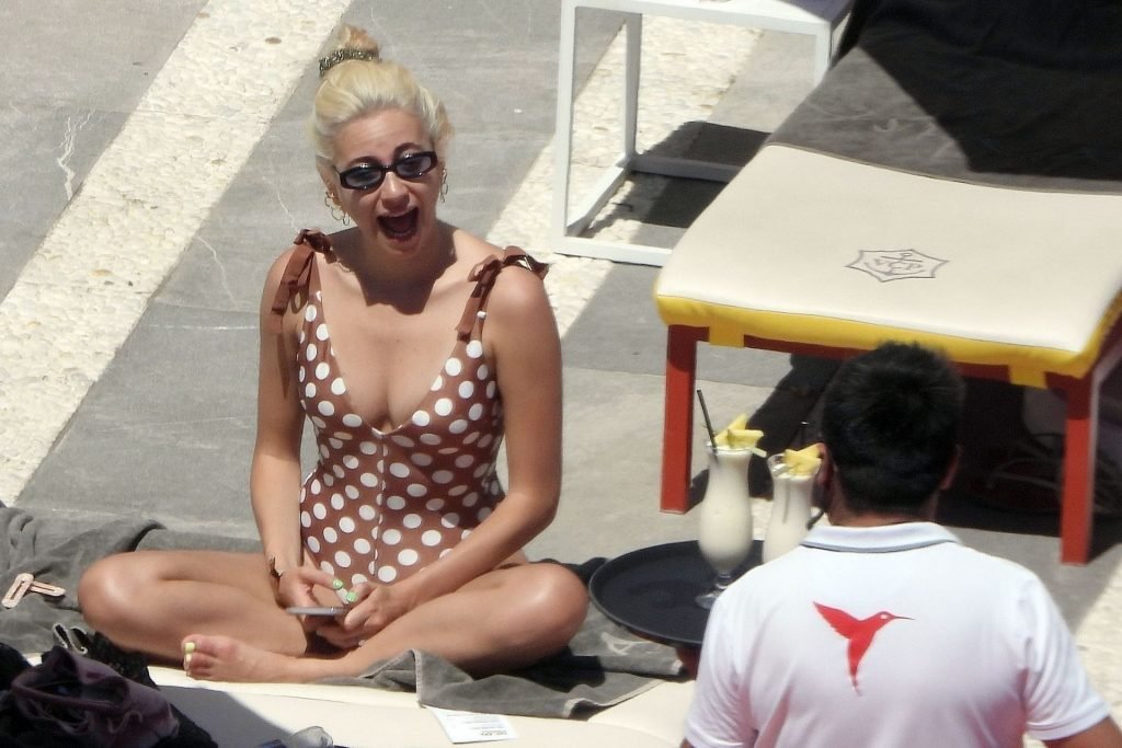 La cantante Pixie Lott appare sensazionale in un costume da bagno a pois mentre si rilassa a bordo piscina a Ibiza, 31/05/2019. La cantante è stata fotografata mentre si rilassava su una sdraio mentre guardava un cantante esibirsi sorseggiando un cocktail!