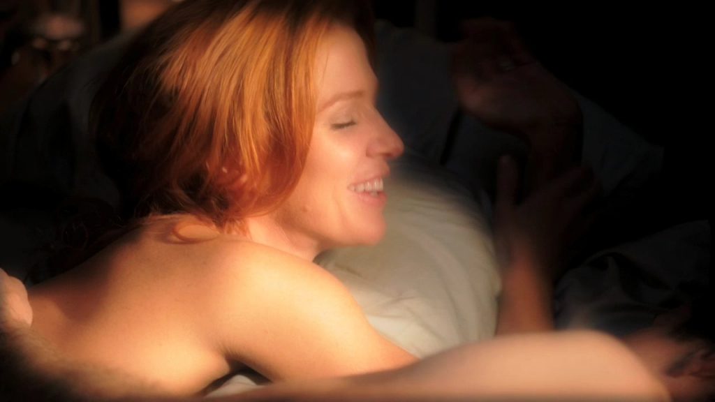 Here is Poppy Montgomery’s nude (covered) and sexy video compilation of her most important roles in “Without a Trace” and “Unforgettable.” She and the topless guy are in bed, hugging and kissing. They have passionate sex because her phone rings several times and stops the intimate act of fucking.