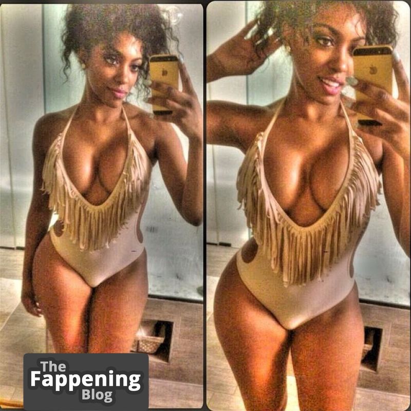 La collezione fotografica di Porsha Williams presenta contenuti espliciti, mostrando il suo seno scoperto, il décolleté voluttuoso senza reggiseno, i glutei esposti e il suo corpo snello da modella in bikini a perizoma rivelatori.