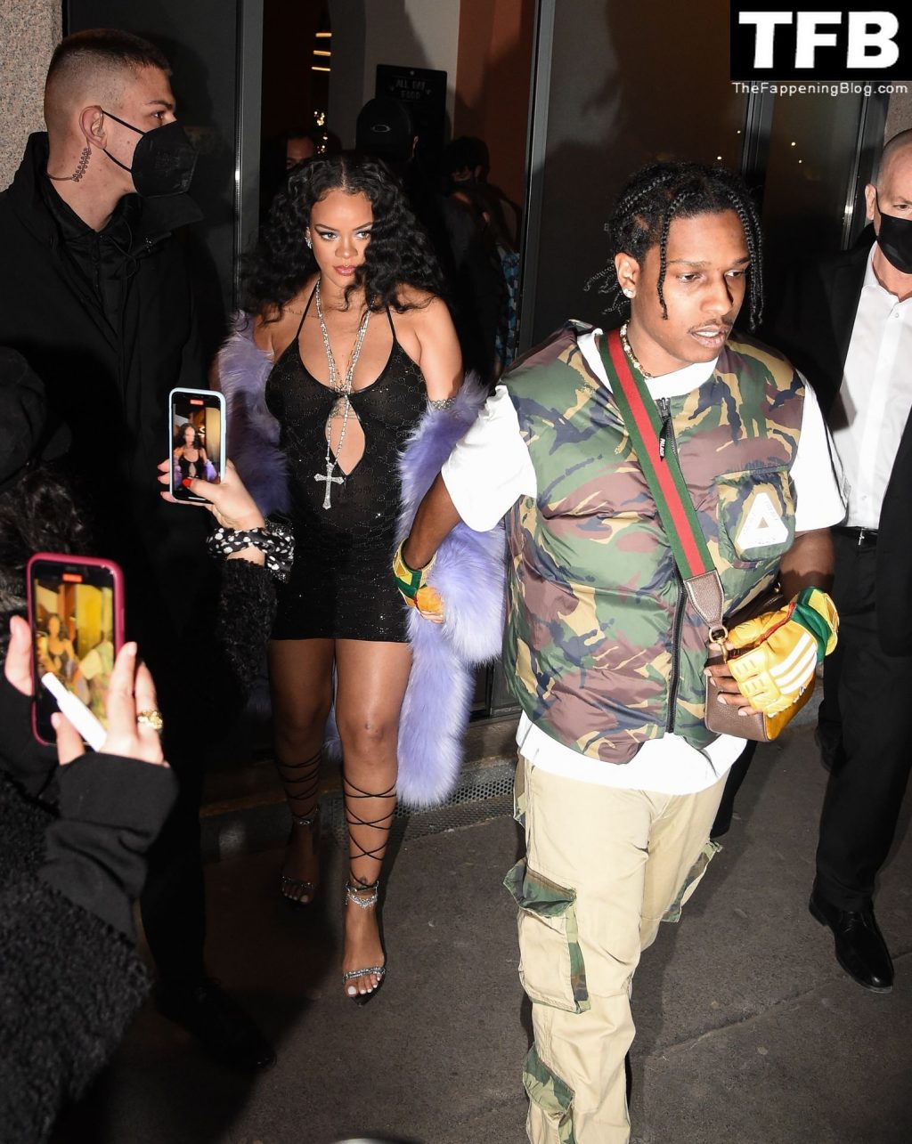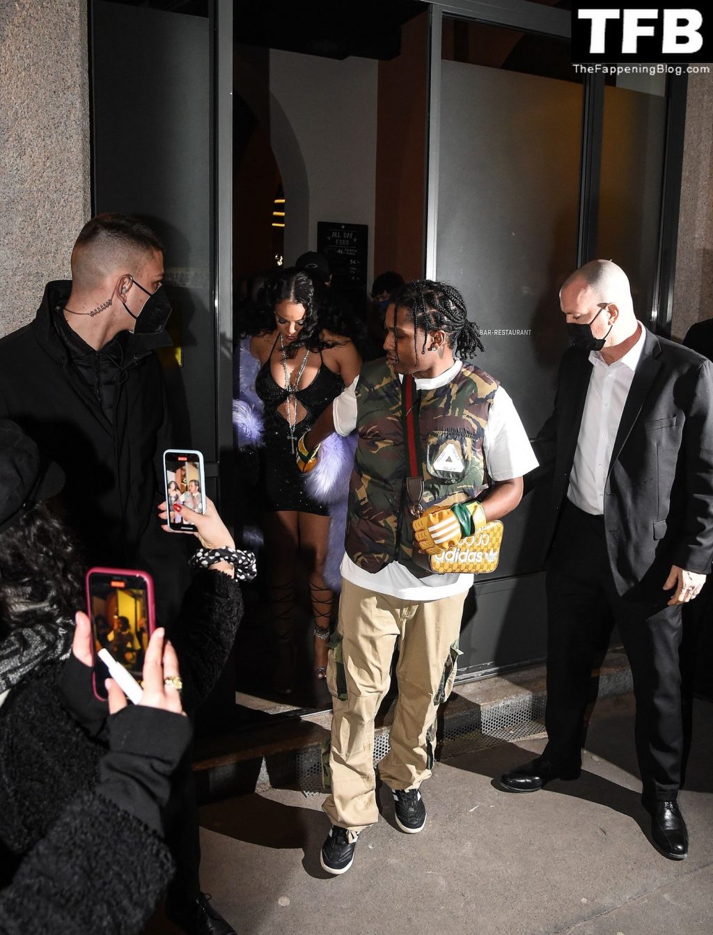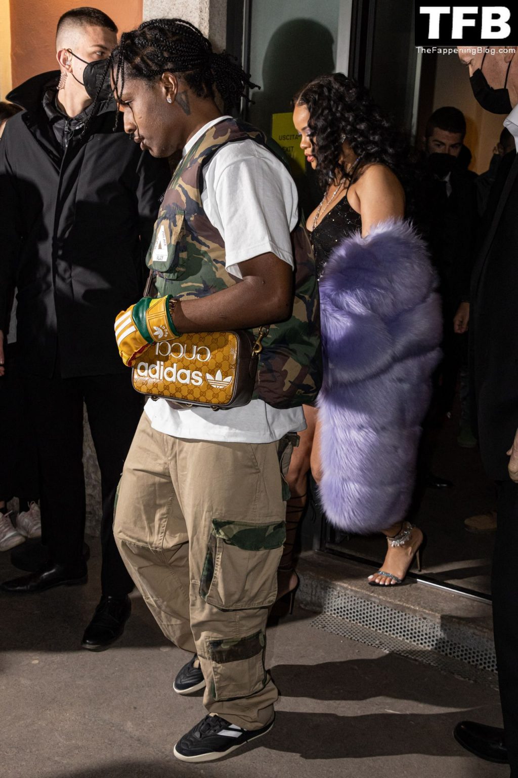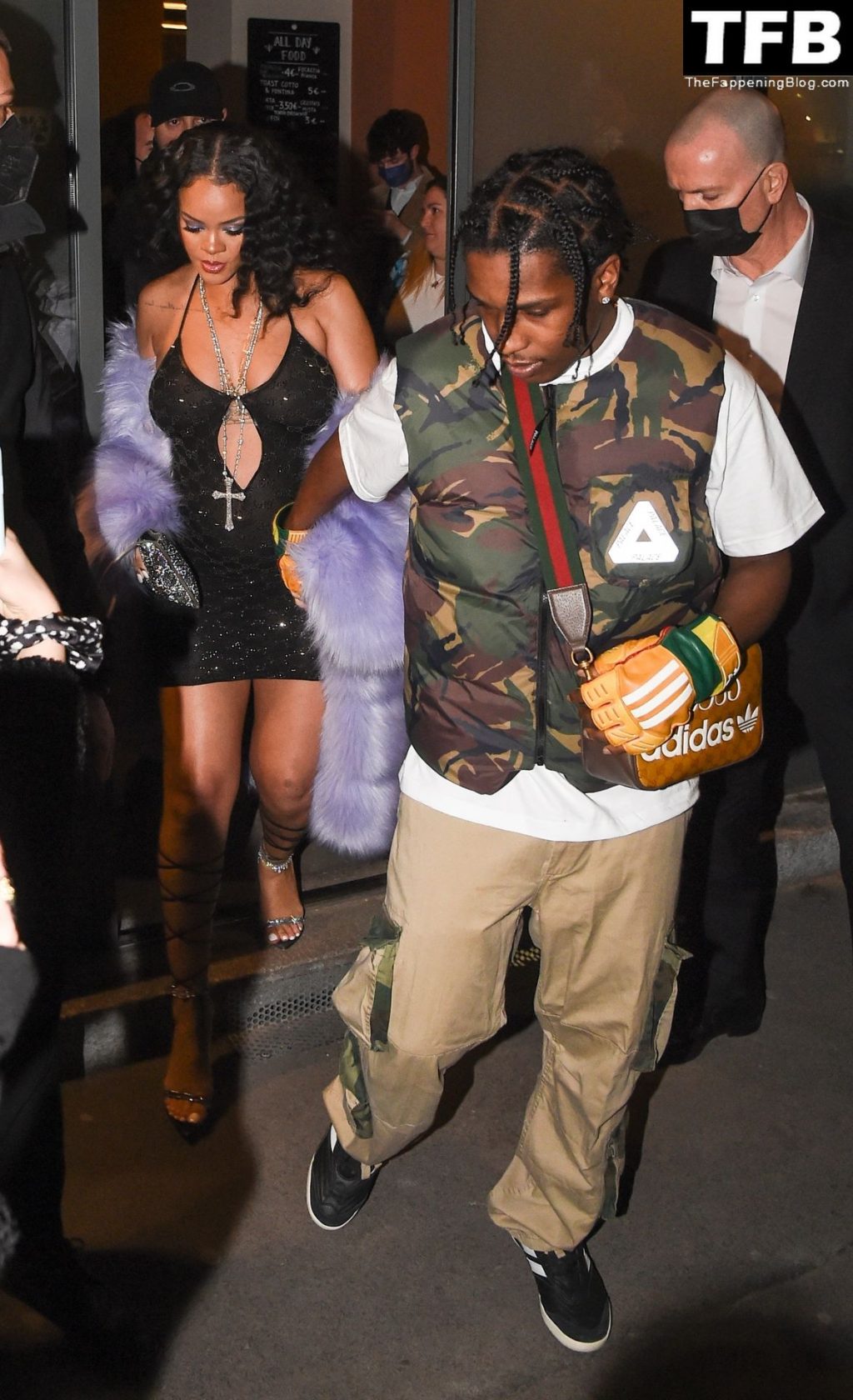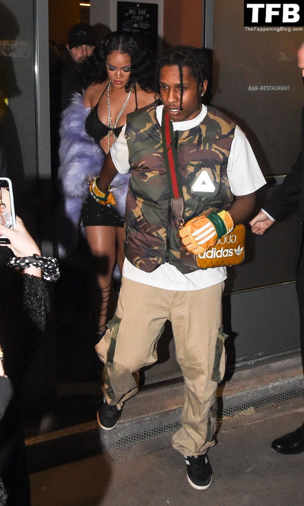 Rihanna incinta e il rapper A$AP Rocky lasciano il loro hotel e partecipano al Gucci Fashion Show After Party a Milano, 25/02/2022.