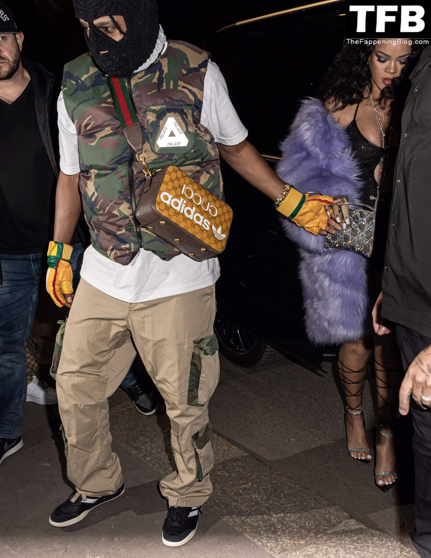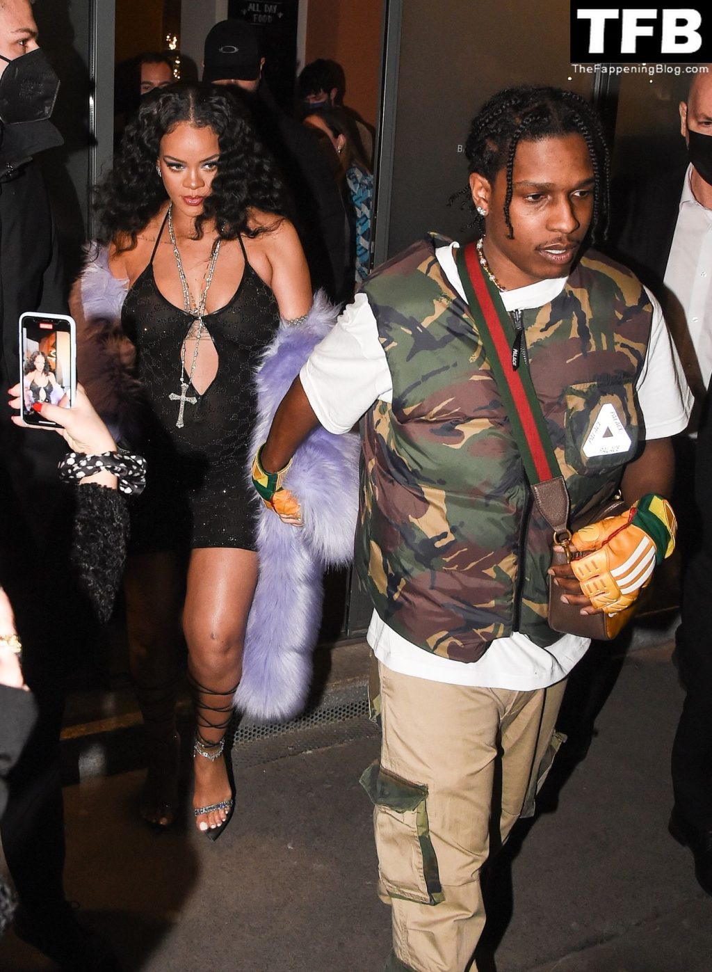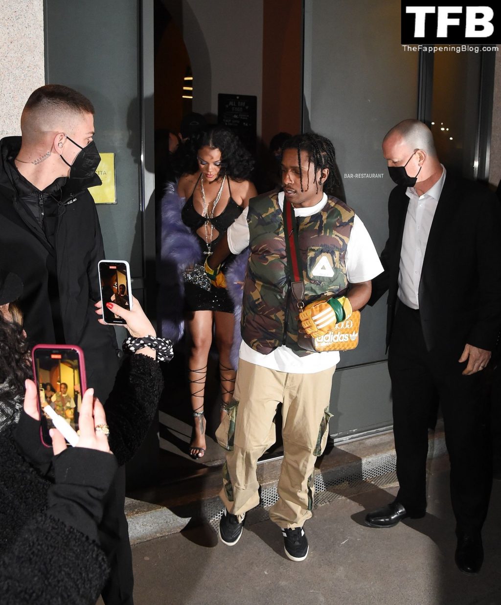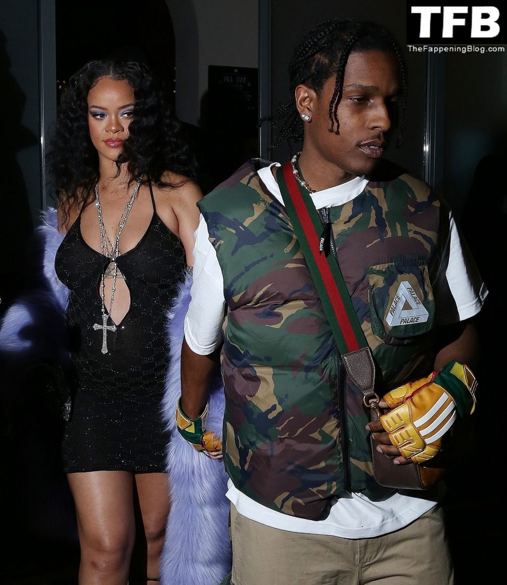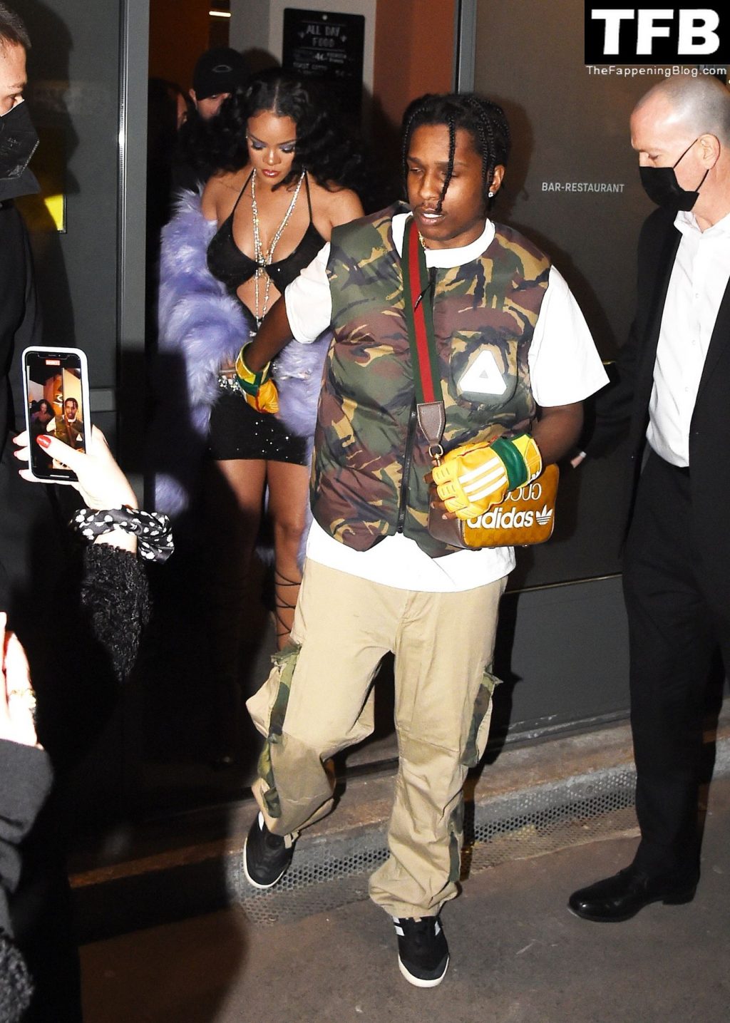 Rihanna incinta e il rapper A$AP Rocky lasciano il loro hotel e partecipano al Gucci Fashion Show After Party a Milano, 25/02/2022.