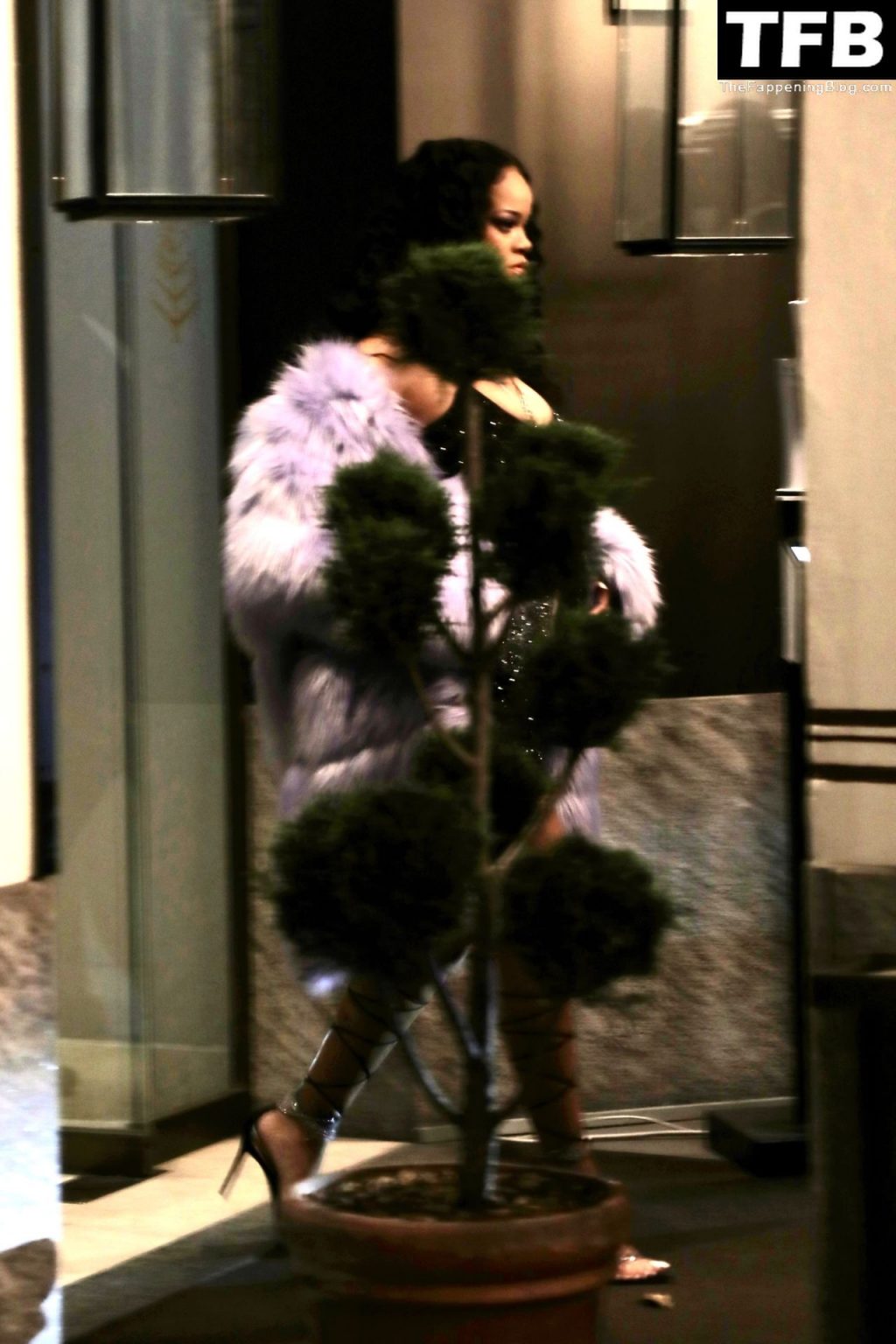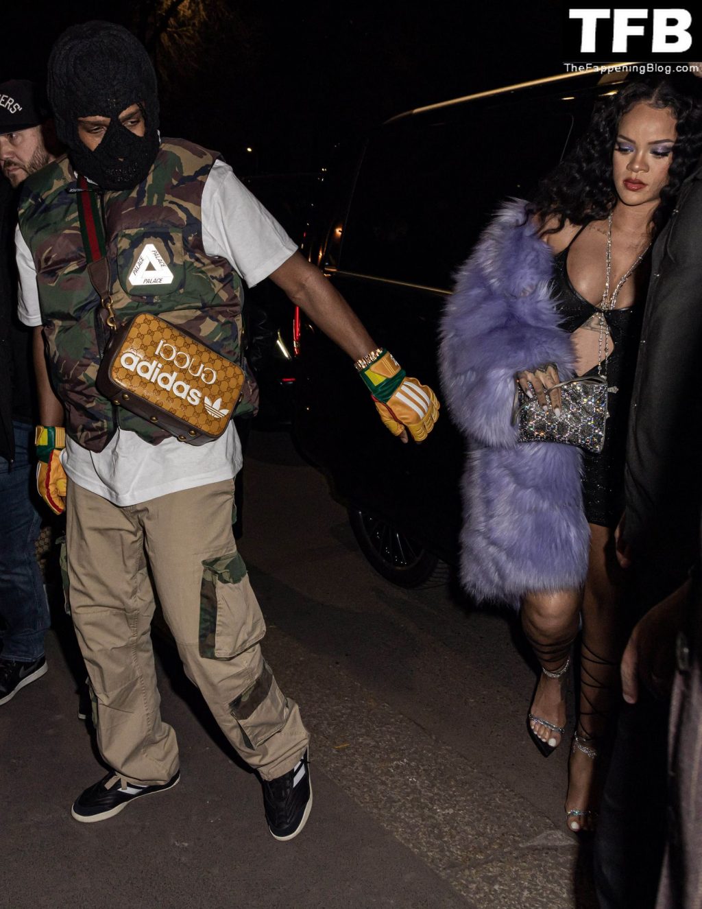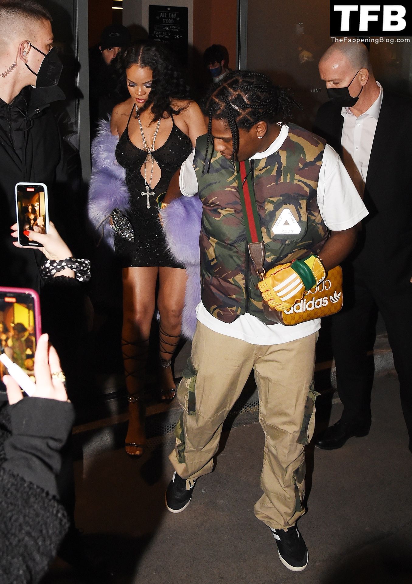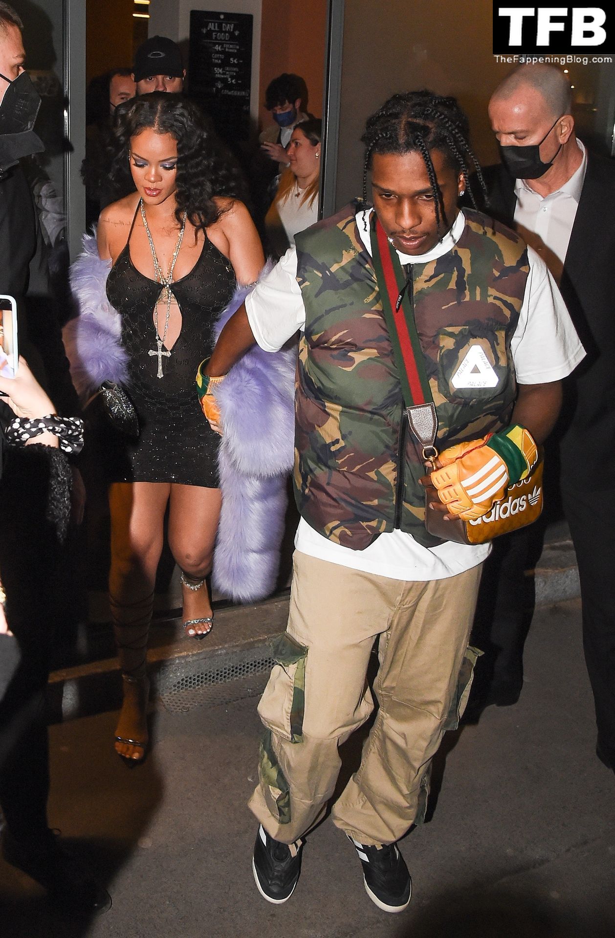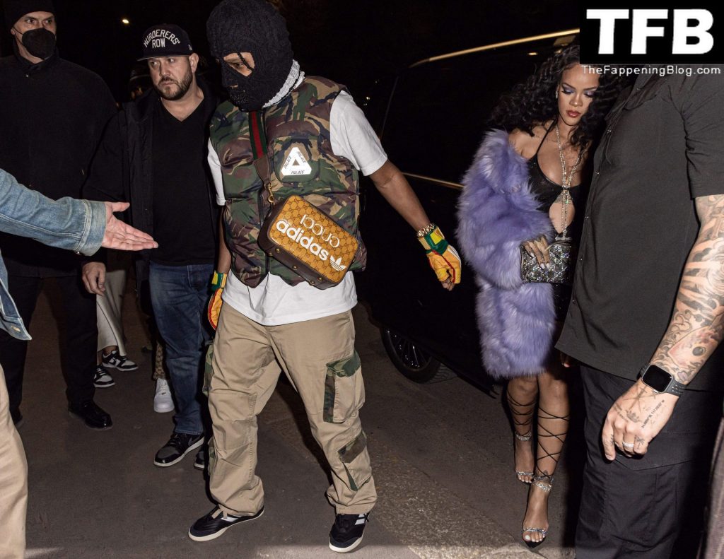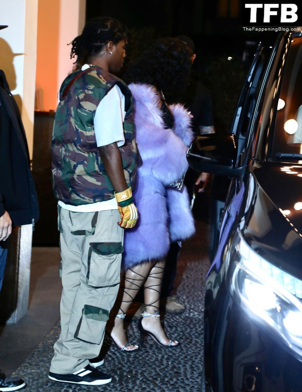 Rihanna incinta e il rapper A$AP Rocky lasciano il loro hotel e partecipano al Gucci Fashion Show After Party a Milano, 25/02/2022.
