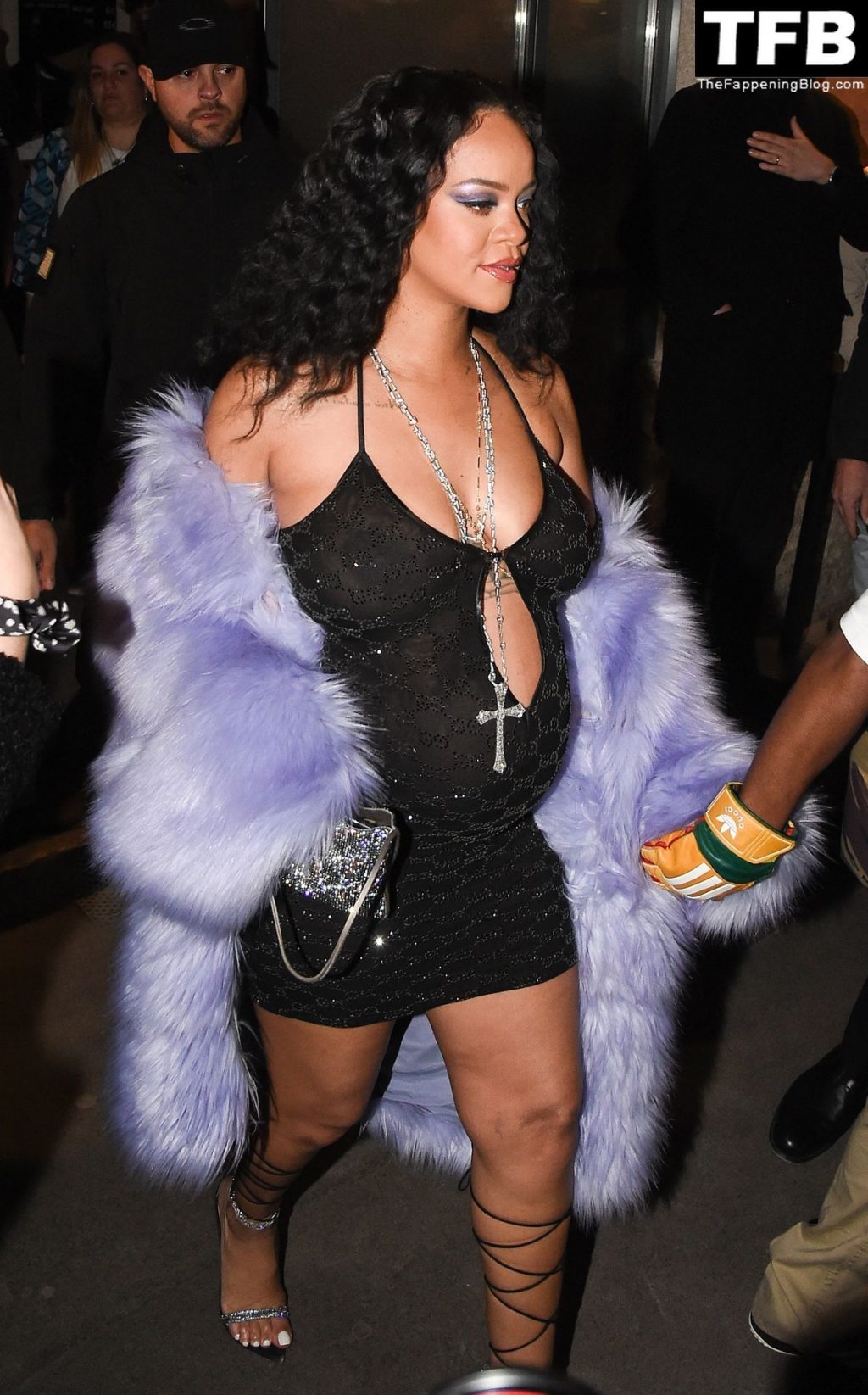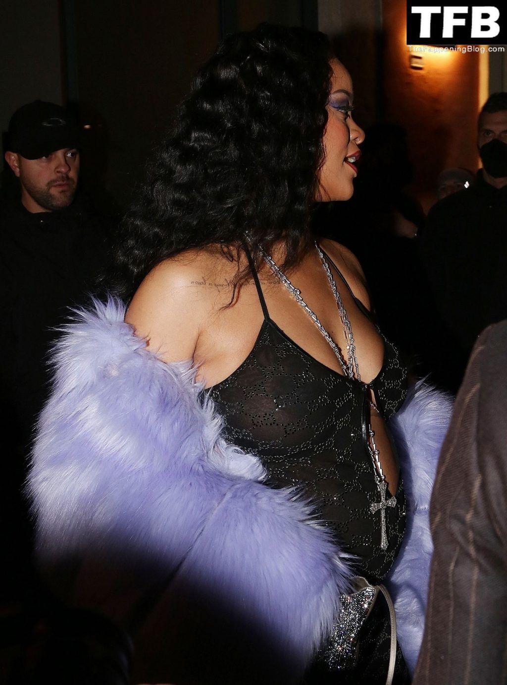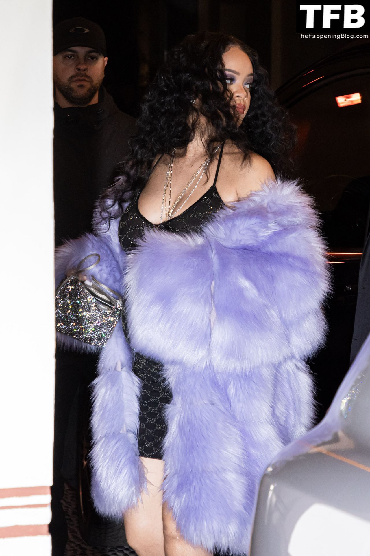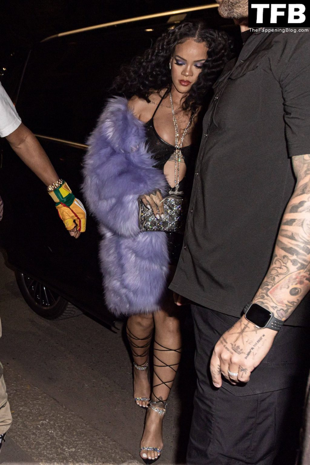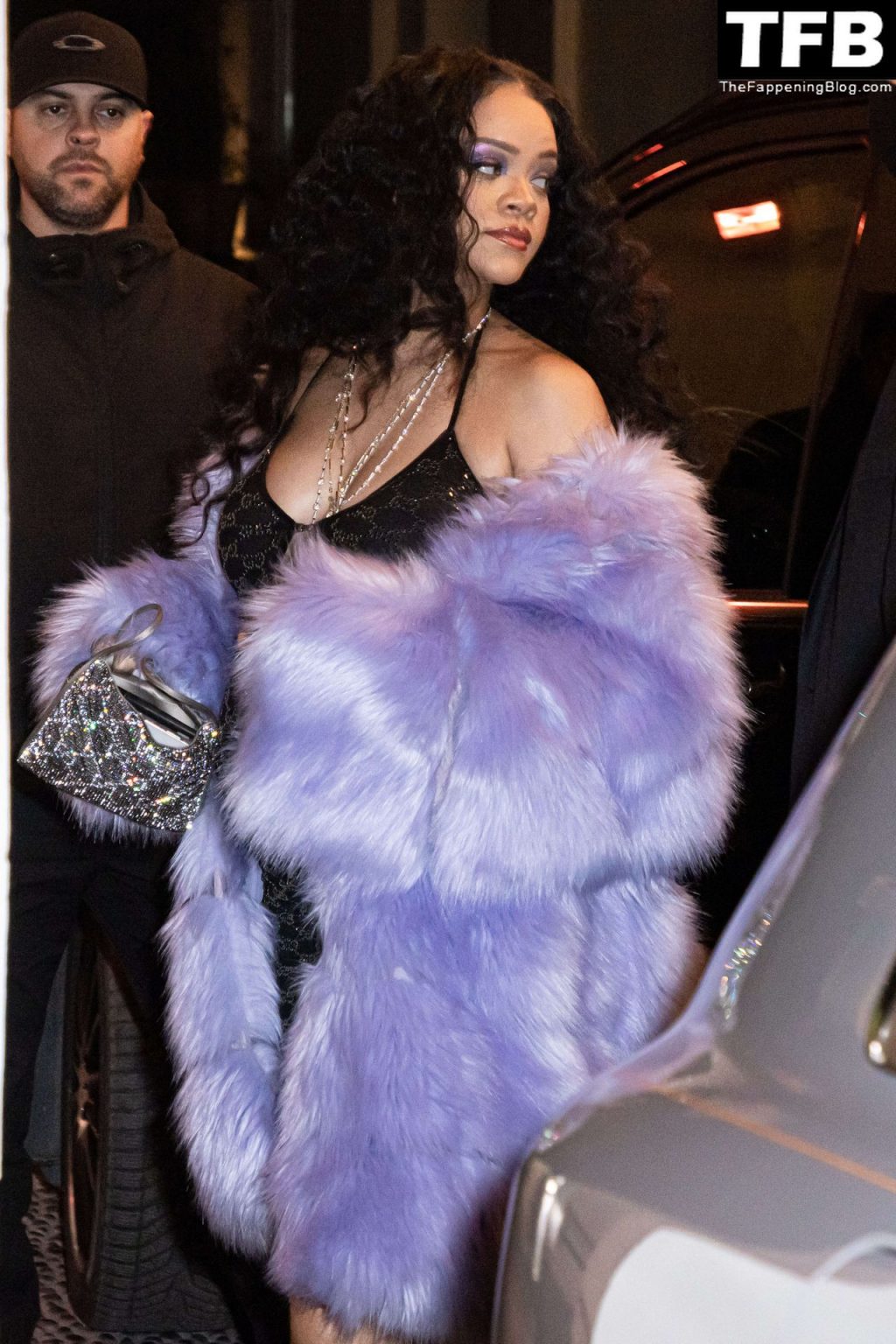Rihanna incinta e il rapper A$AP Rocky lasciano il loro hotel e partecipano al Gucci Fashion Show After Party a Milano, 25/02/2022.