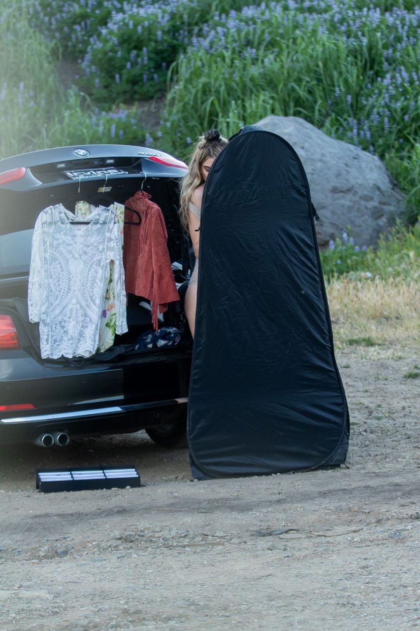 Rachel McCord è stata vista in un servizio fotografico per Voir Eyewear a Malibu, 09/04/2019. Si copriva il corpo nudo mentre cambiava i vestiti…