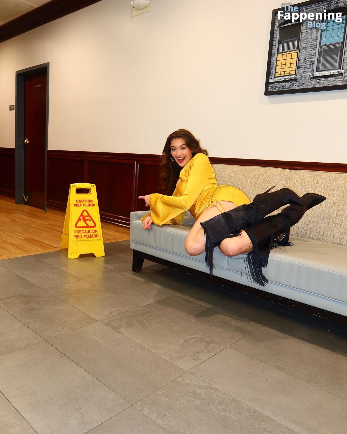 Dannazione, hai visto Rachel Pizzolato in quel vestito giallo abbinato agli stivali neri? È un vero e proprio spettacolo visivo a cui non puoi resistere! Questa bellezza ha un carisma sensuale serio e una figura mozzafiato evidenziata dal suo seno e dalle gambe. Preparati a rimanere senza fiato!
