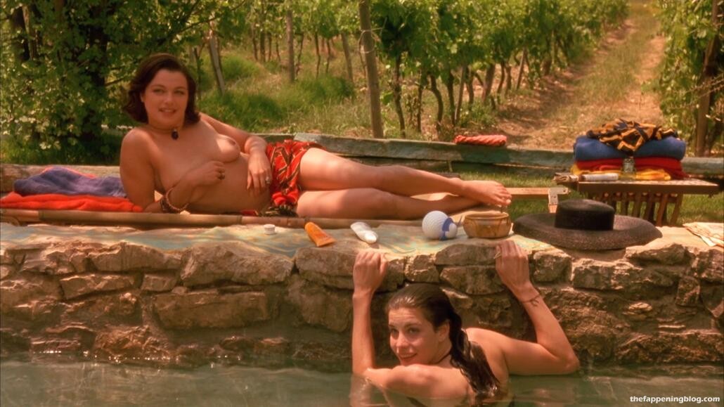 Rachel Weisz is sunbathing topless beside a swimming pool as Liv Tyler steps into the pool in a swimsuit and begins to swim past Rachel before talking to her. Rachel also shows a bit of her bush as she leis on her side with a dress partially draped over her hip. After Rachel and Liv talk for a while, a guy shows up and Rachel sits up before eventually covering up.