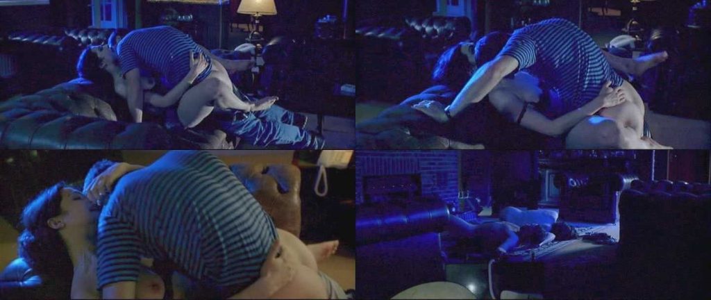 Rachel Weisz is unbuttoning her dress and then pulling down her panties to go bottomless. She then starts backing away, her bush and bra in view. We then see her against a wall as a guy has sex with her and grabs her neck.
