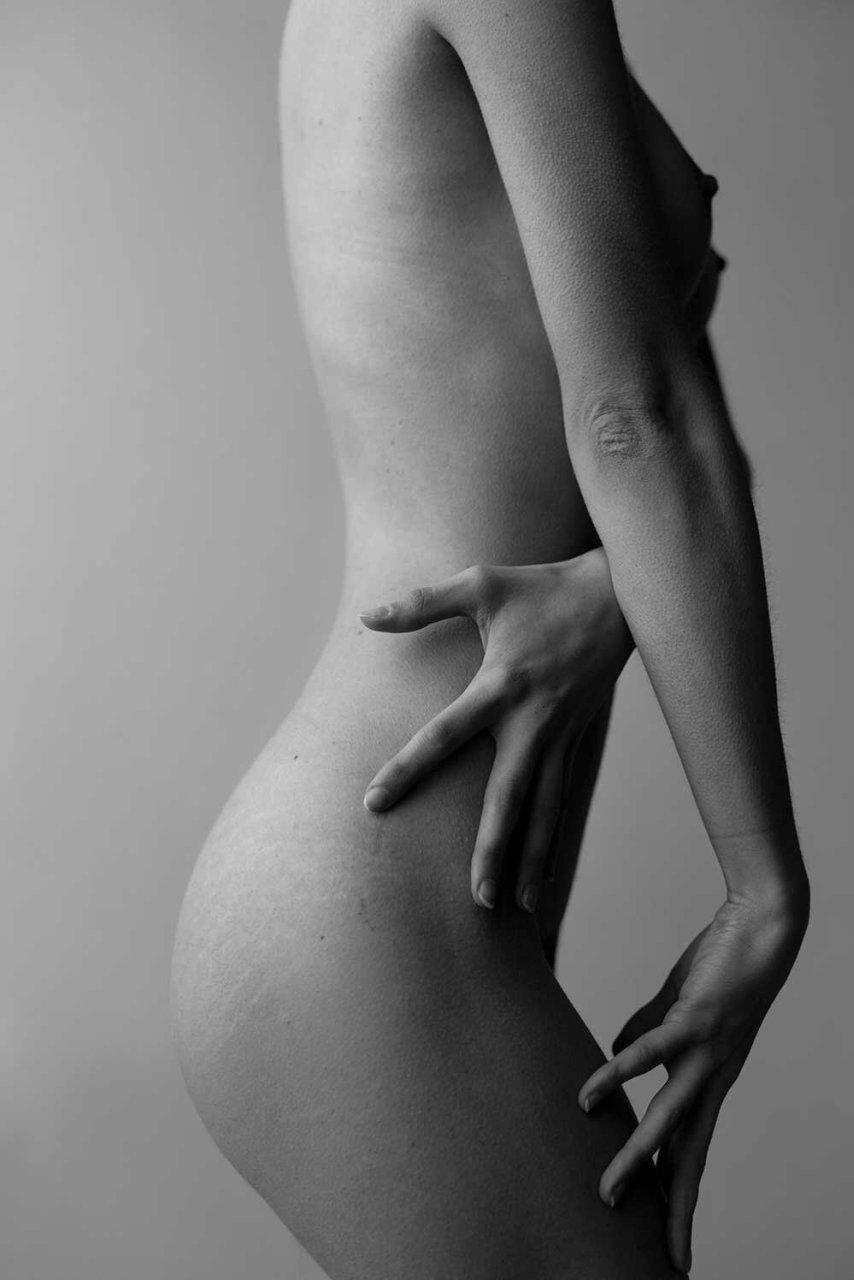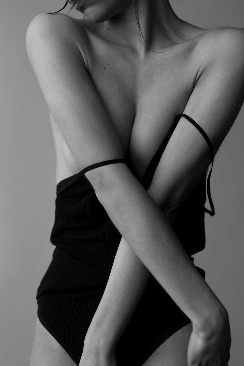 Bella modella Rebecca Bagnol è stata fotografata da Marion Colombani (2019). Ha tolto la biancheria intima e ha mostrato un corpo completamente nudo con una vagina pelosa.
