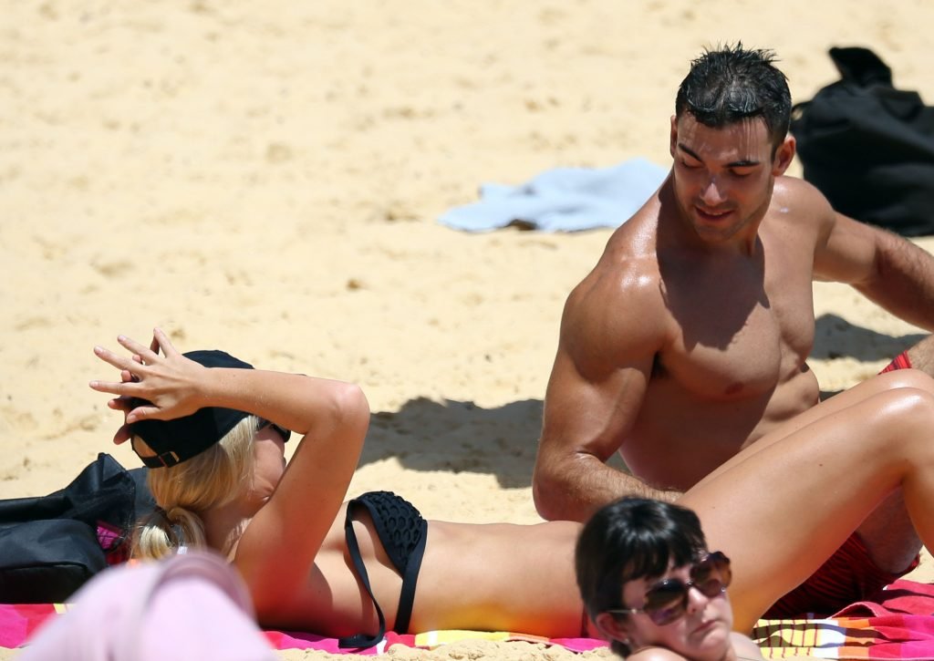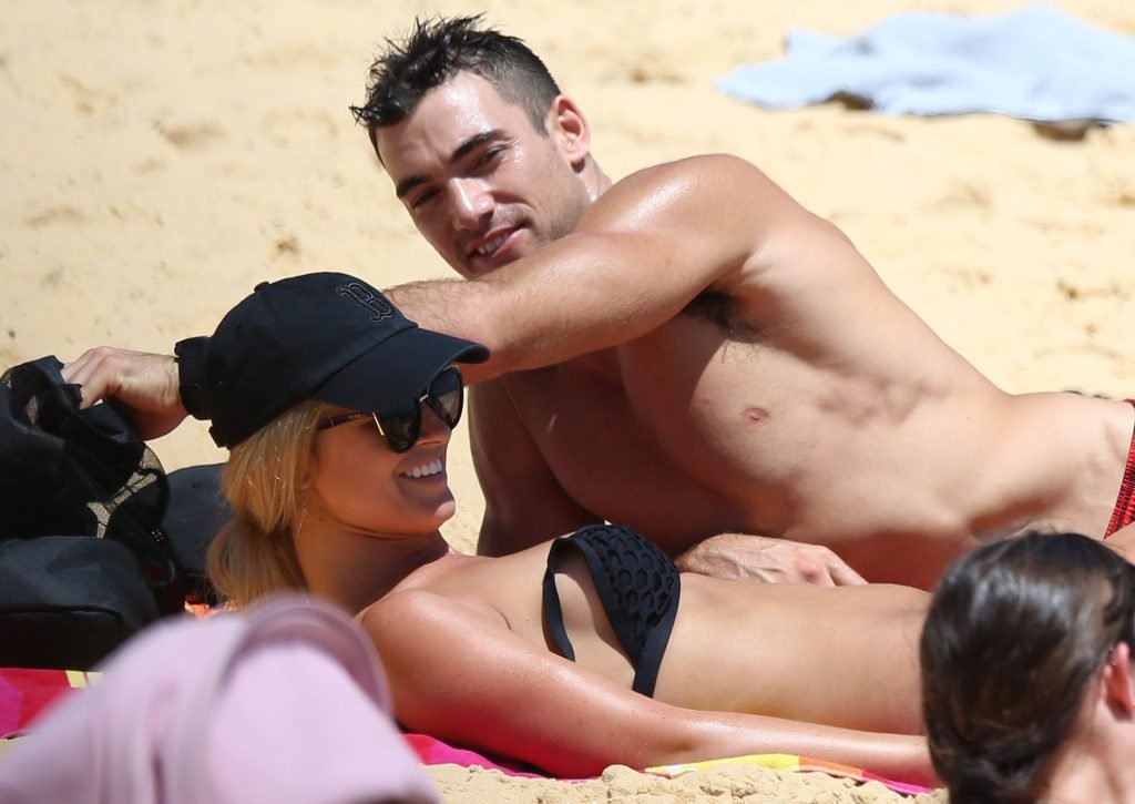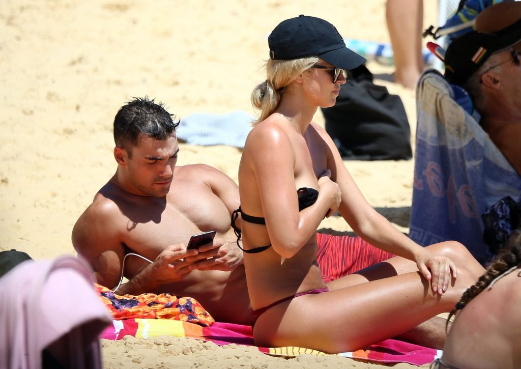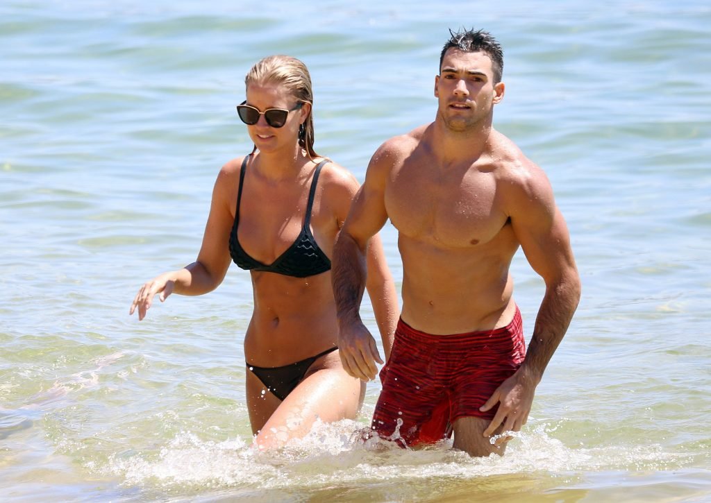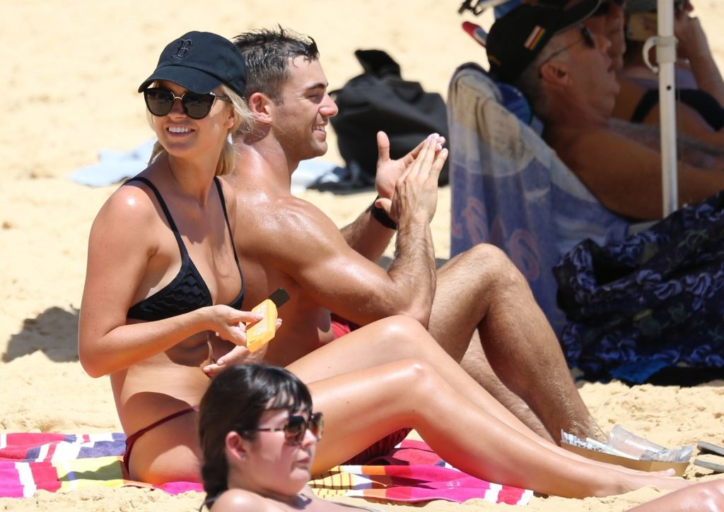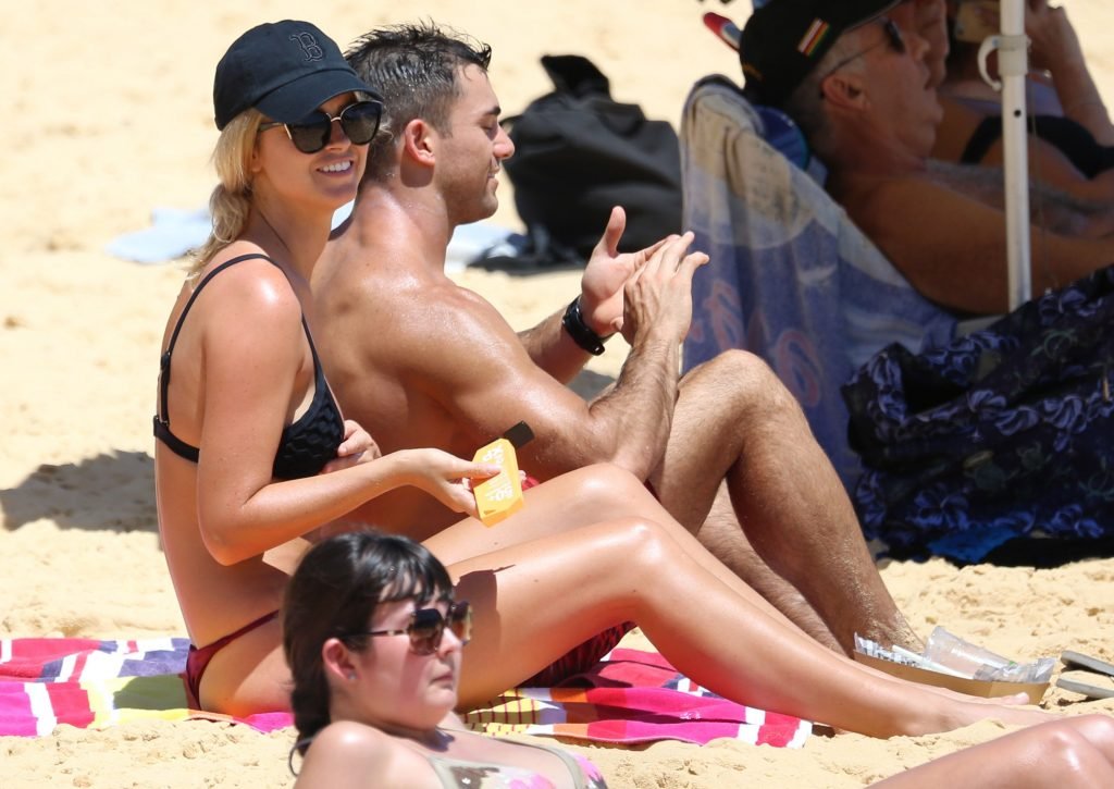 2012 Miss Australia Renae Ayris, 27 anni, mostra il corpo in bikini durante una giornata in spiaggia con il suo attuale fidanzato, il personal trainer Andrew Papadopoulos, a Bondi Beach a Sydney, 02/10/2018.