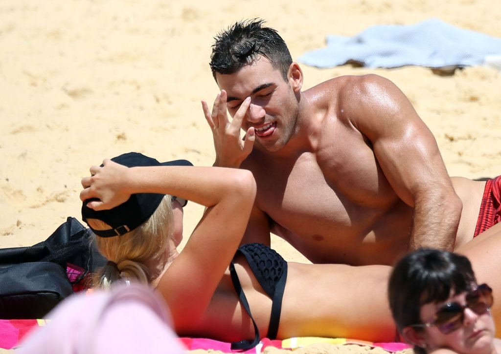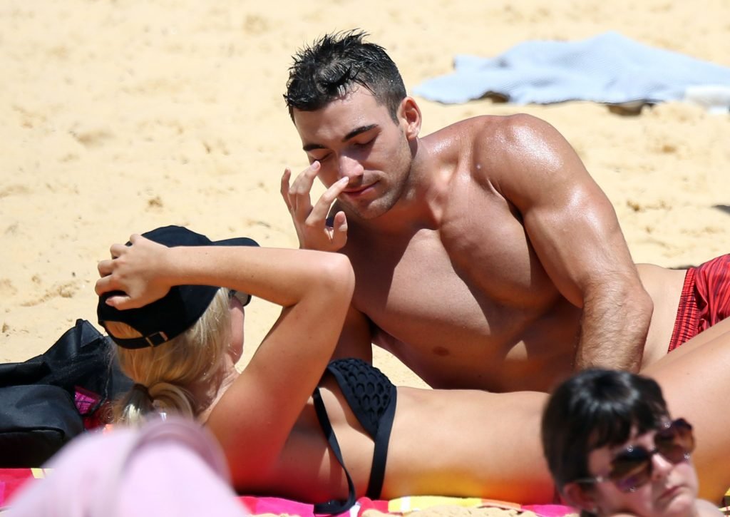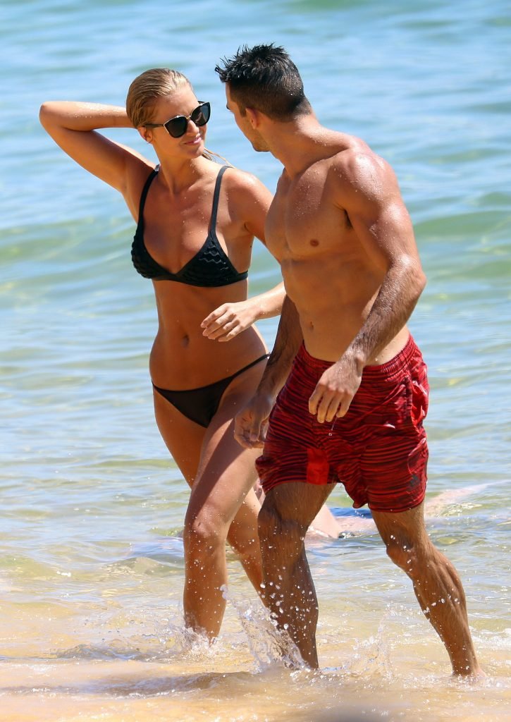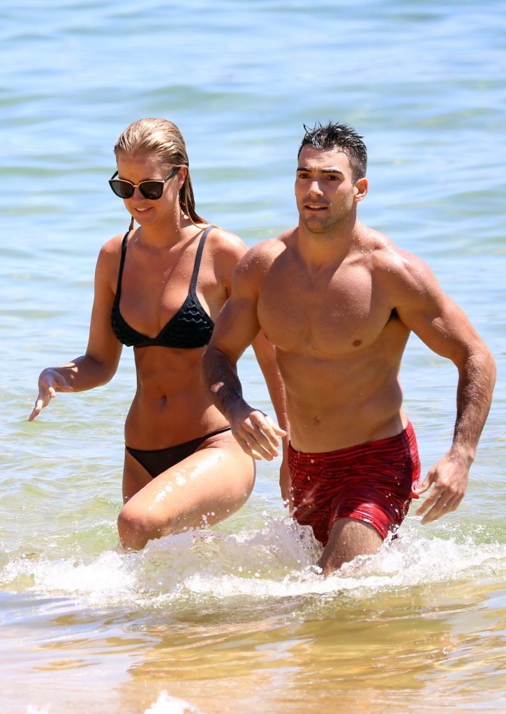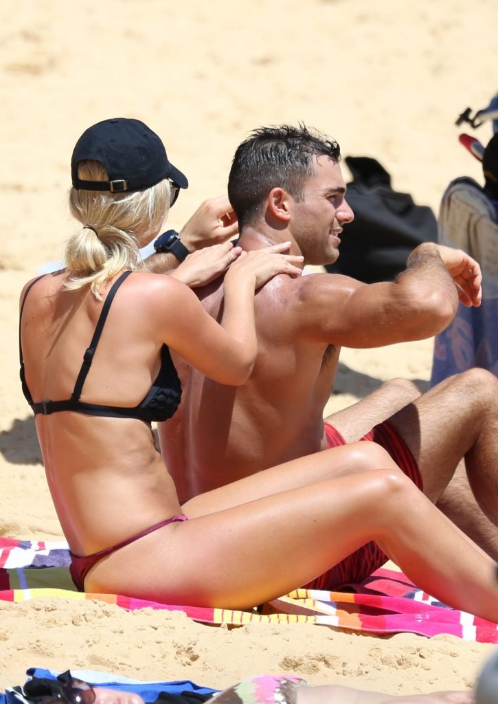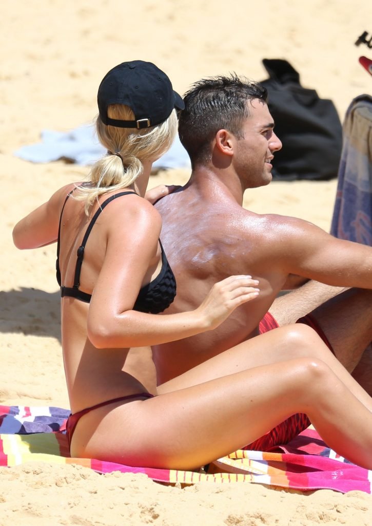 2012 Miss Australia Renae Ayris, 27 anni, mostra il corpo in bikini durante una giornata in spiaggia con il suo attuale fidanzato, il personal trainer Andrew Papadopoulos, a Bondi Beach a Sydney, 02/10/2018.