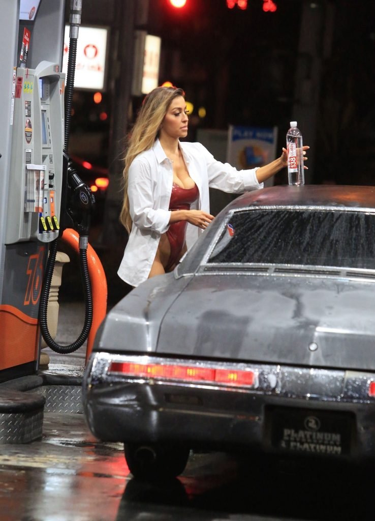 Model Miss Renee Denise fa un servizio fotografico sexy per 138 Water presso una stazione di servizio 76 a Beverly Hills, 28/02/2018.