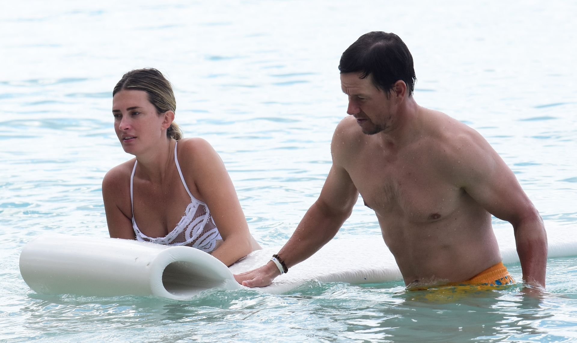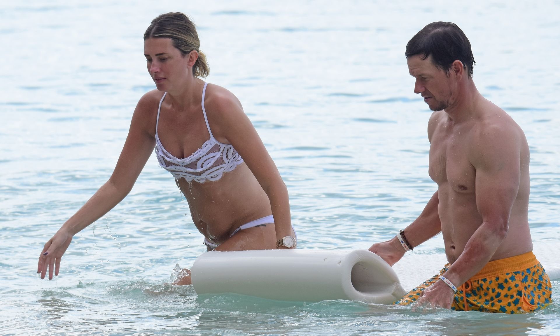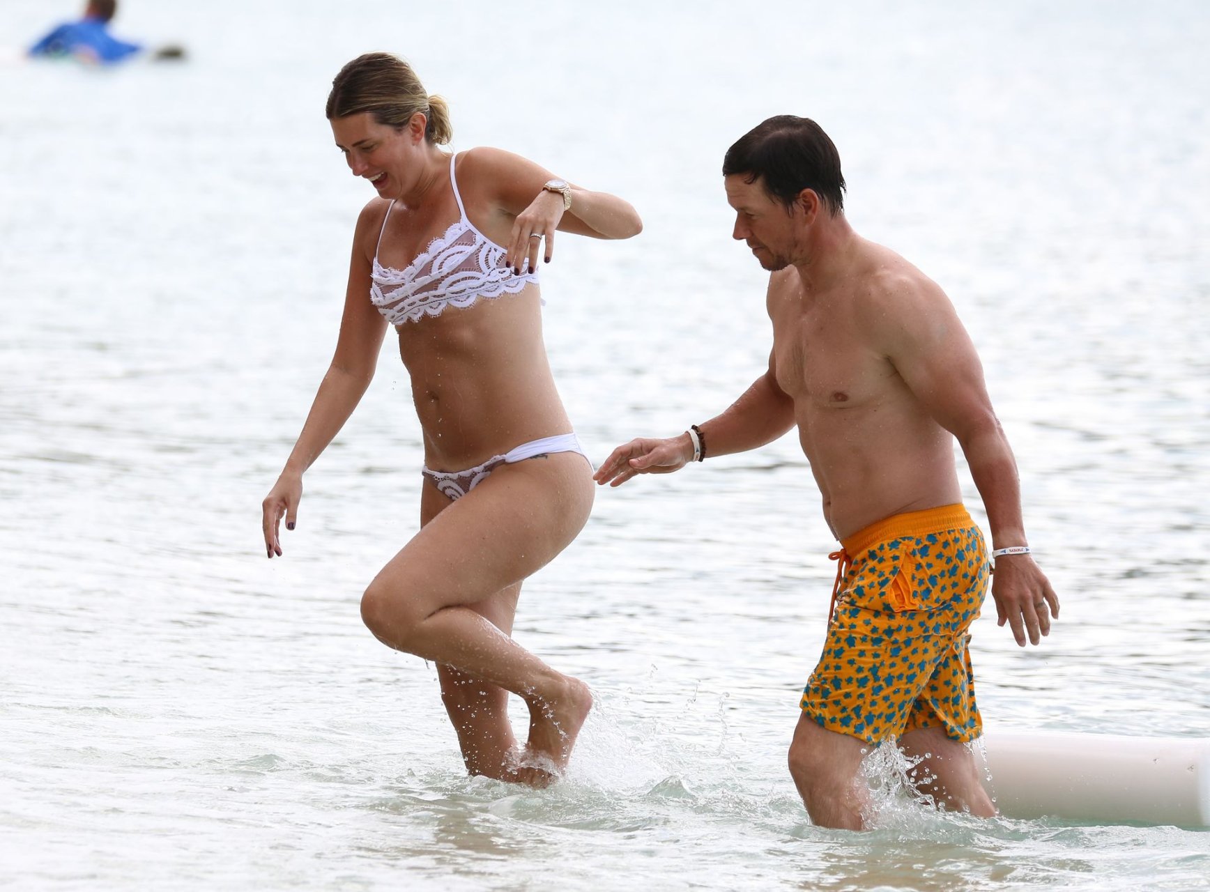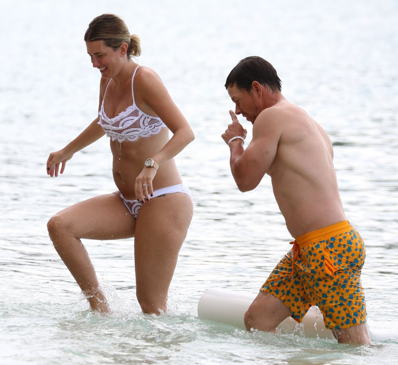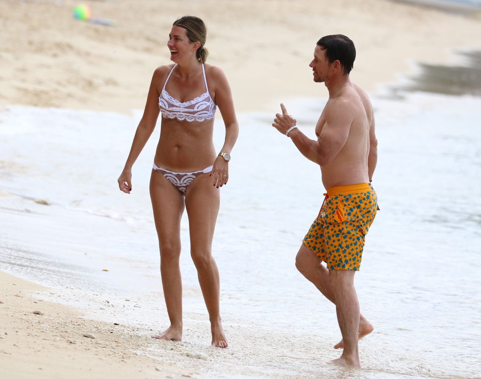 Mark Wahlberg e sua moglie Rhea Durham condividono un momento romantico mentre nuotano durante la loro vacanza a Barbados, 01/03/2019. Rhea è stata vista in bikini bianco sulla spiaggia.