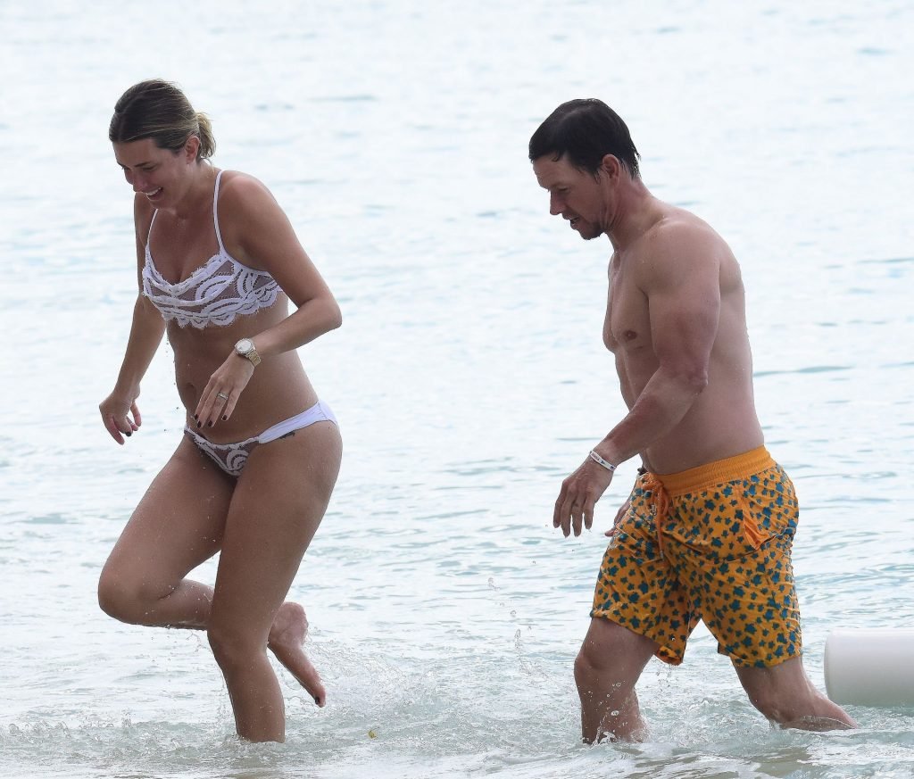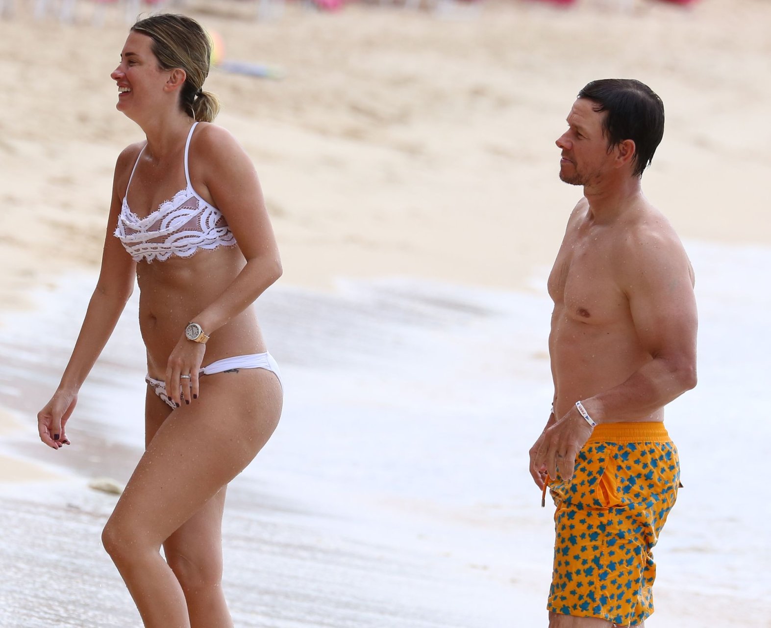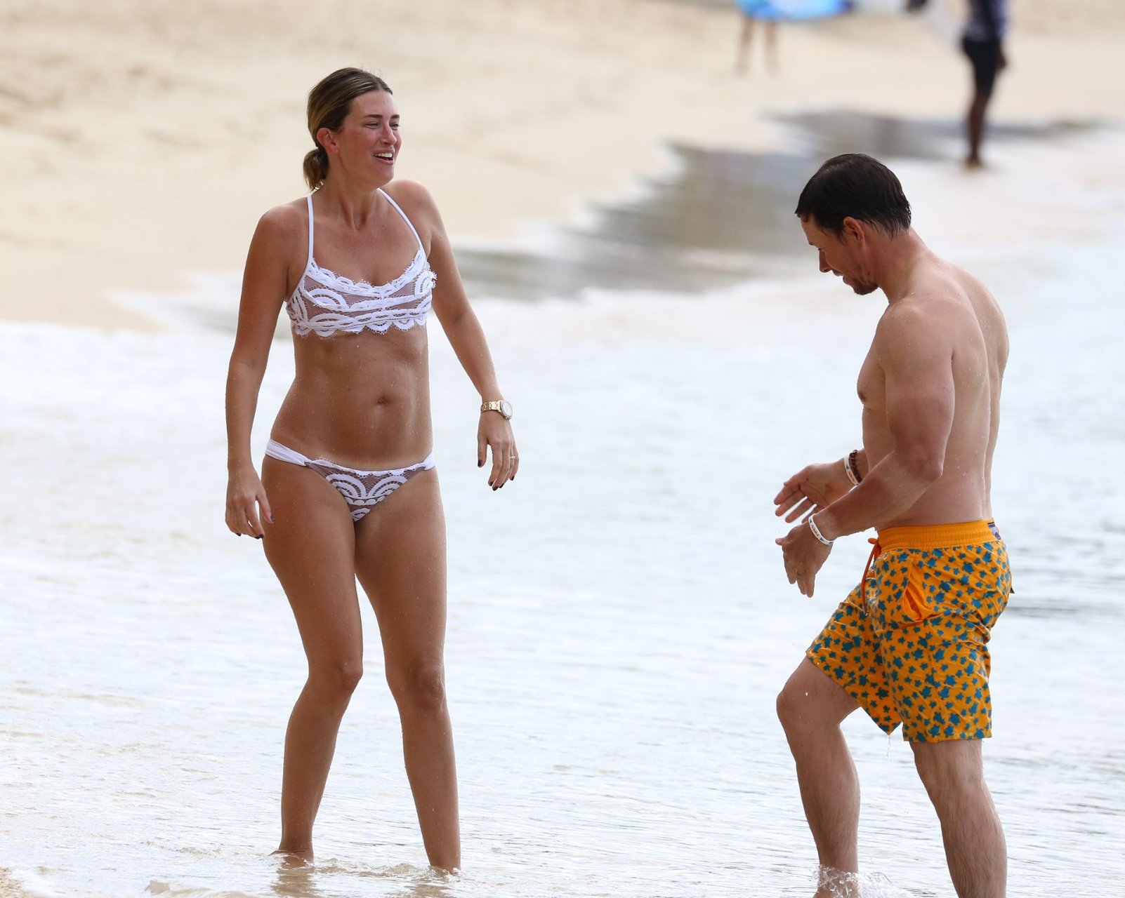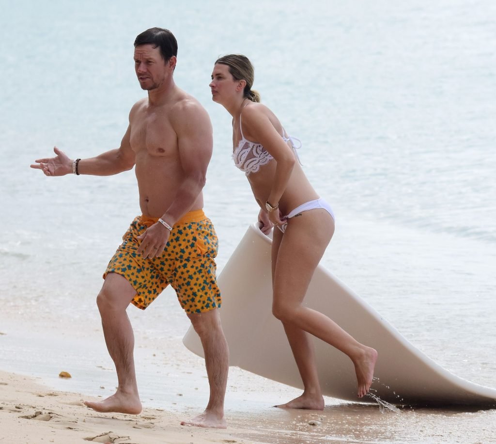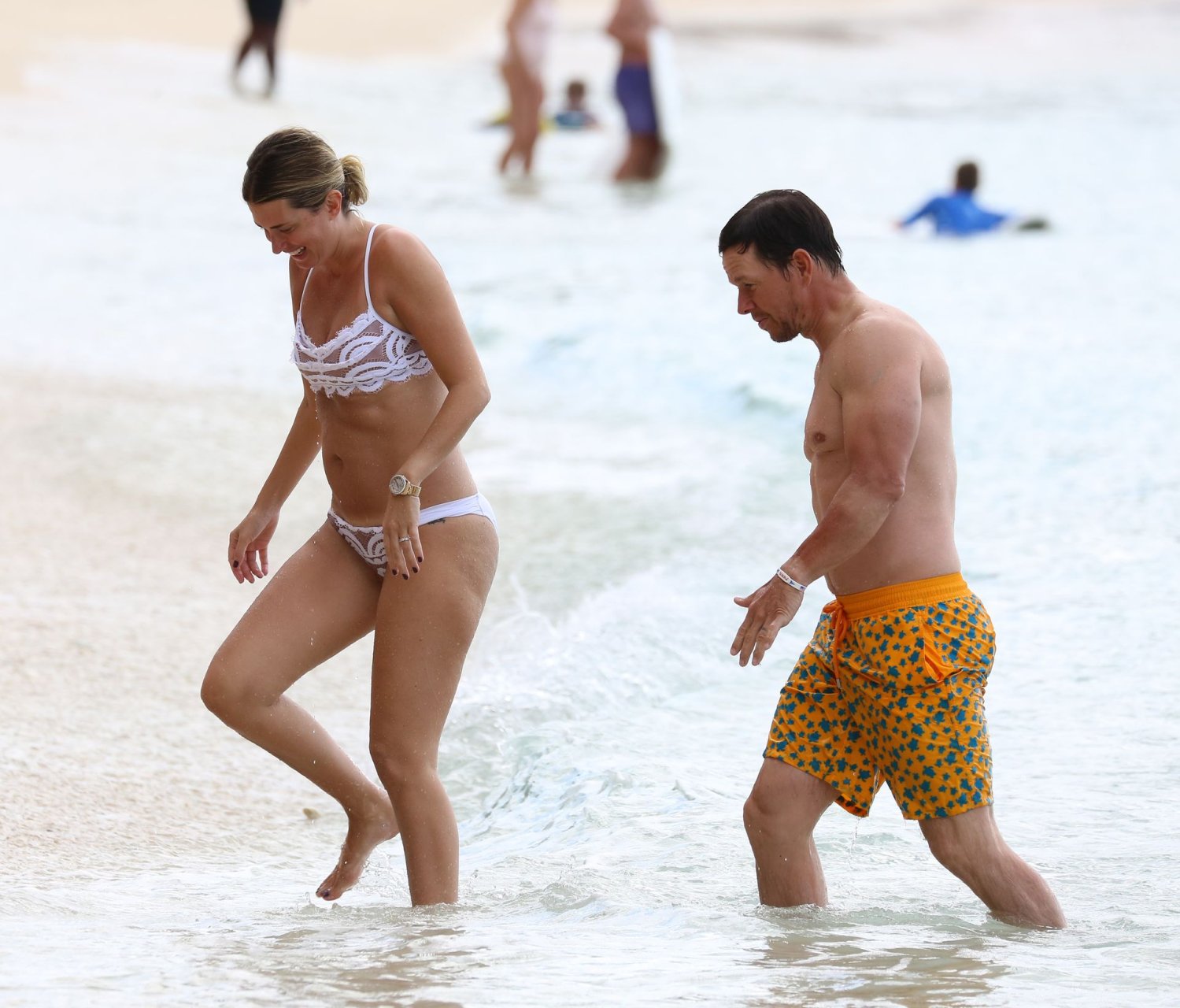 Mark Wahlberg e sua moglie Rhea Durham condividono un momento romantico mentre nuotano durante la loro vacanza a Barbados, 01/03/2019. Rhea è stata vista in bikini bianco sulla spiaggia.