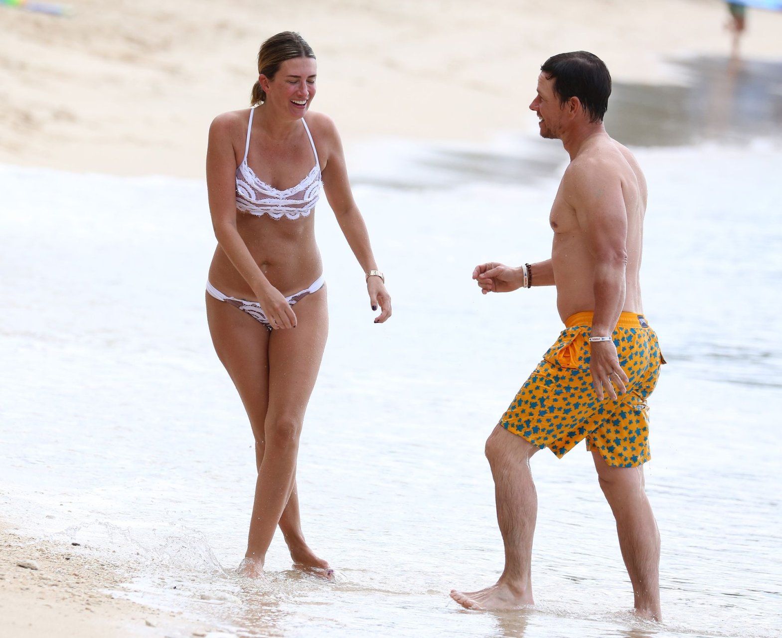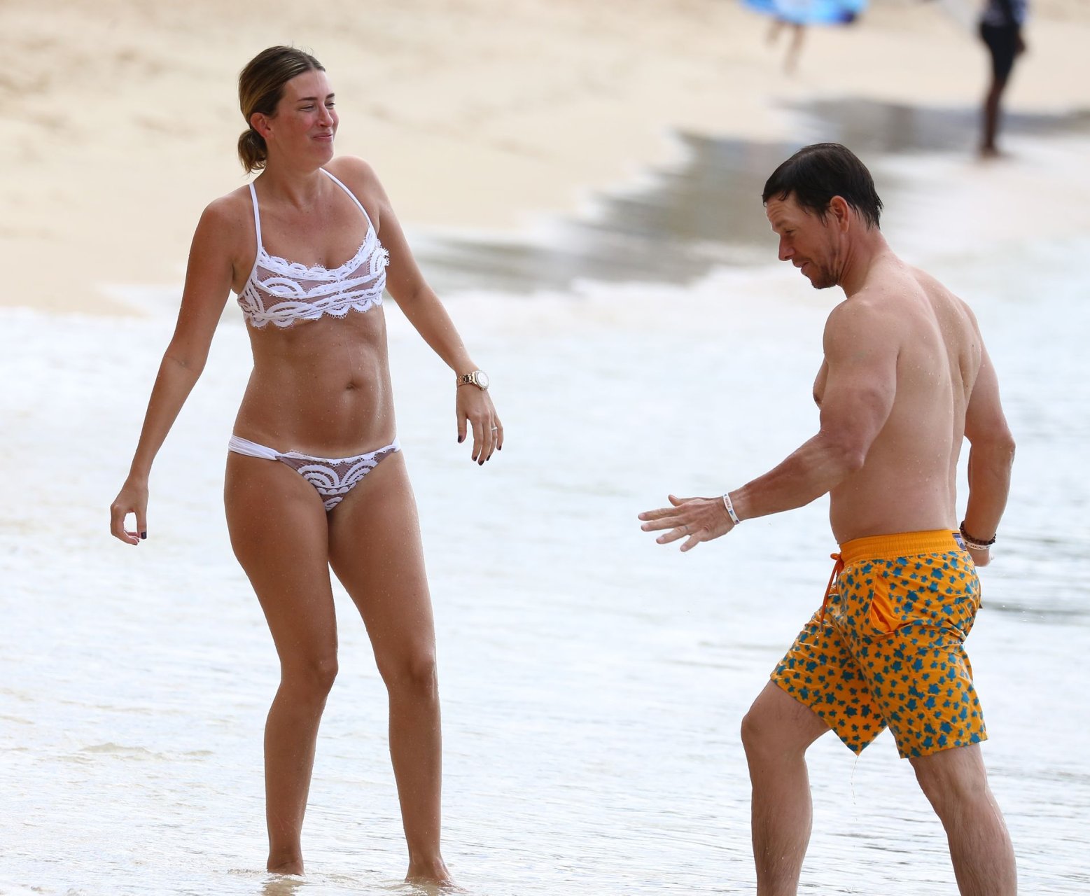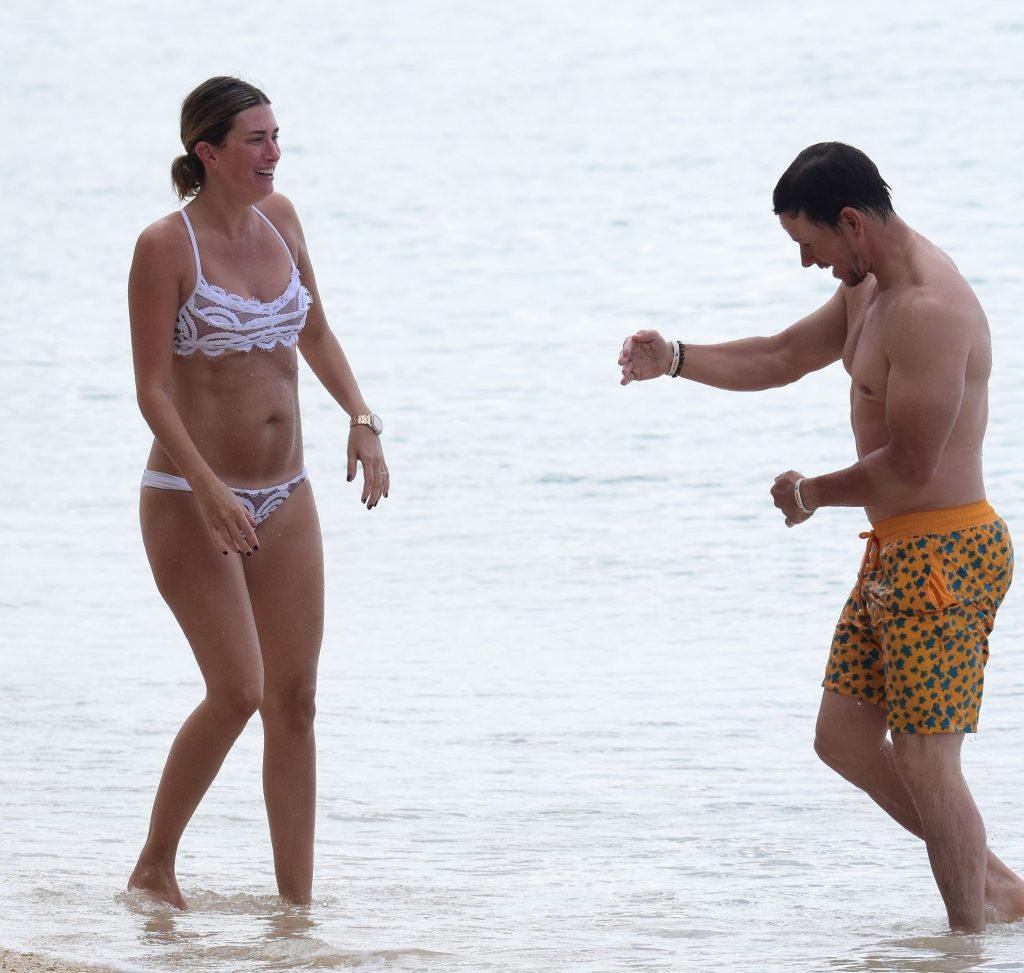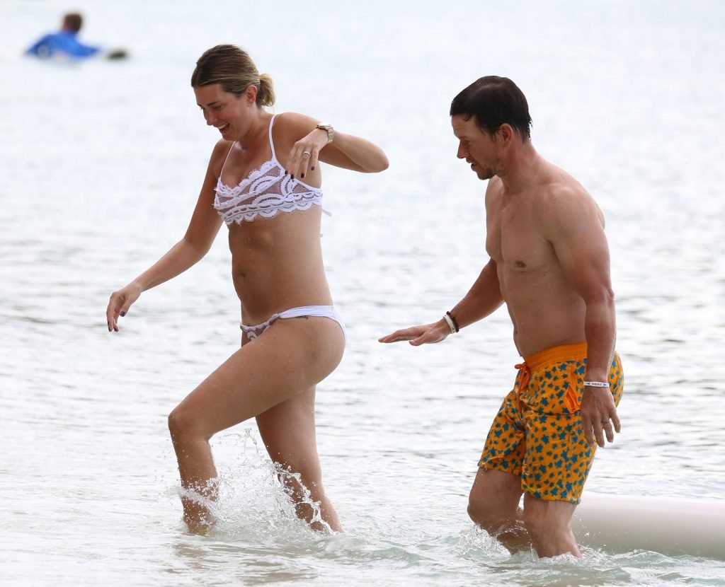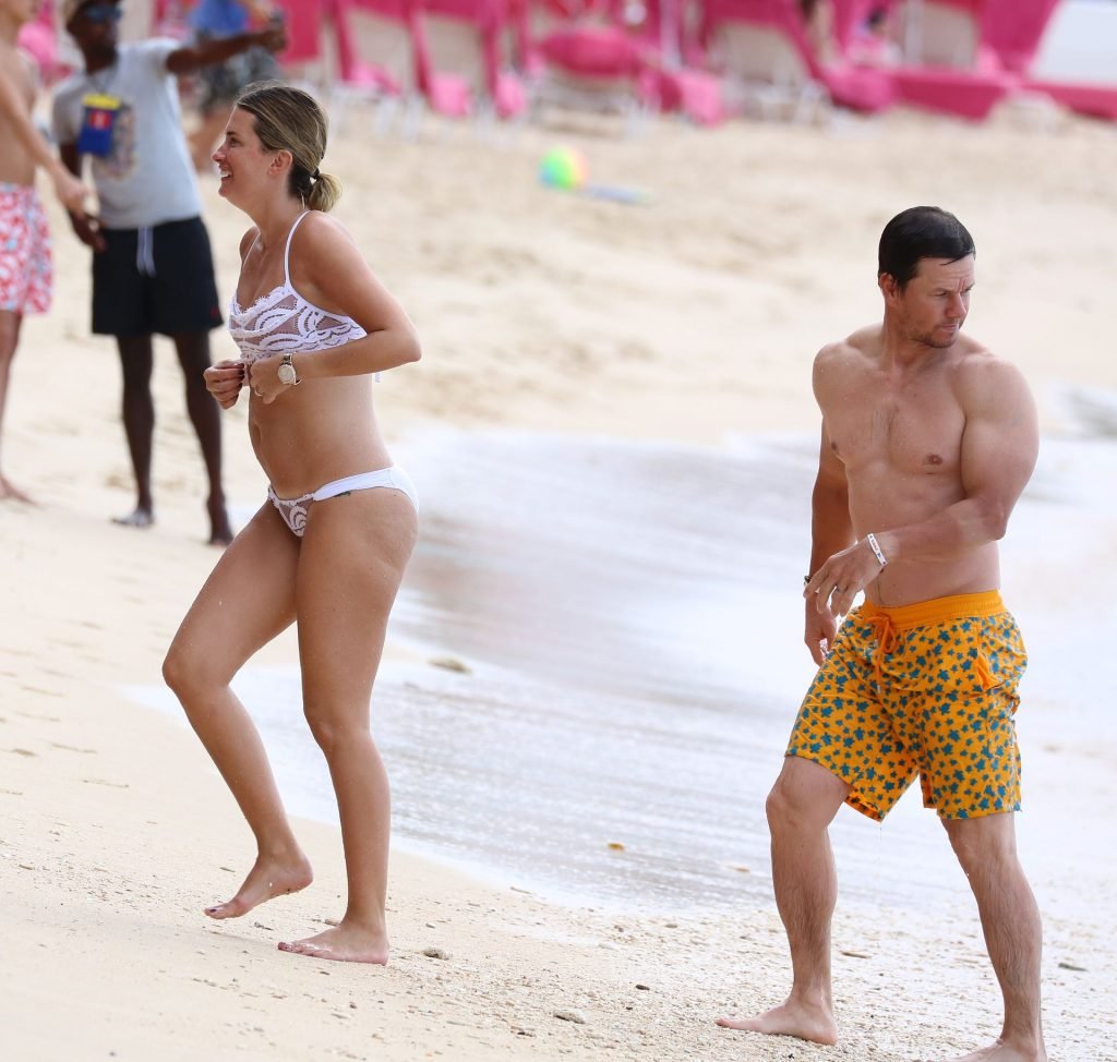 Mark Wahlberg e sua moglie Rhea Durham condividono un momento romantico mentre nuotano durante la loro vacanza a Barbados, 01/03/2019. Rhea è stata vista in bikini bianco sulla spiaggia.