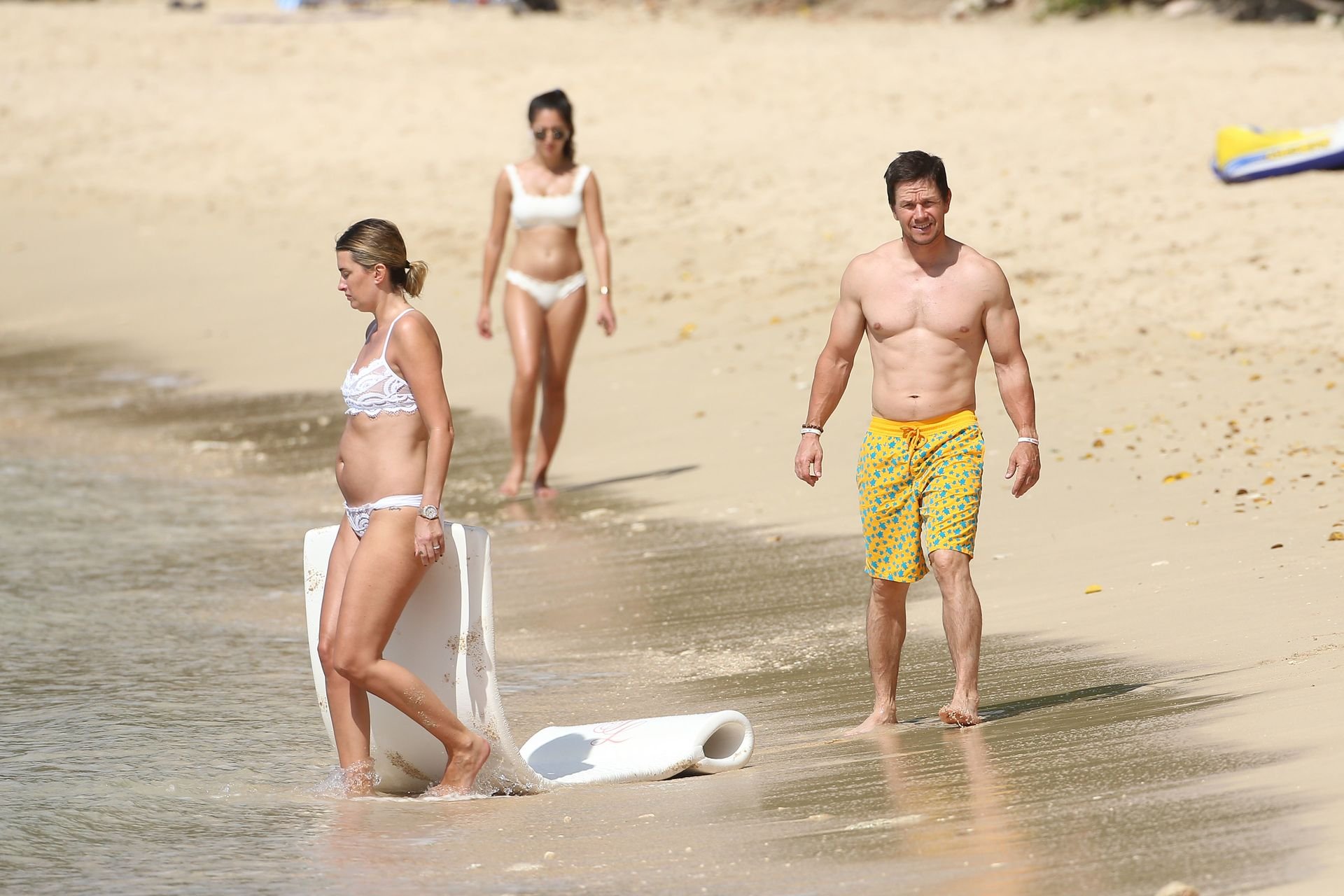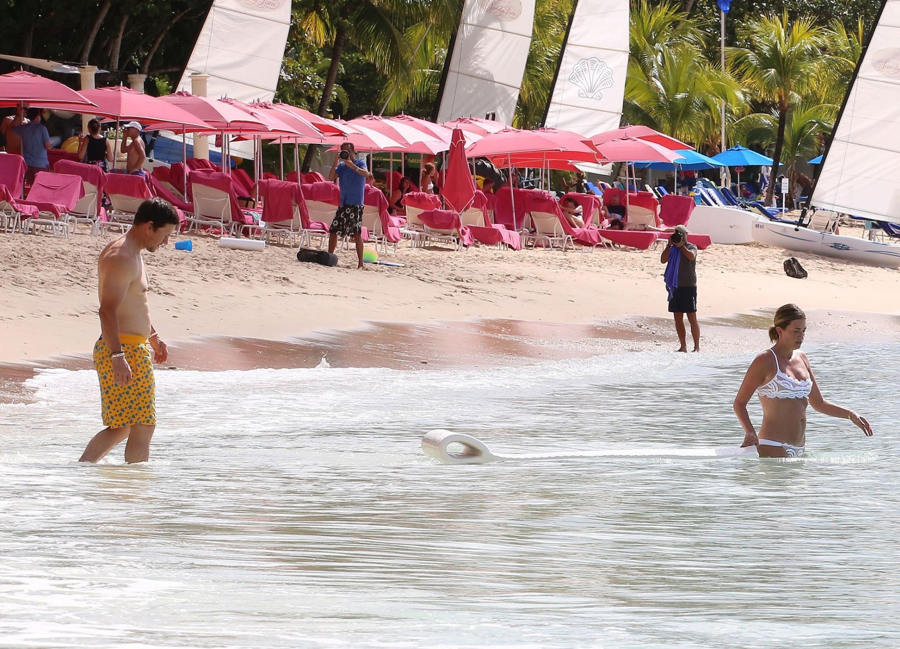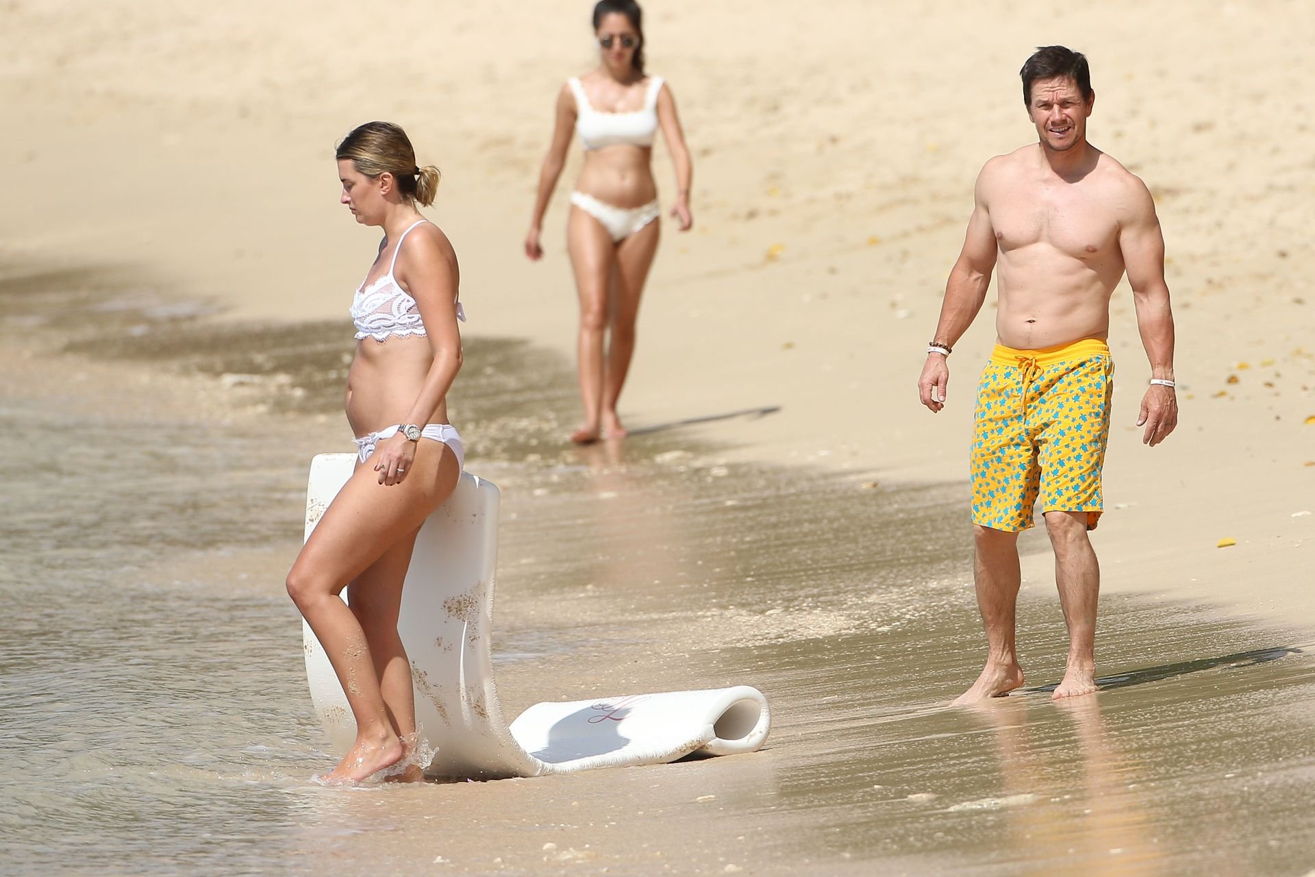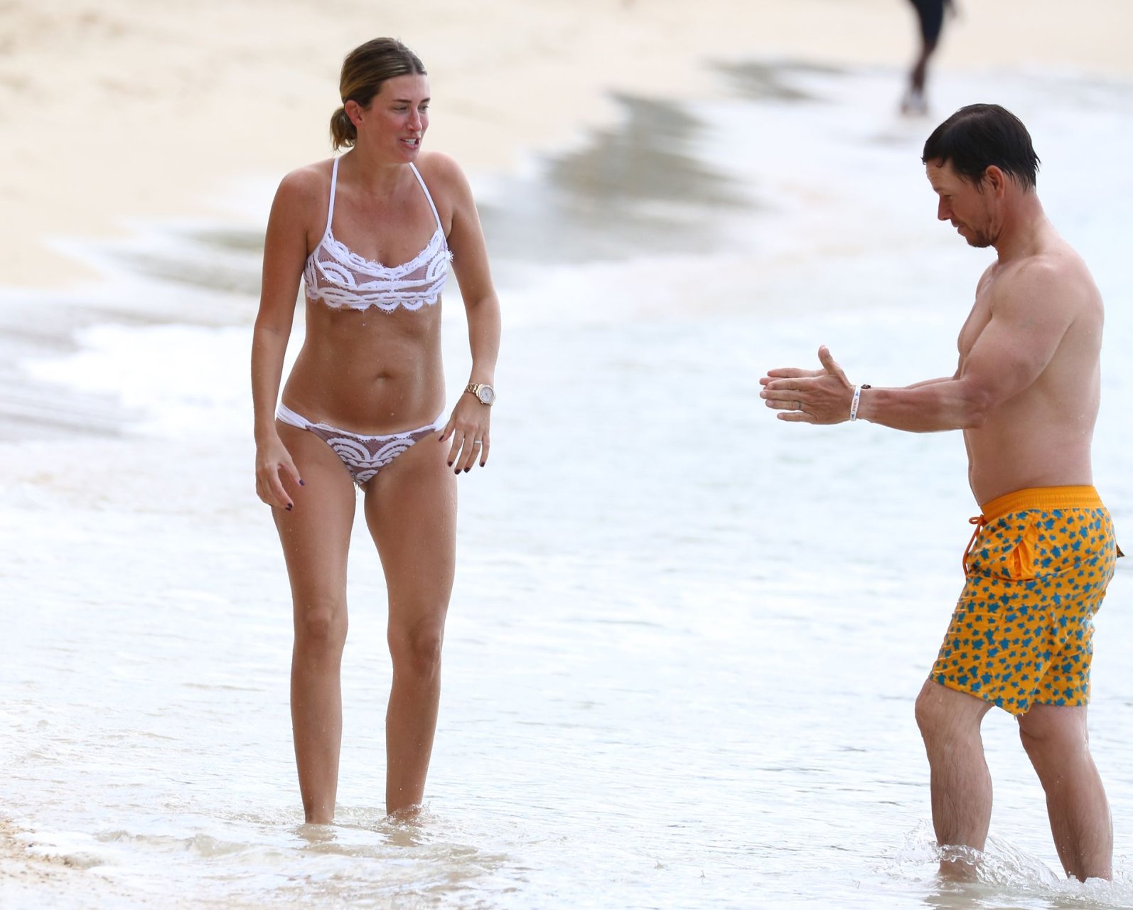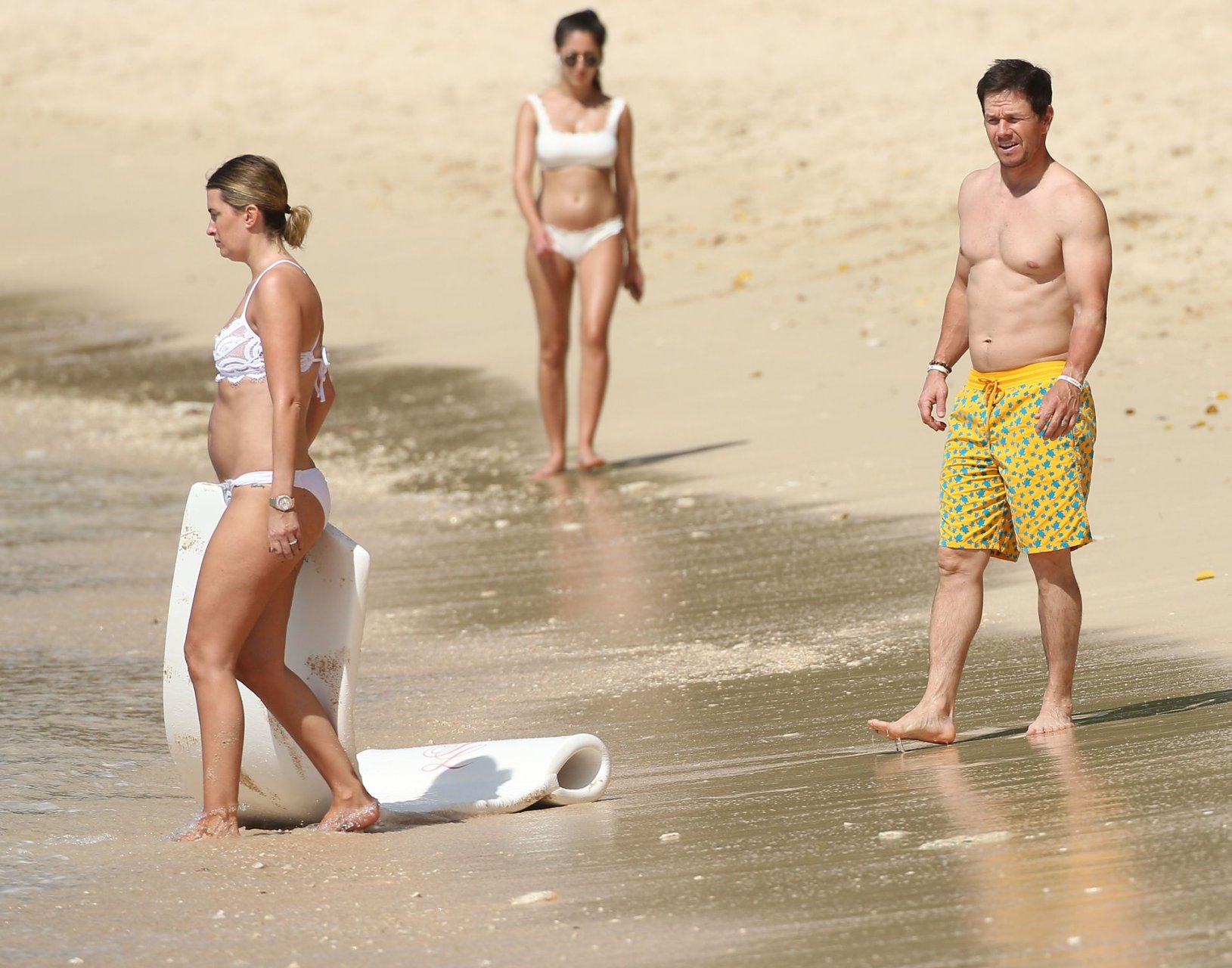 Mark Wahlberg e sua moglie Rhea Durham condividono un momento romantico mentre nuotano durante la loro vacanza a Barbados, 01/03/2019. Rhea è stata vista in bikini bianco sulla spiaggia.