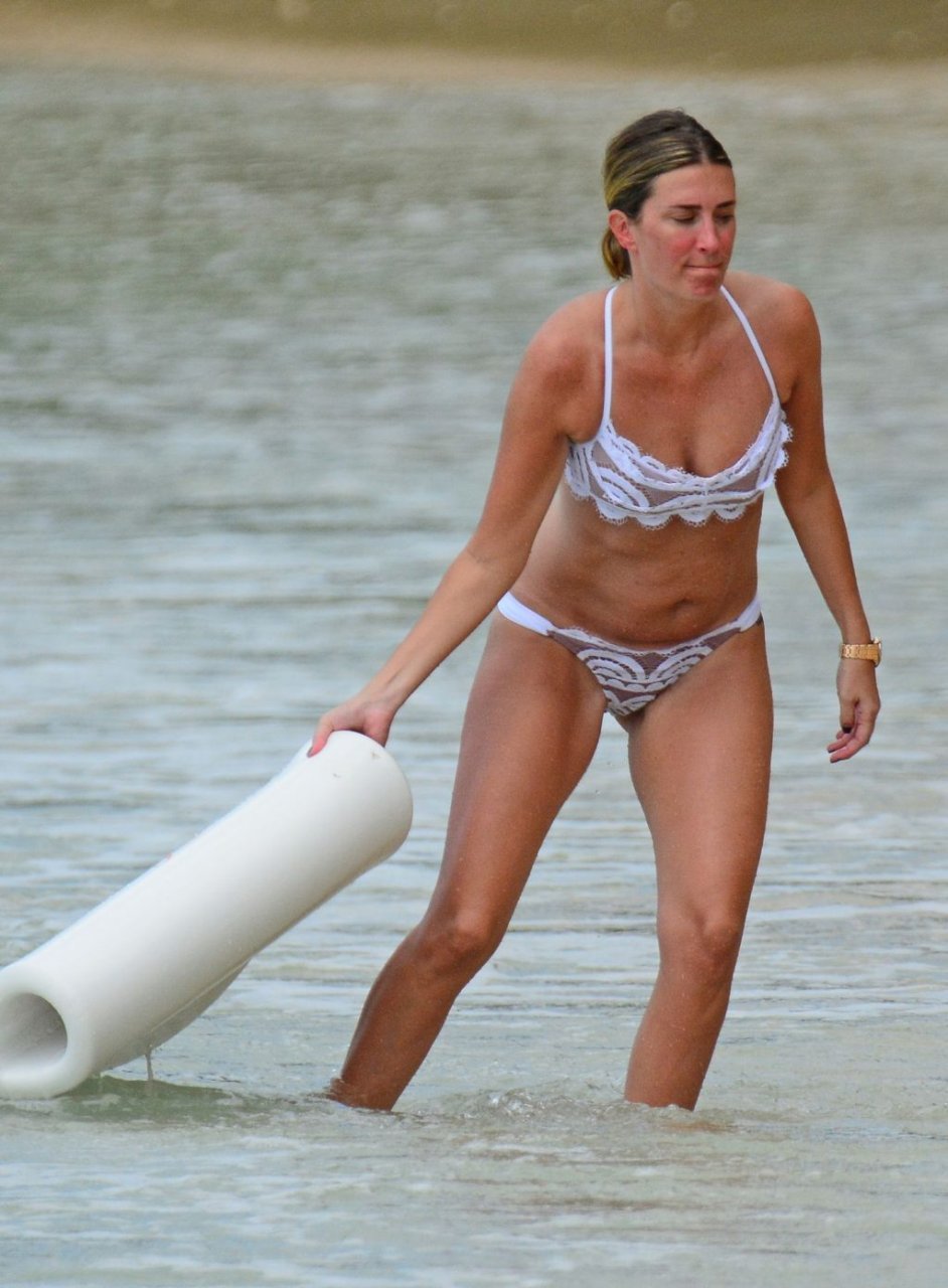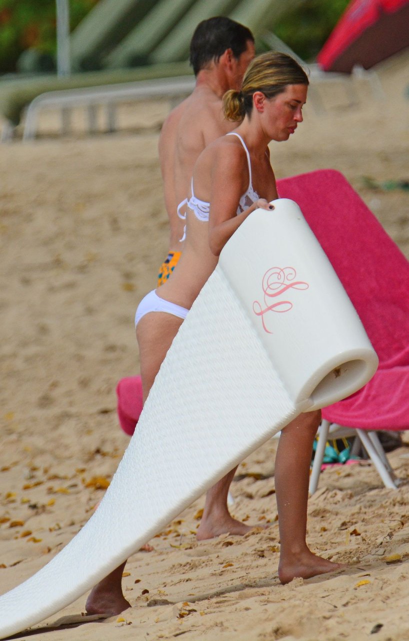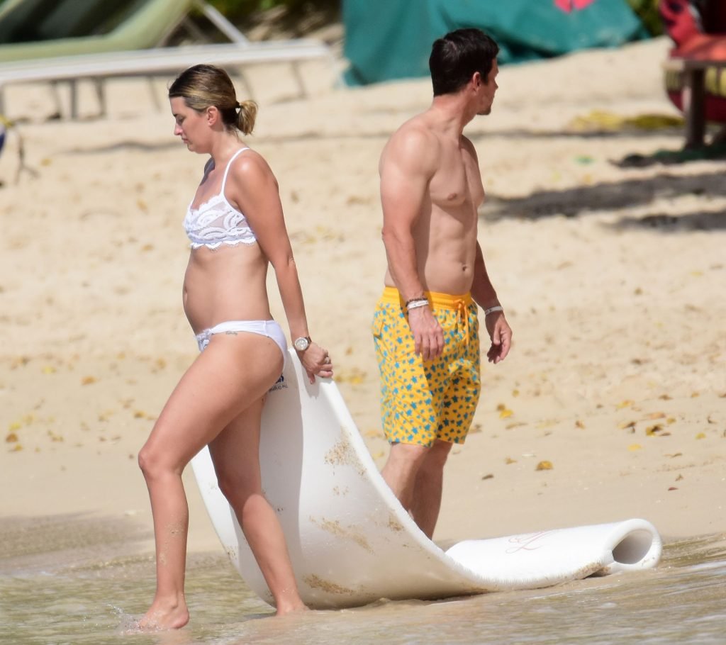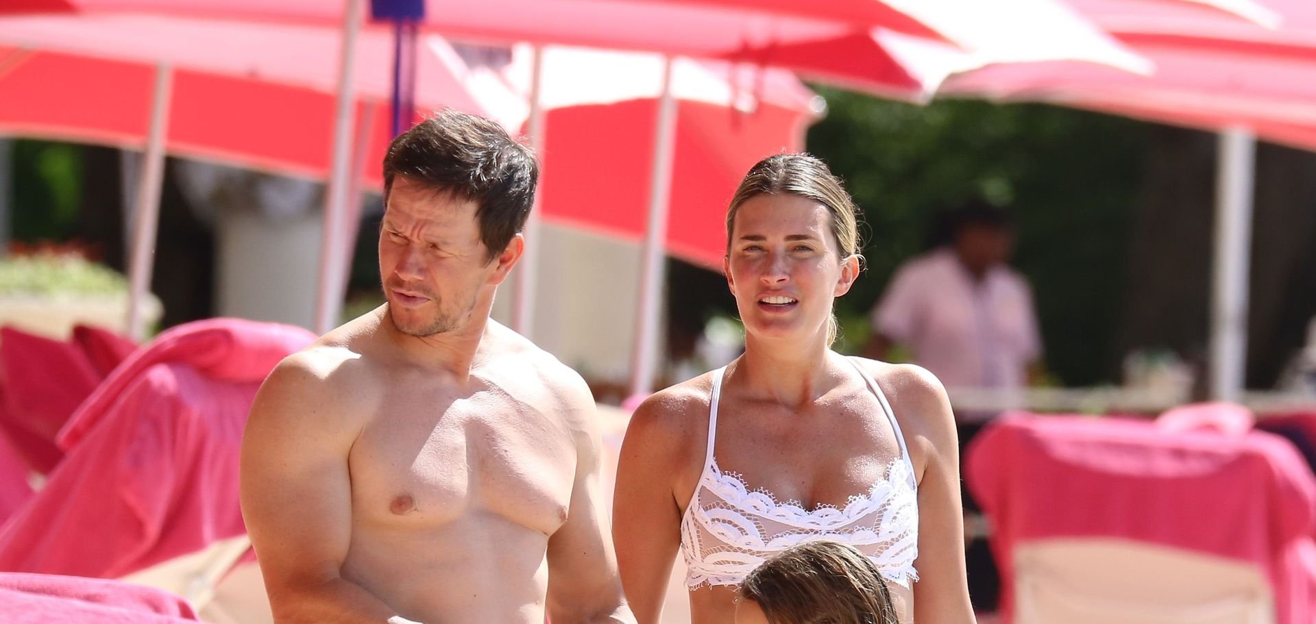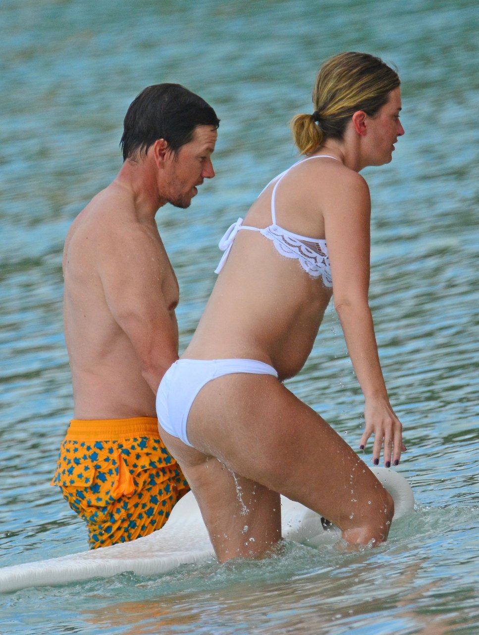 Mark Wahlberg e sua moglie Rhea Durham condividono un momento romantico mentre nuotano durante la loro vacanza a Barbados, 01/03/2019. Rhea è stata vista in bikini bianco sulla spiaggia.