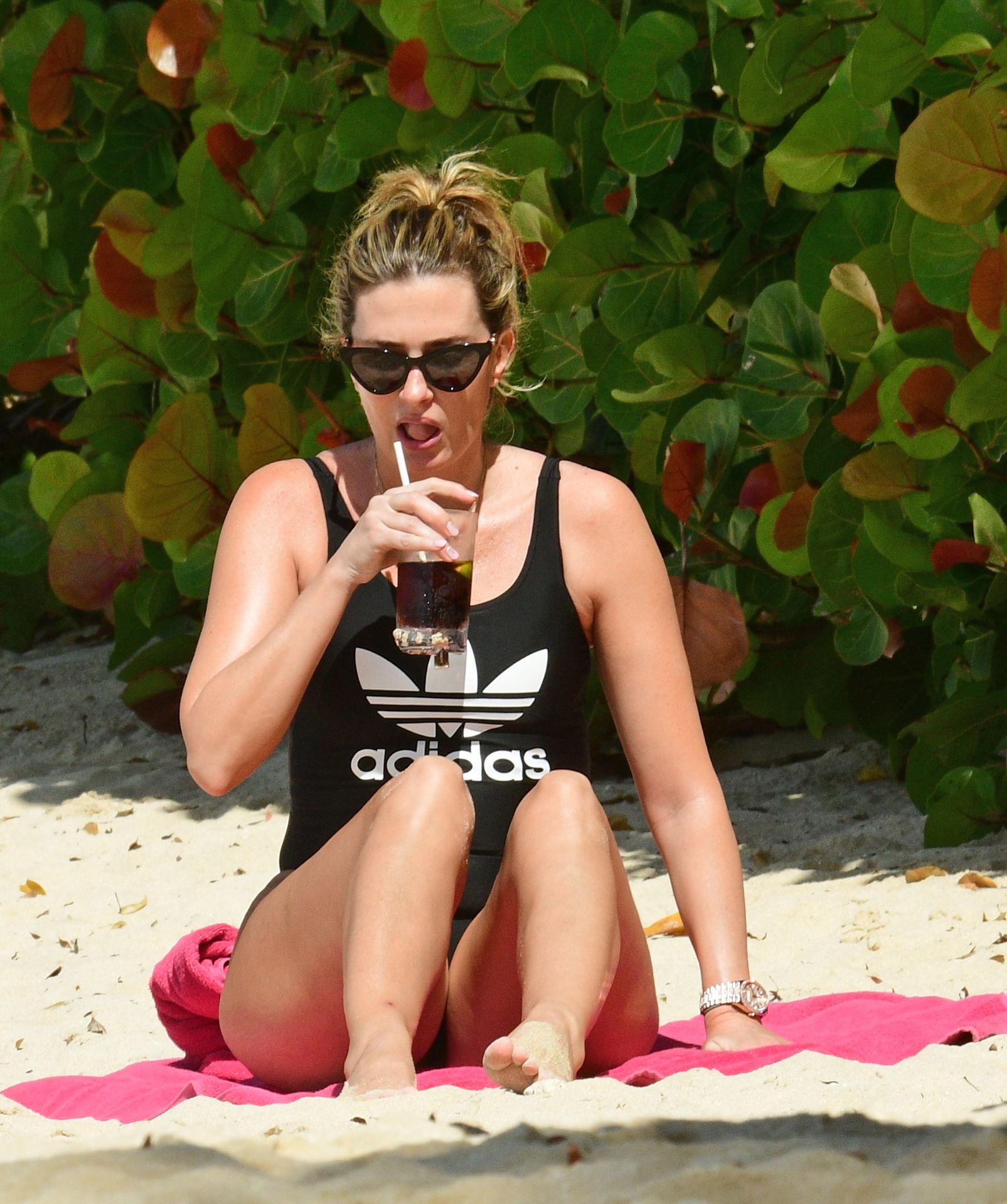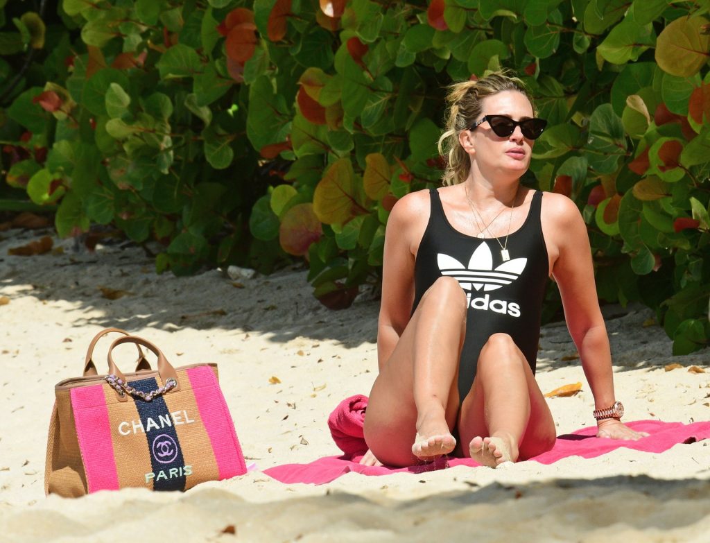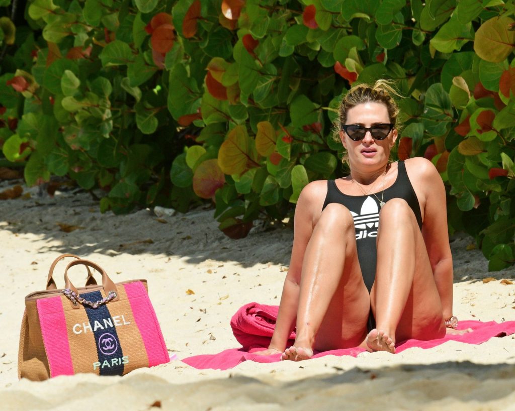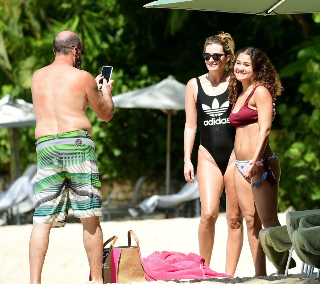 Moglie dell’attore americano Mark Wahlberg, la modella di 41 anni Rhea Durham appare incredibile mostrando le sue curve sensazionali nel suo costume da bagno nero, ritratta mentre si gode le vacanze invernali sulla spiaggia a Barbados, 30/12/2019.